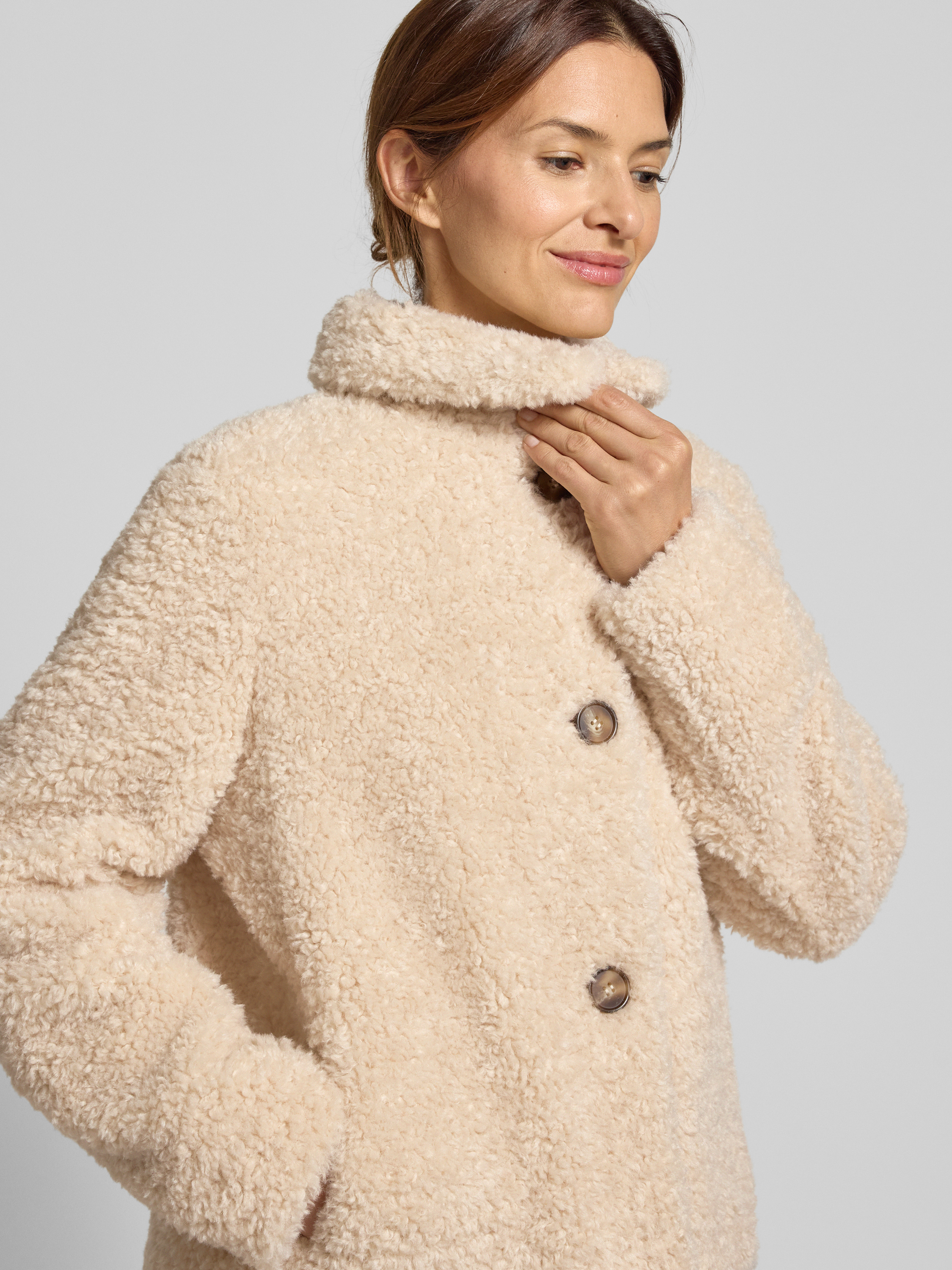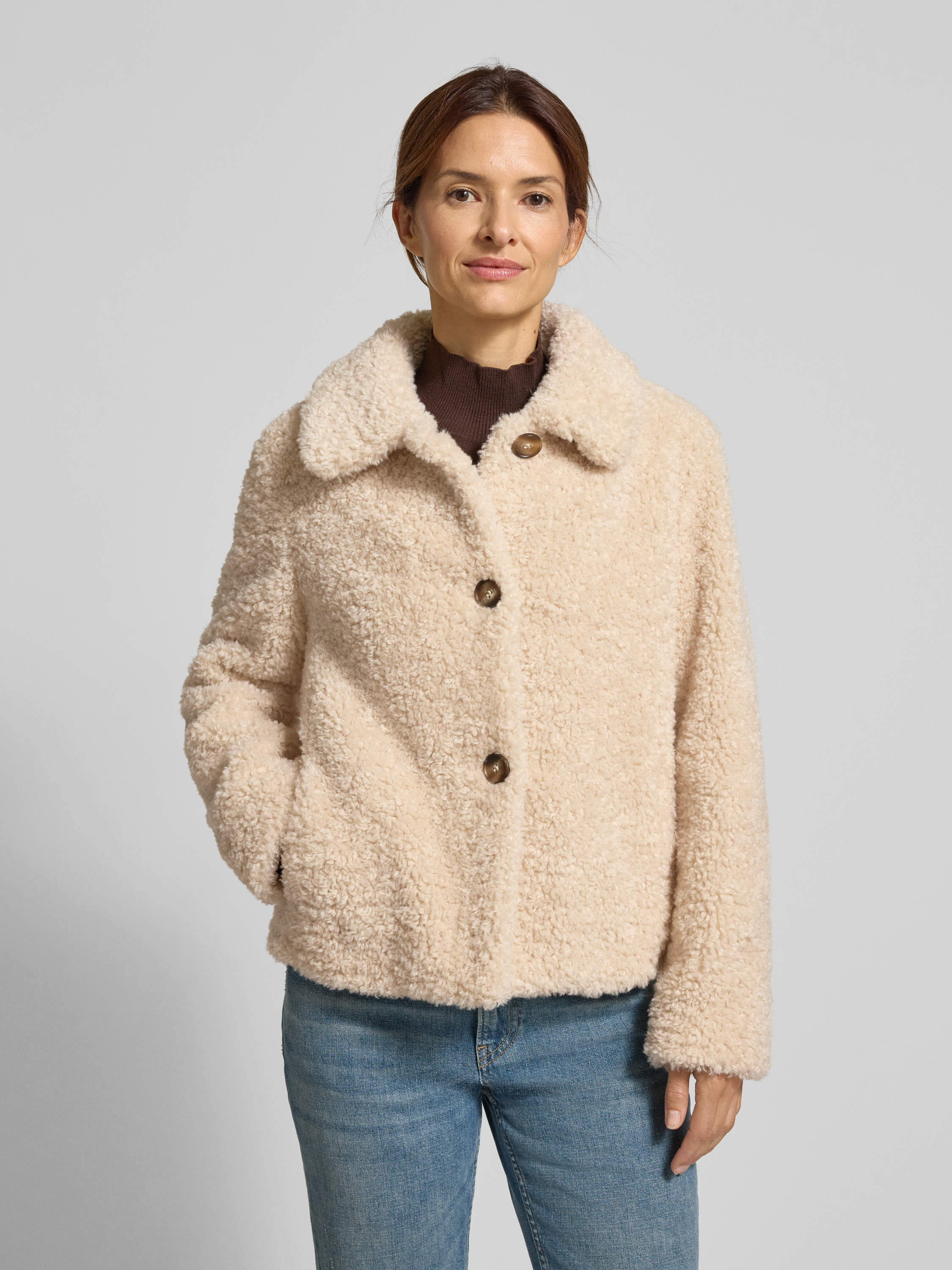 Kurtka o kroju regular fit z futerka z wykładanym kołnierzem - écru