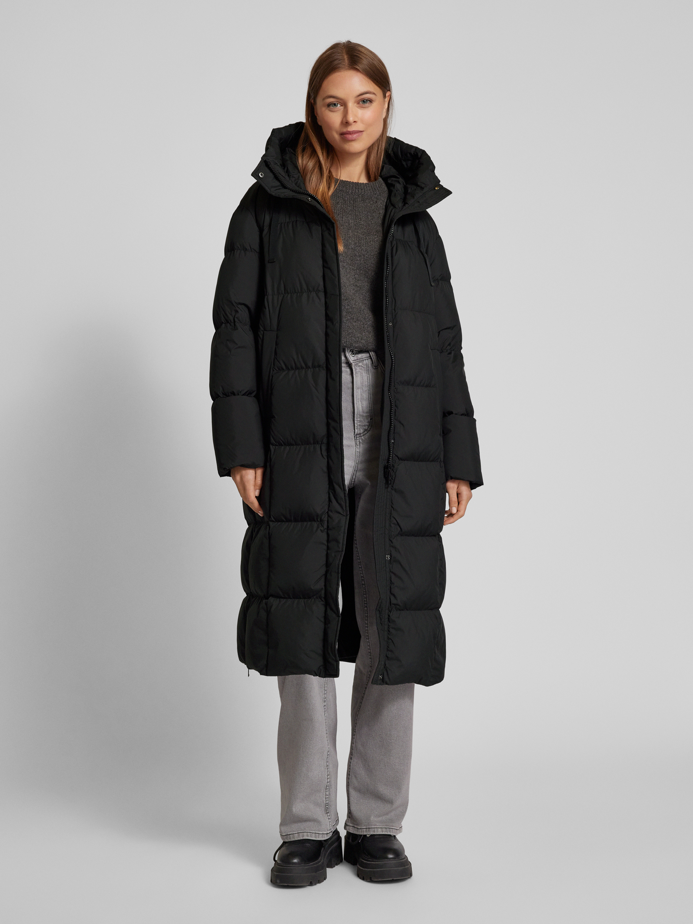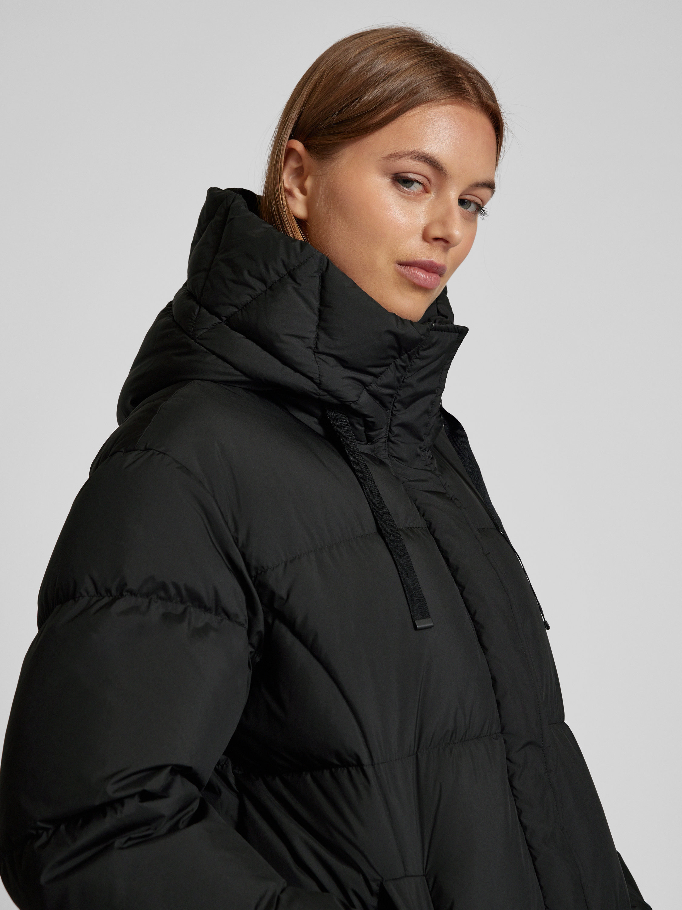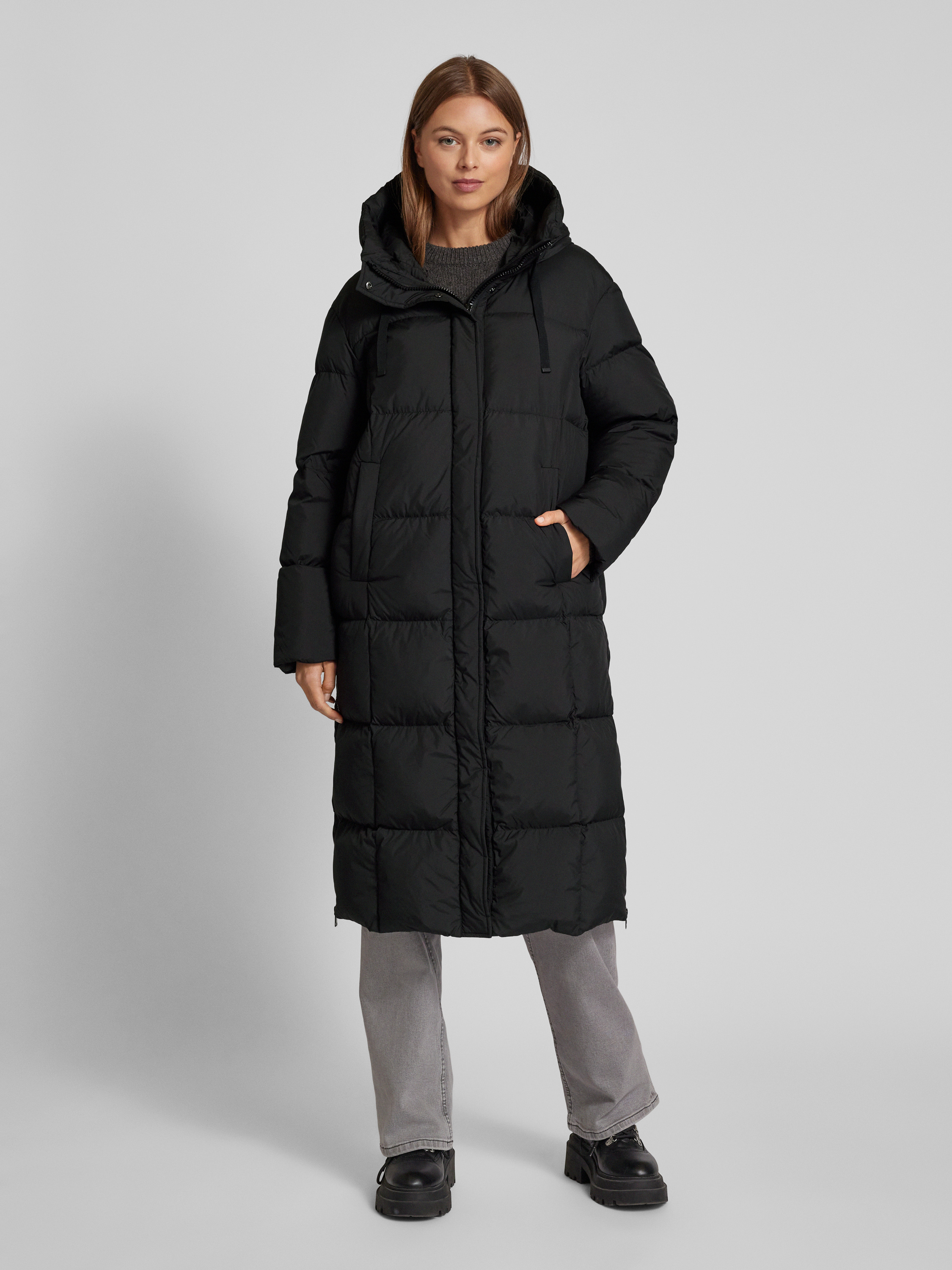 Płaszcz pikowany z kapturem - czarny