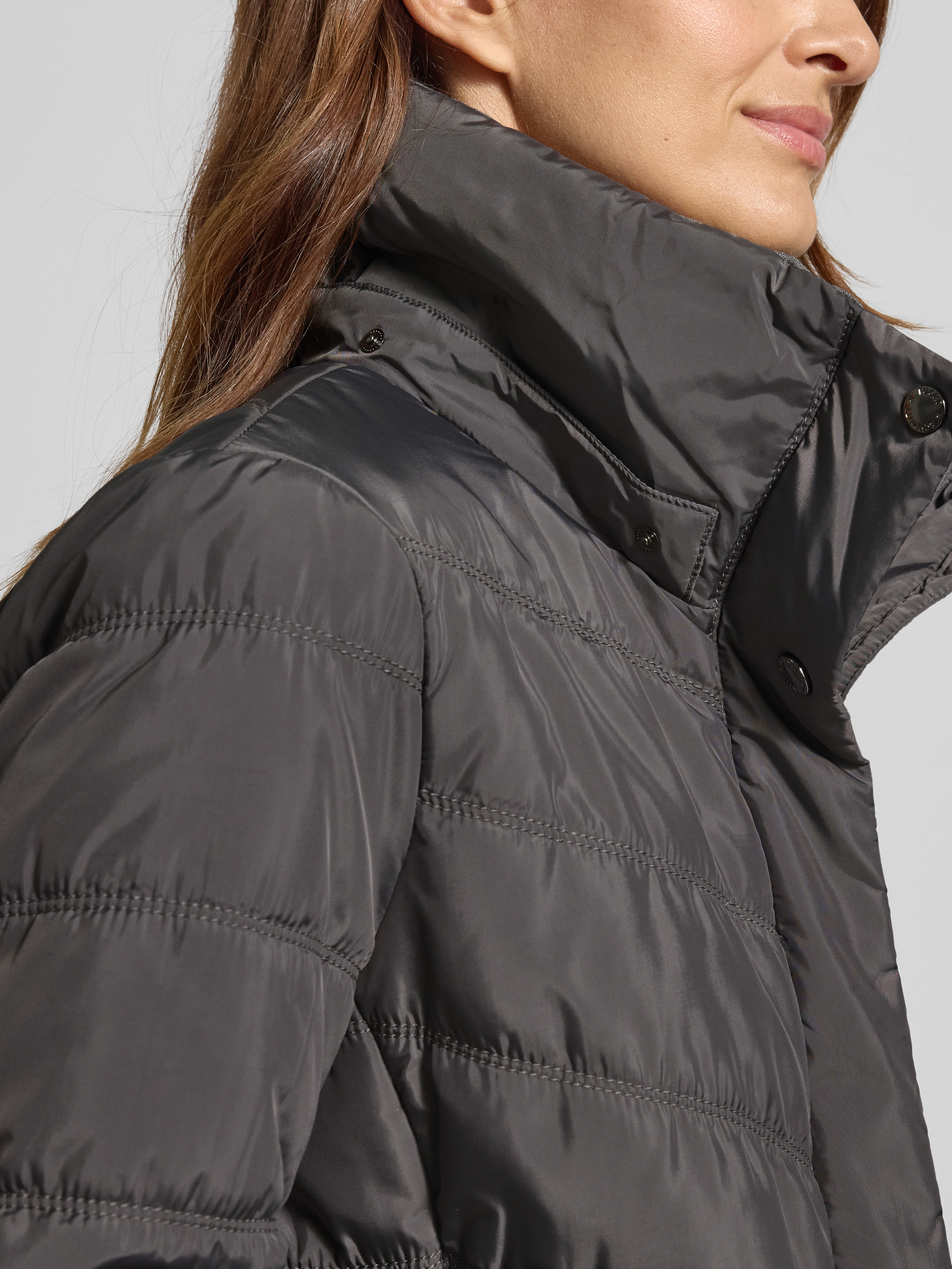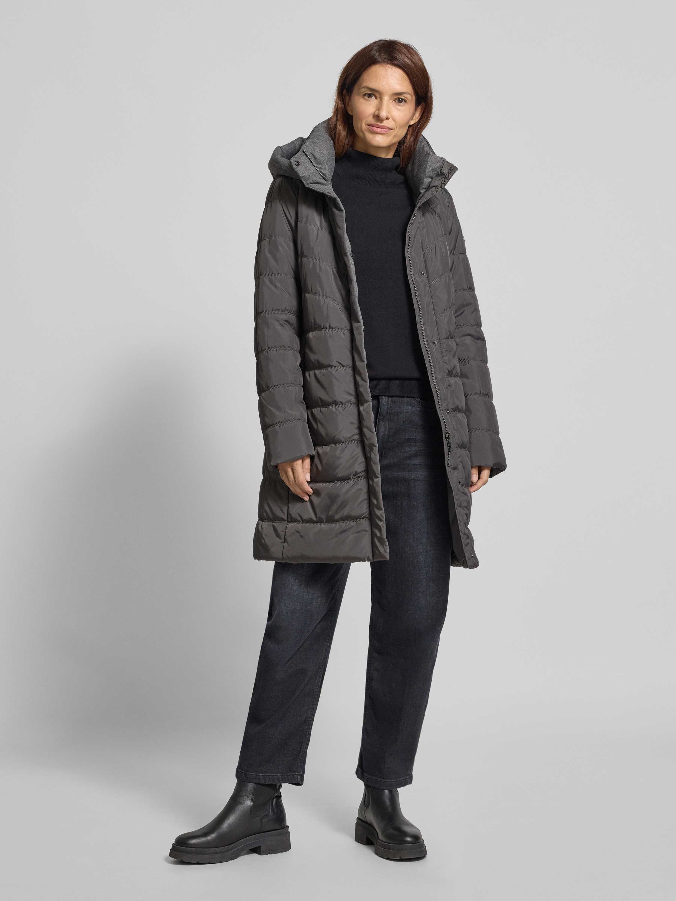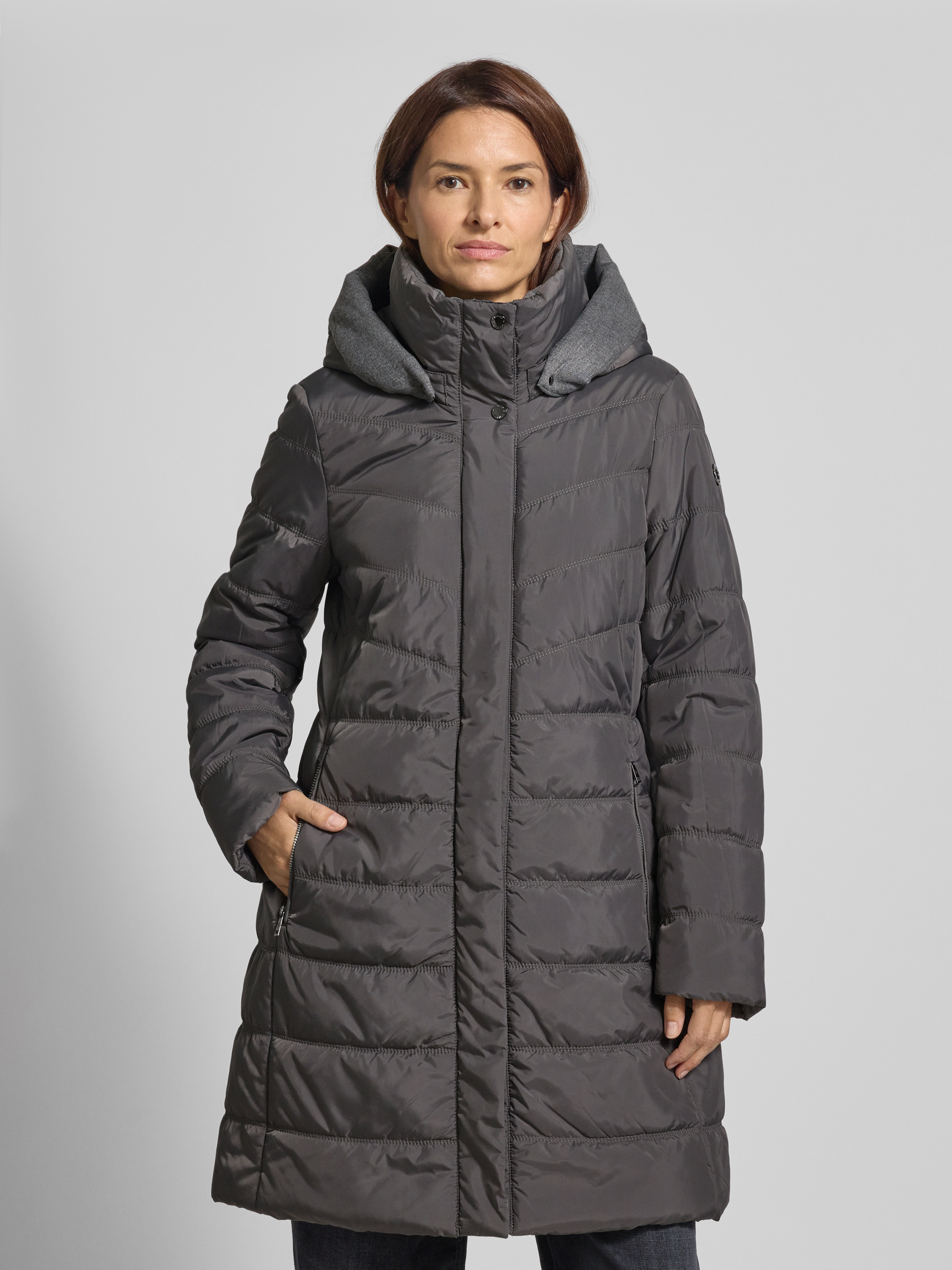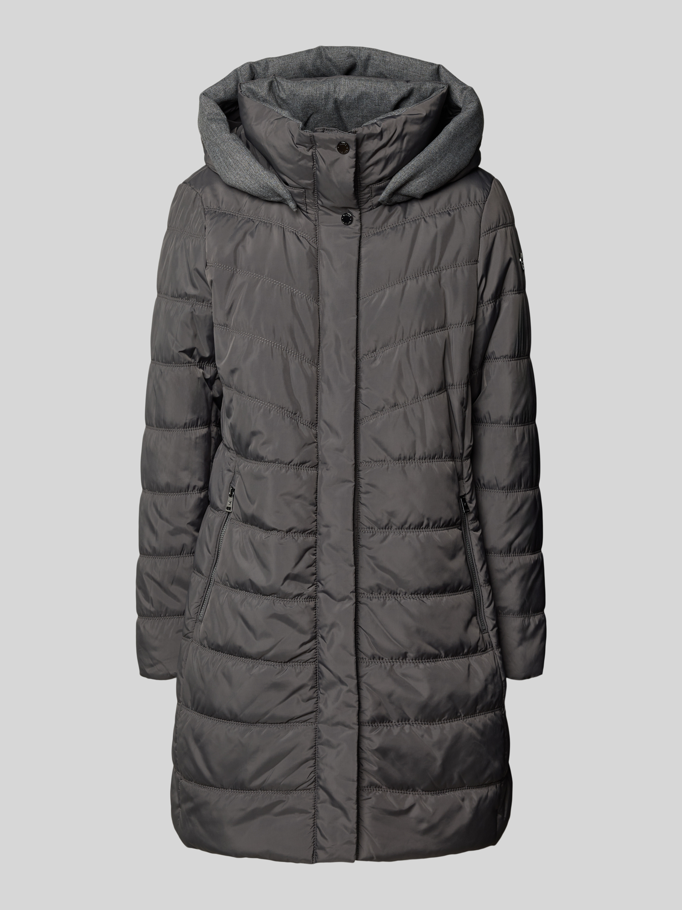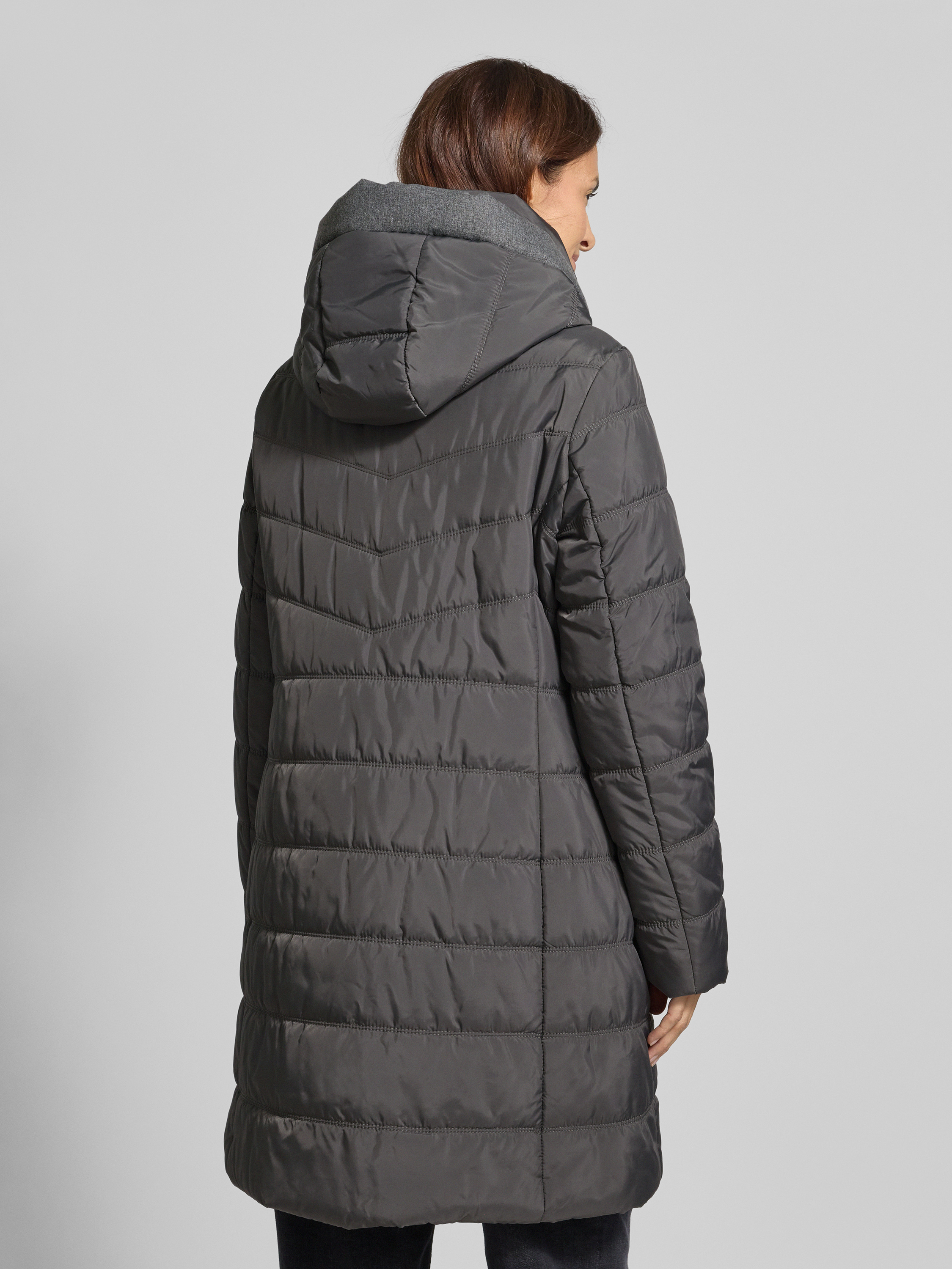 Płaszcz pikowany z kieszeniami zapinanymi na zamek błyskawiczny - antracytowy melanż