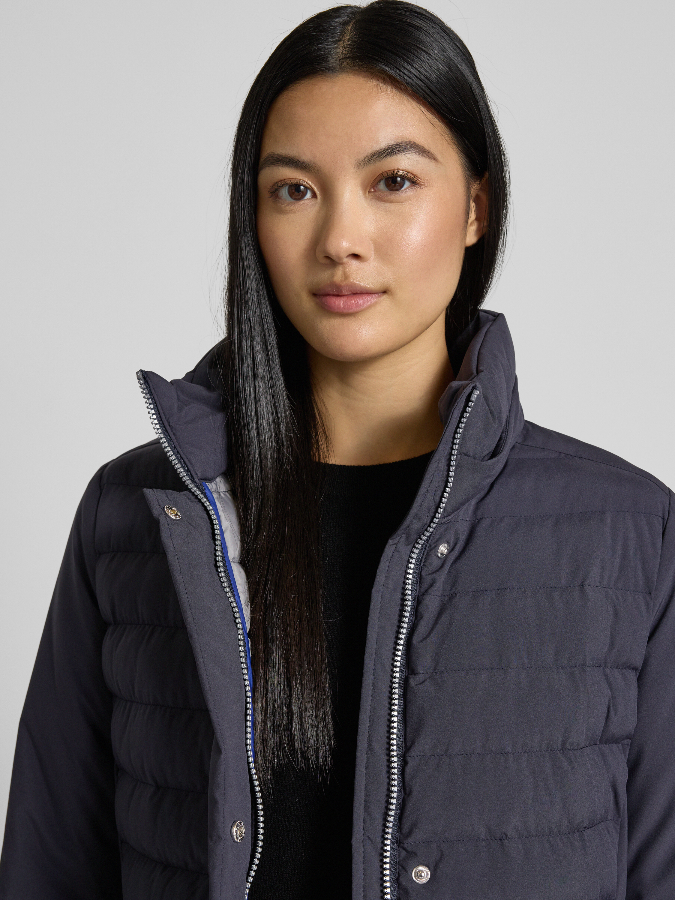 Płaszcz pikowany ze stójką z podszewką - granatowy