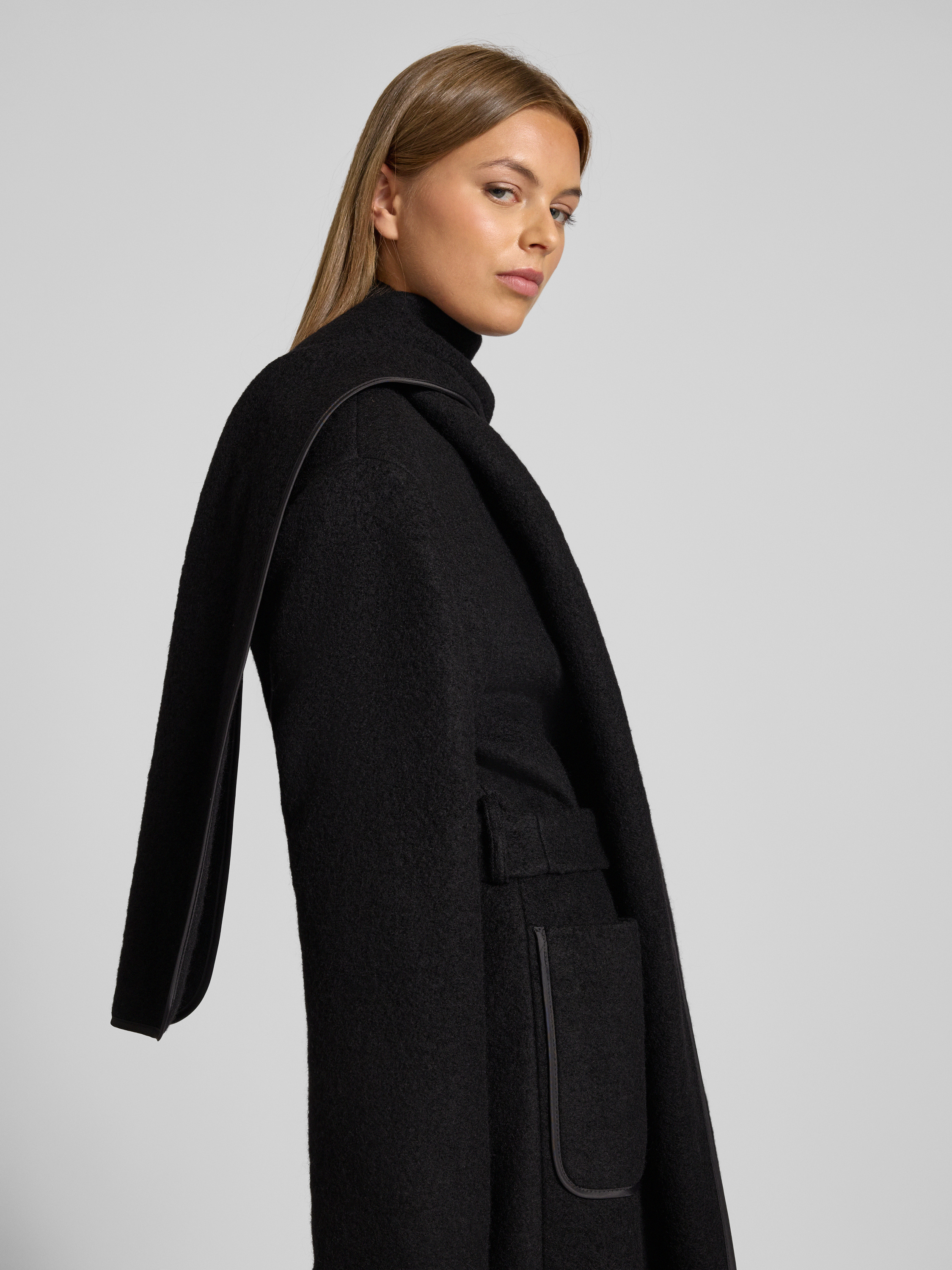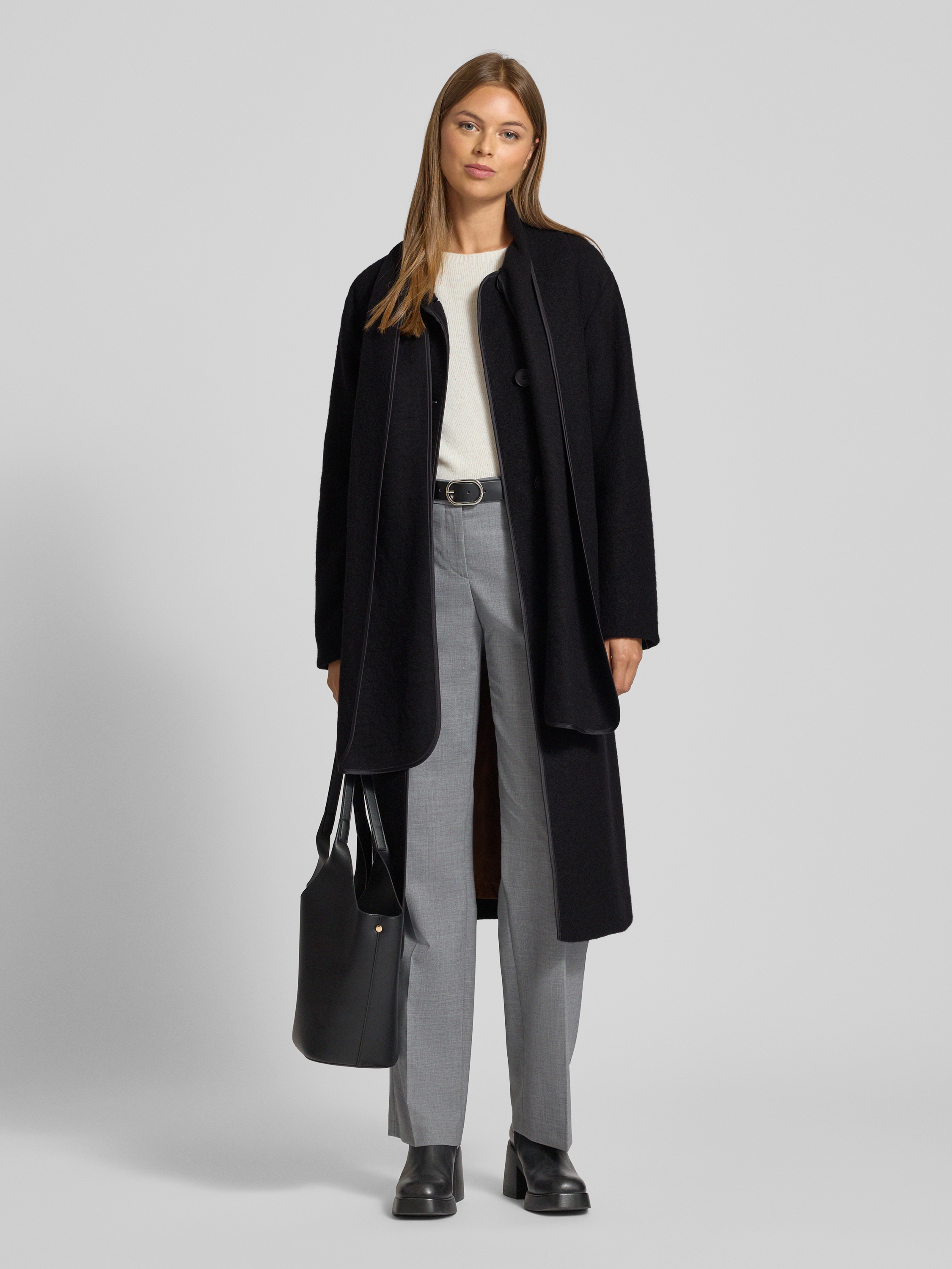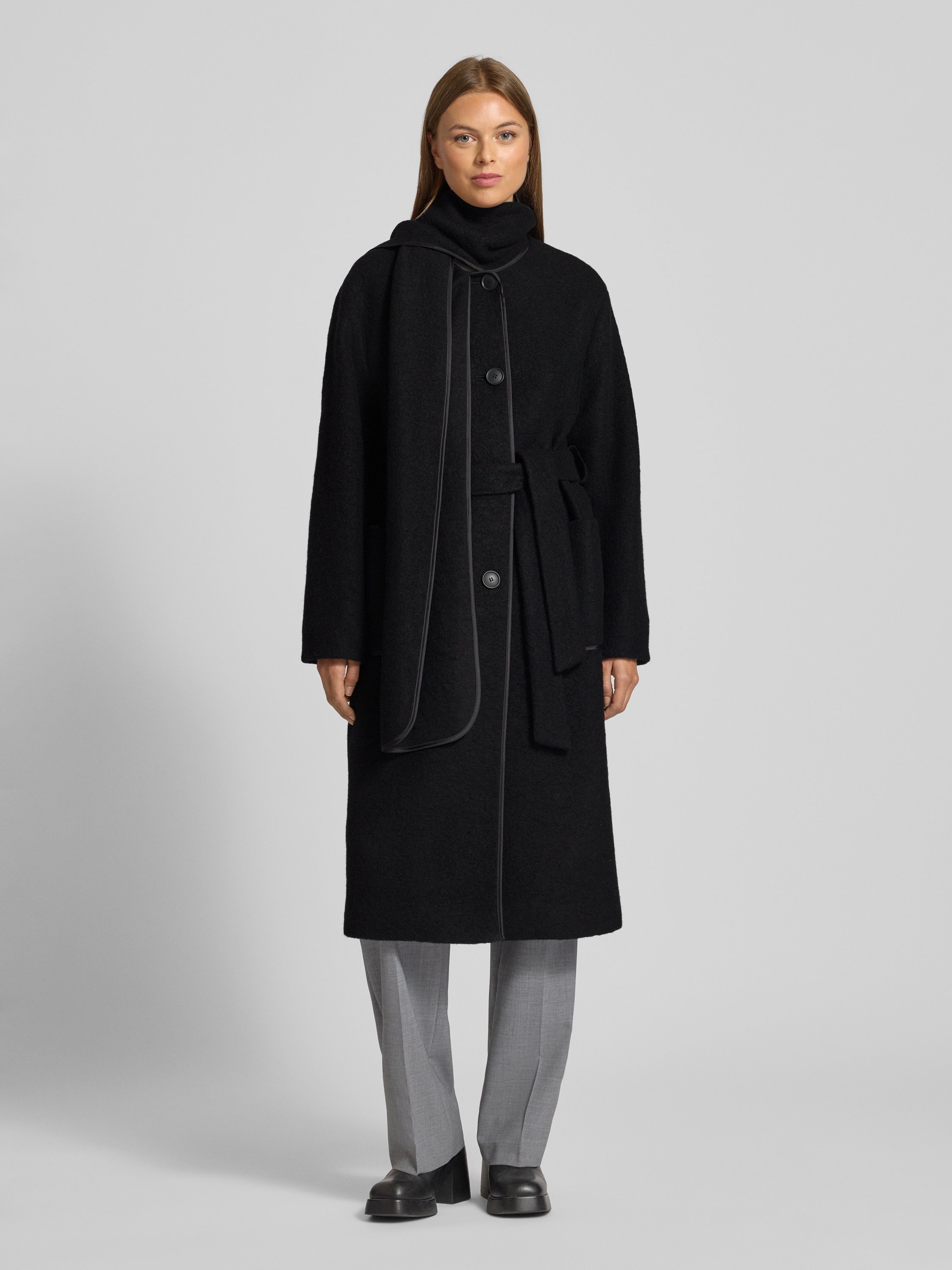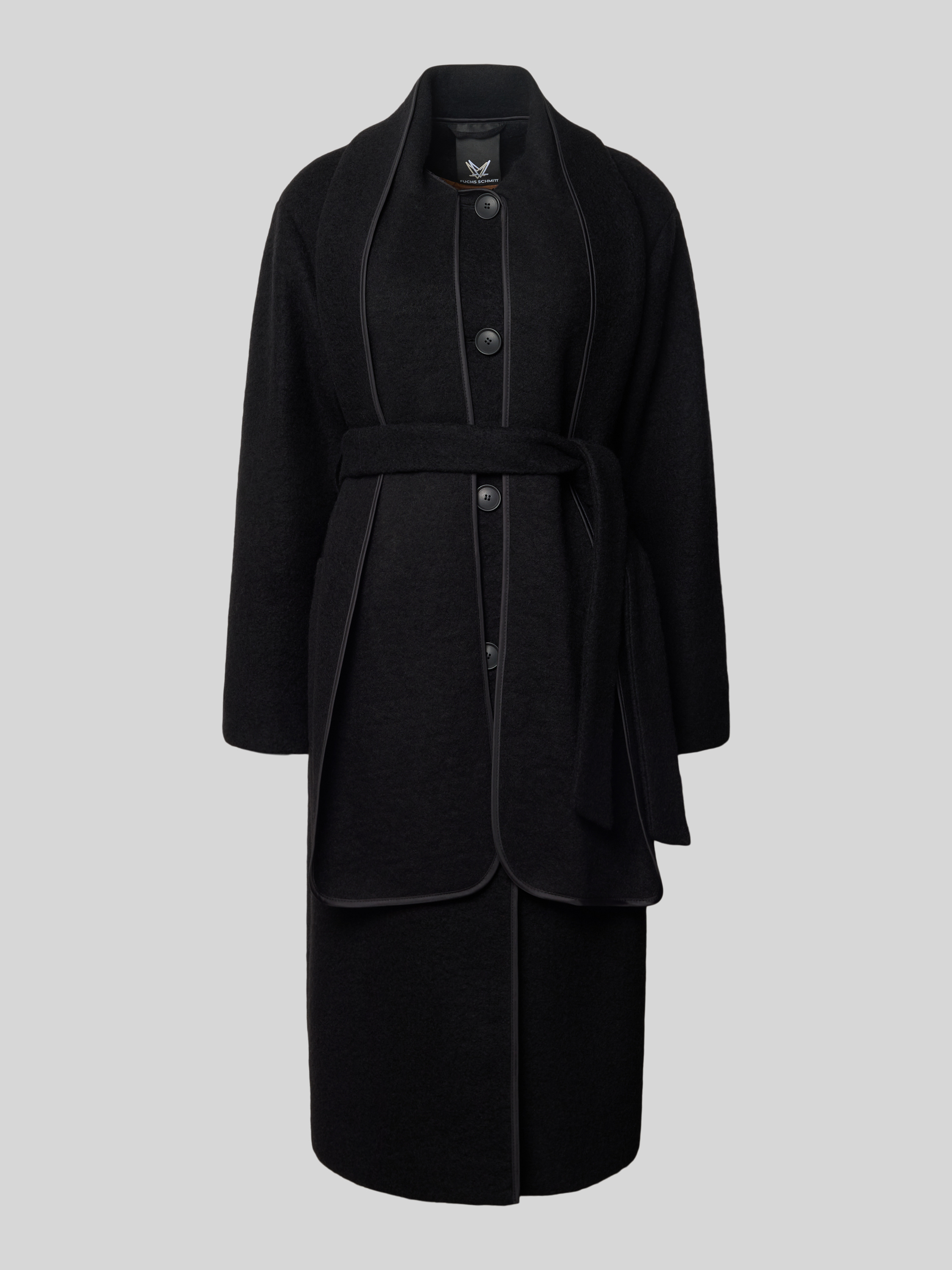 Płaszcz w kołnierzem z połami i detalem szalowym - czarny