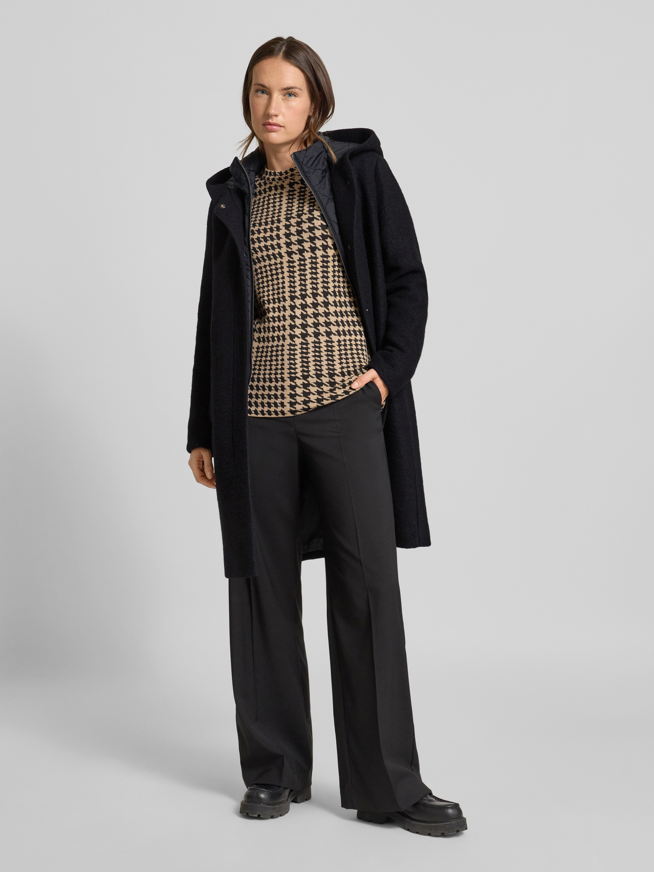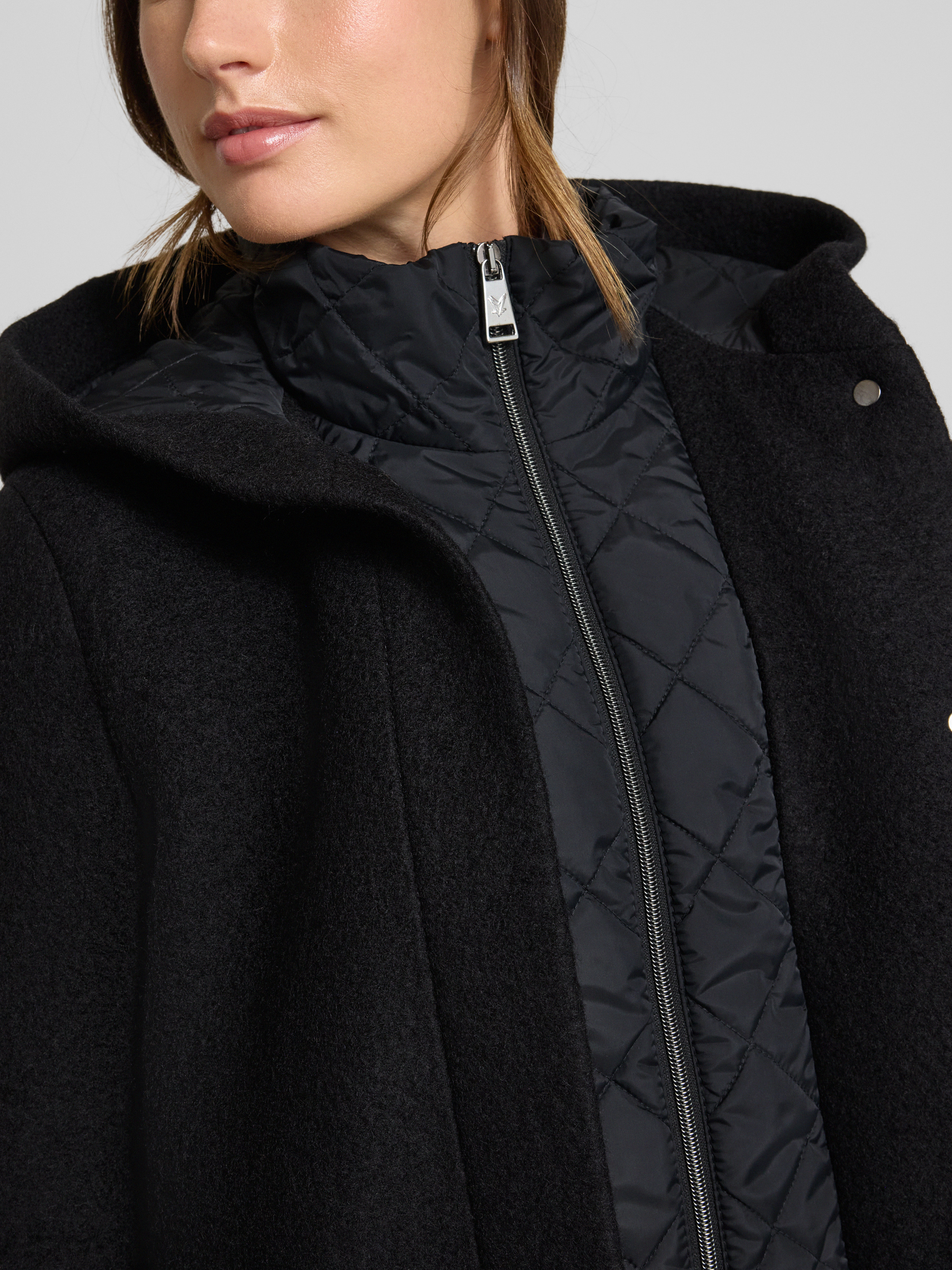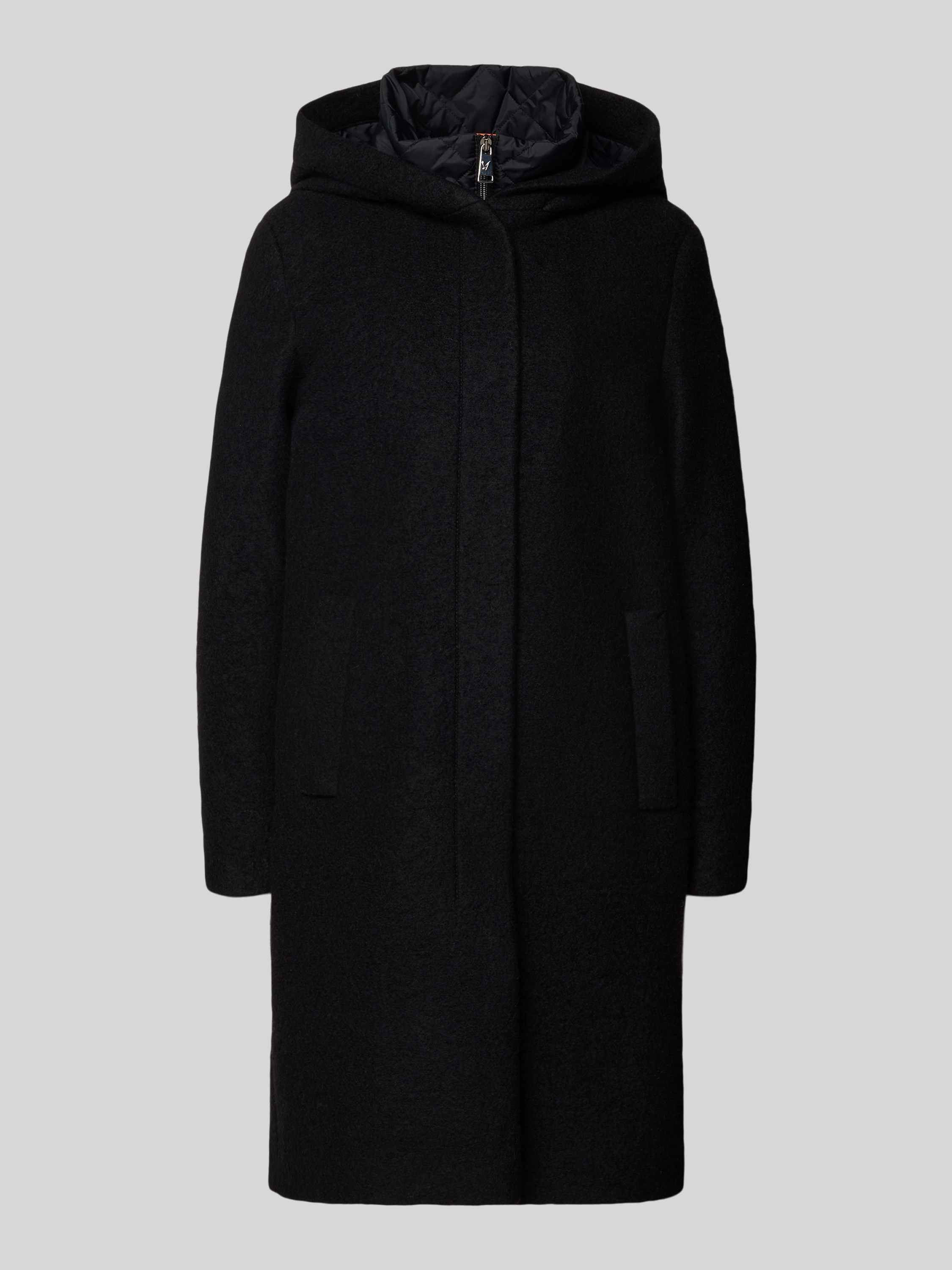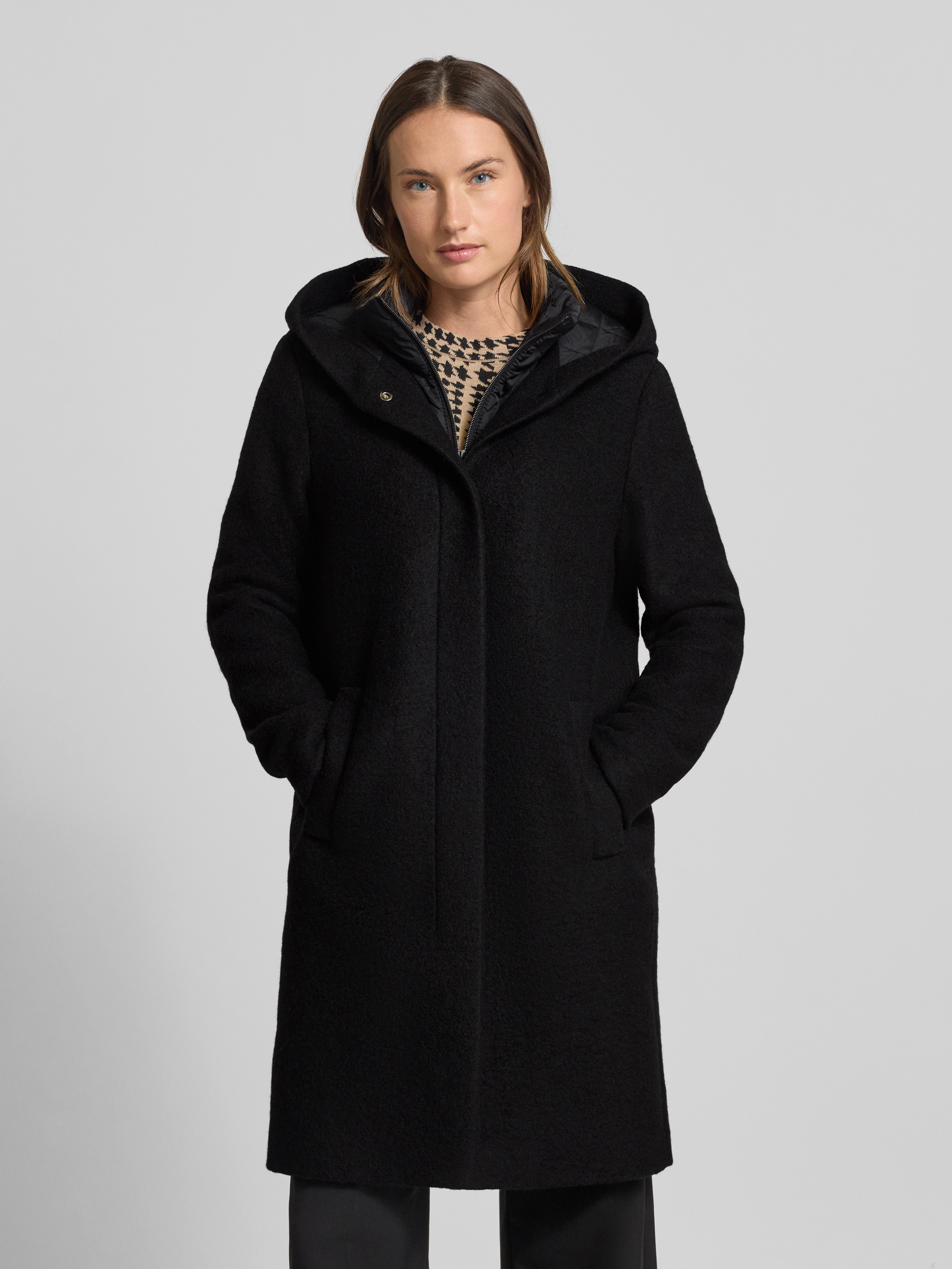 Płaszcz z kapturem i krytym zamkiem błyskawicznym - czarny