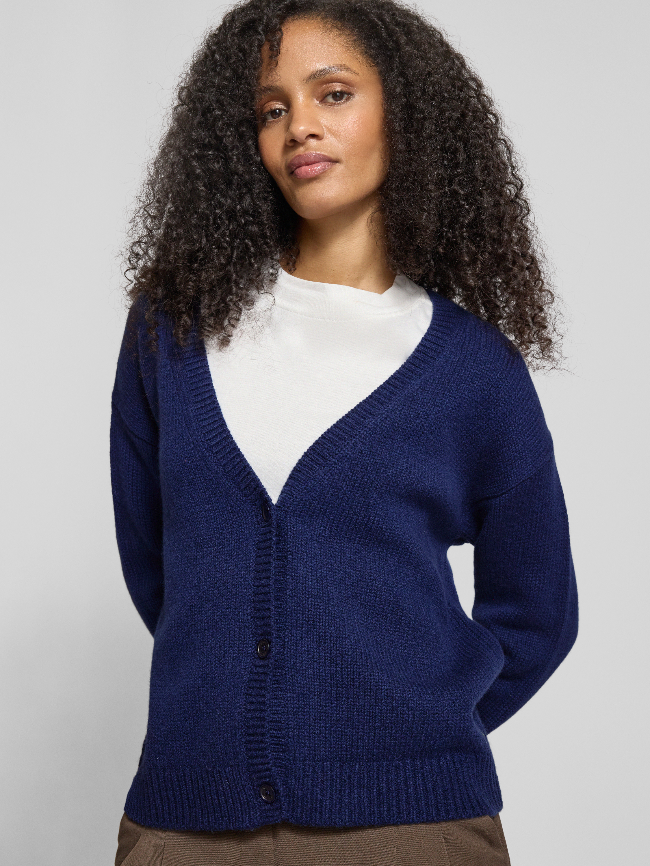 Fynch-HattonKardigan o kroju regular fit z czystej wełny z efektem dzianiny - granatowy