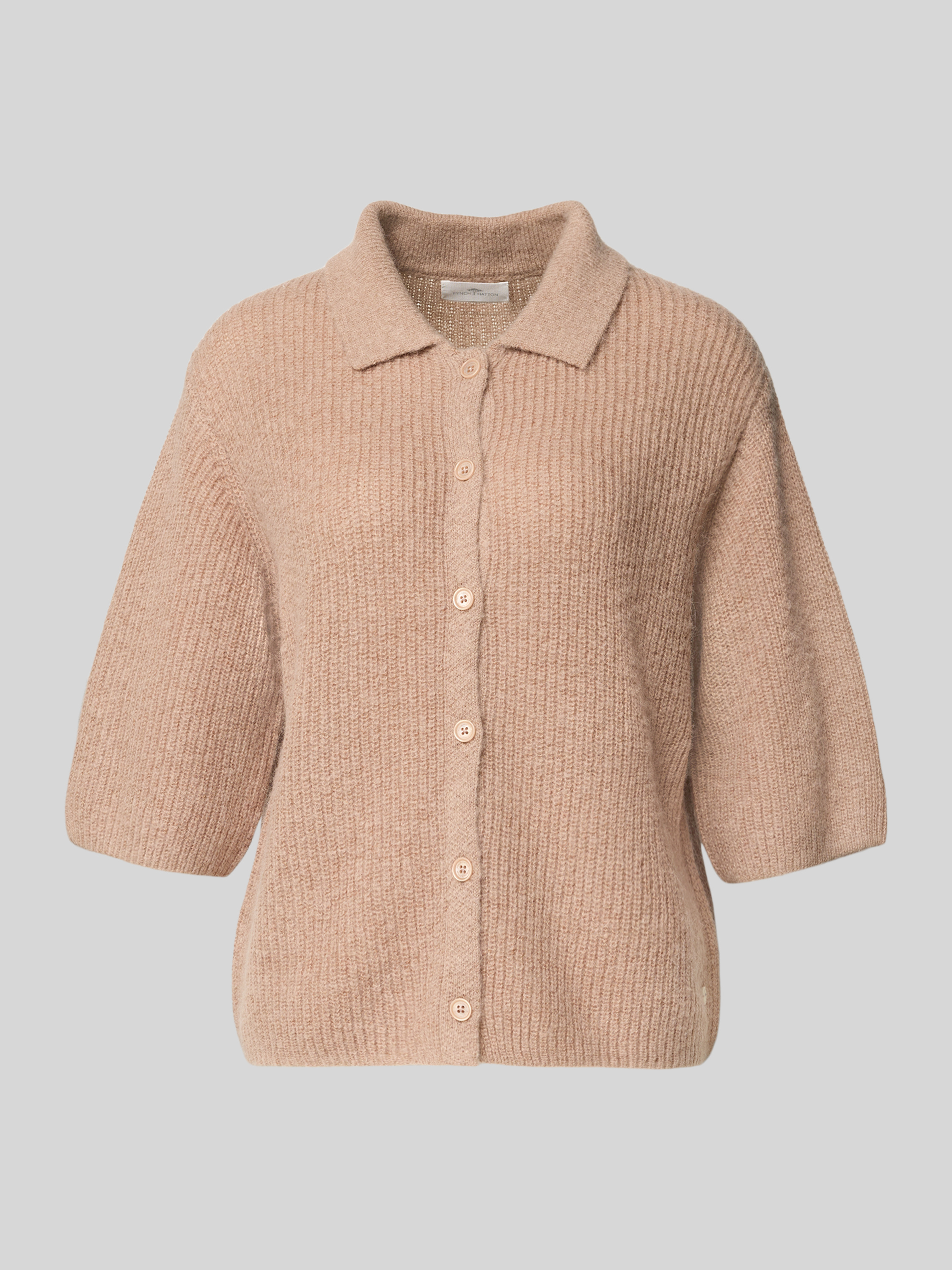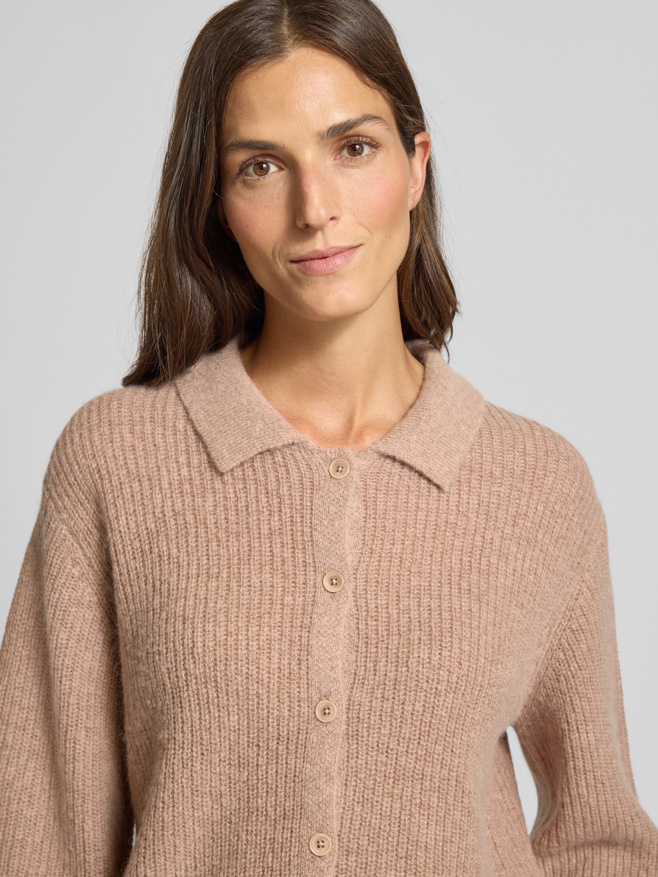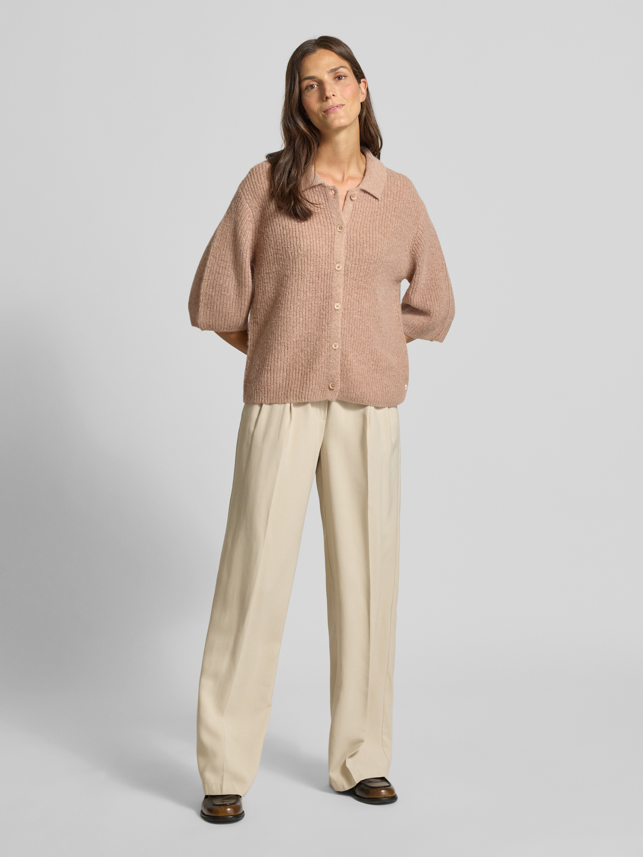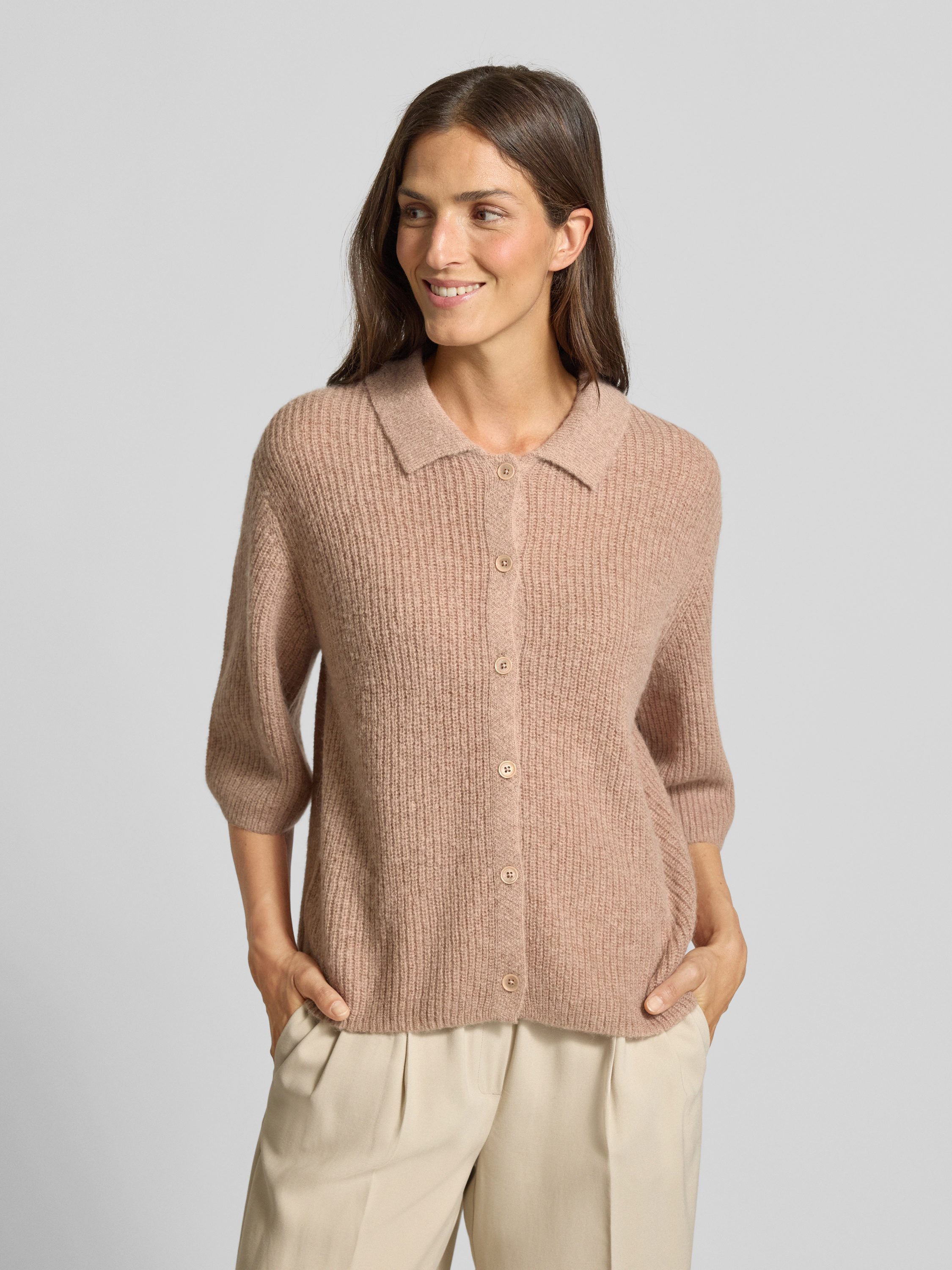Kardigan z dzianiny z wykładanym kołnierzem - jasnobrązowy