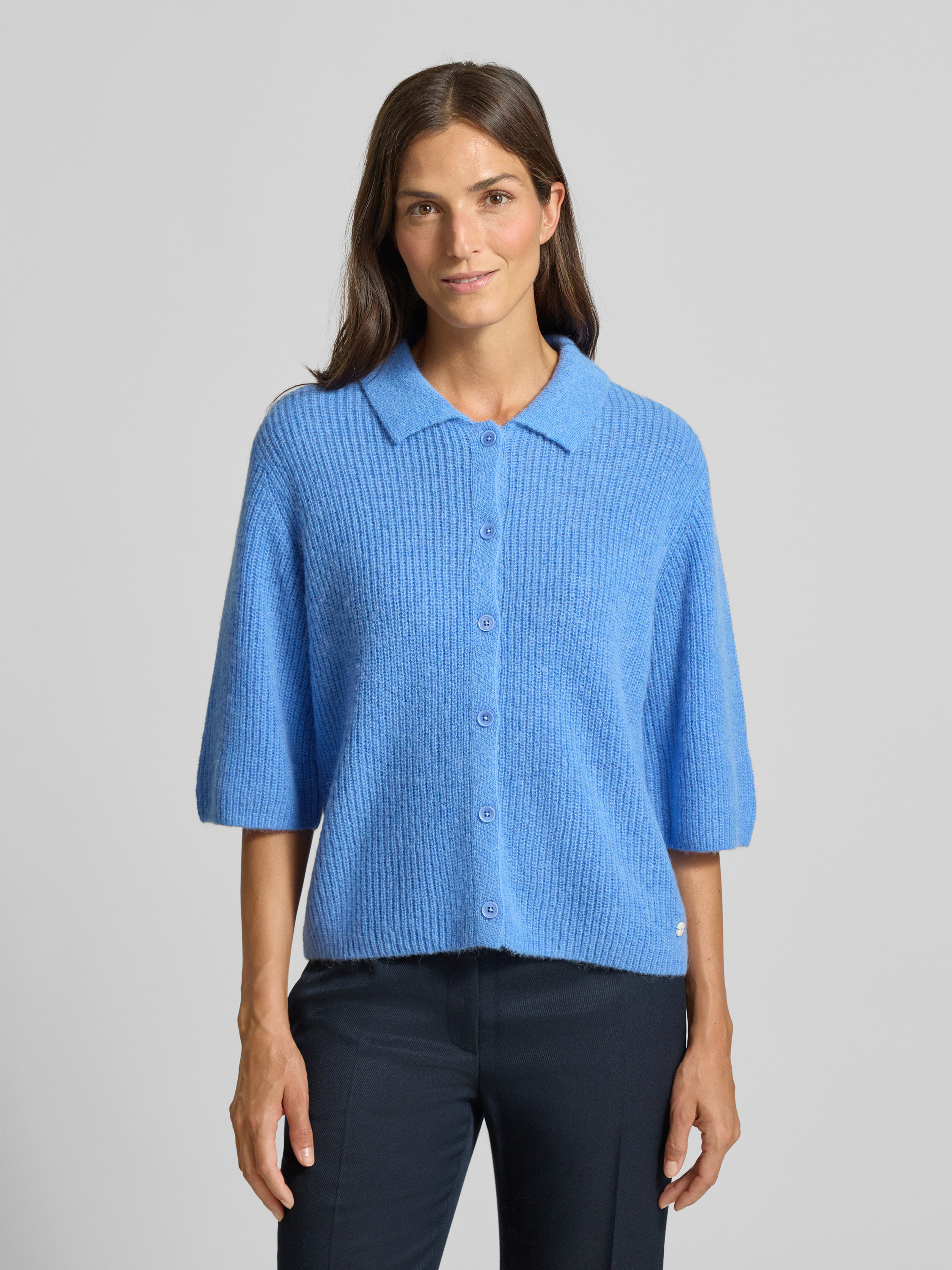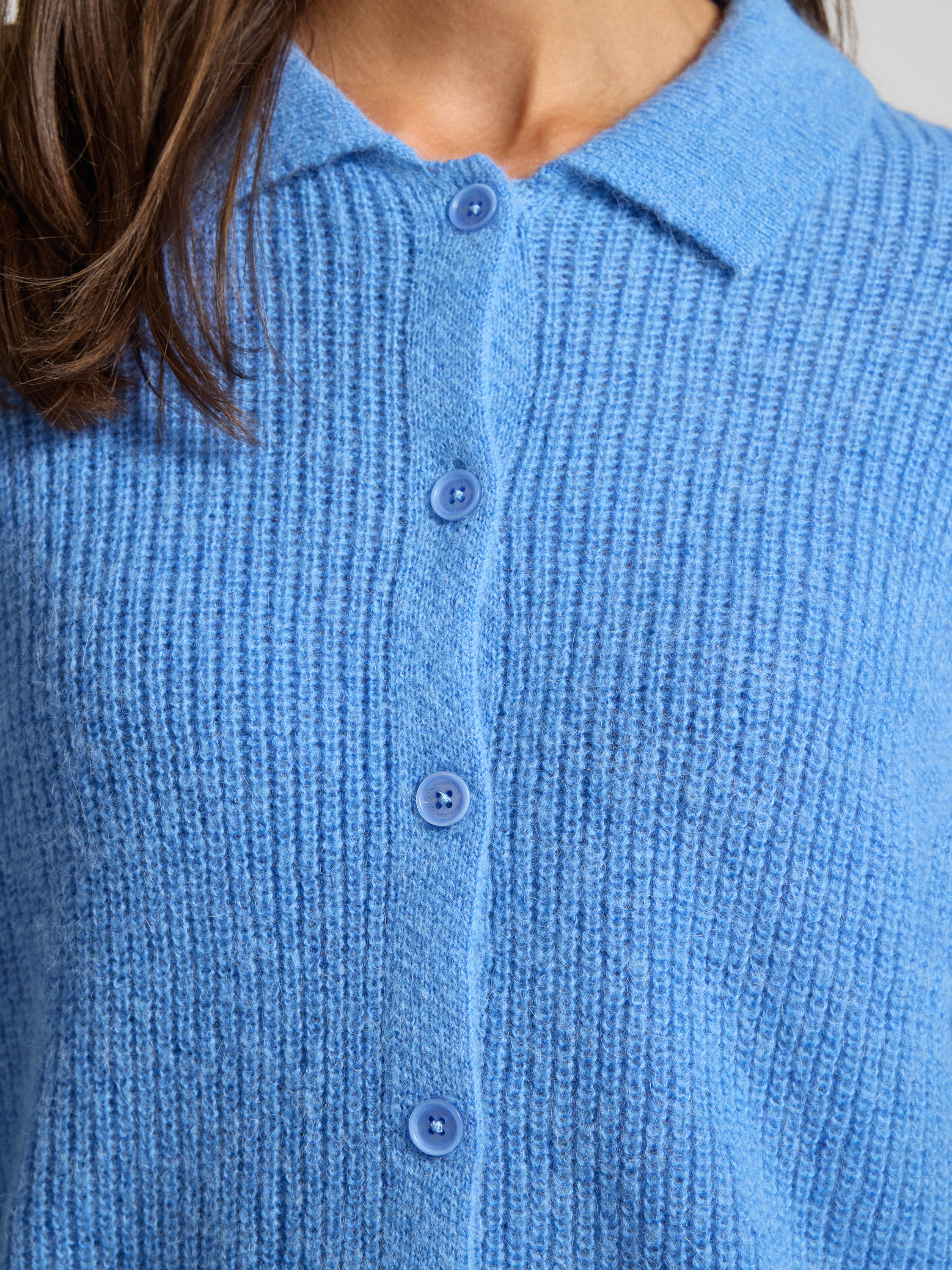 Kardigan z dzianiny z wykładanym kołnierzem - królewski niebieski