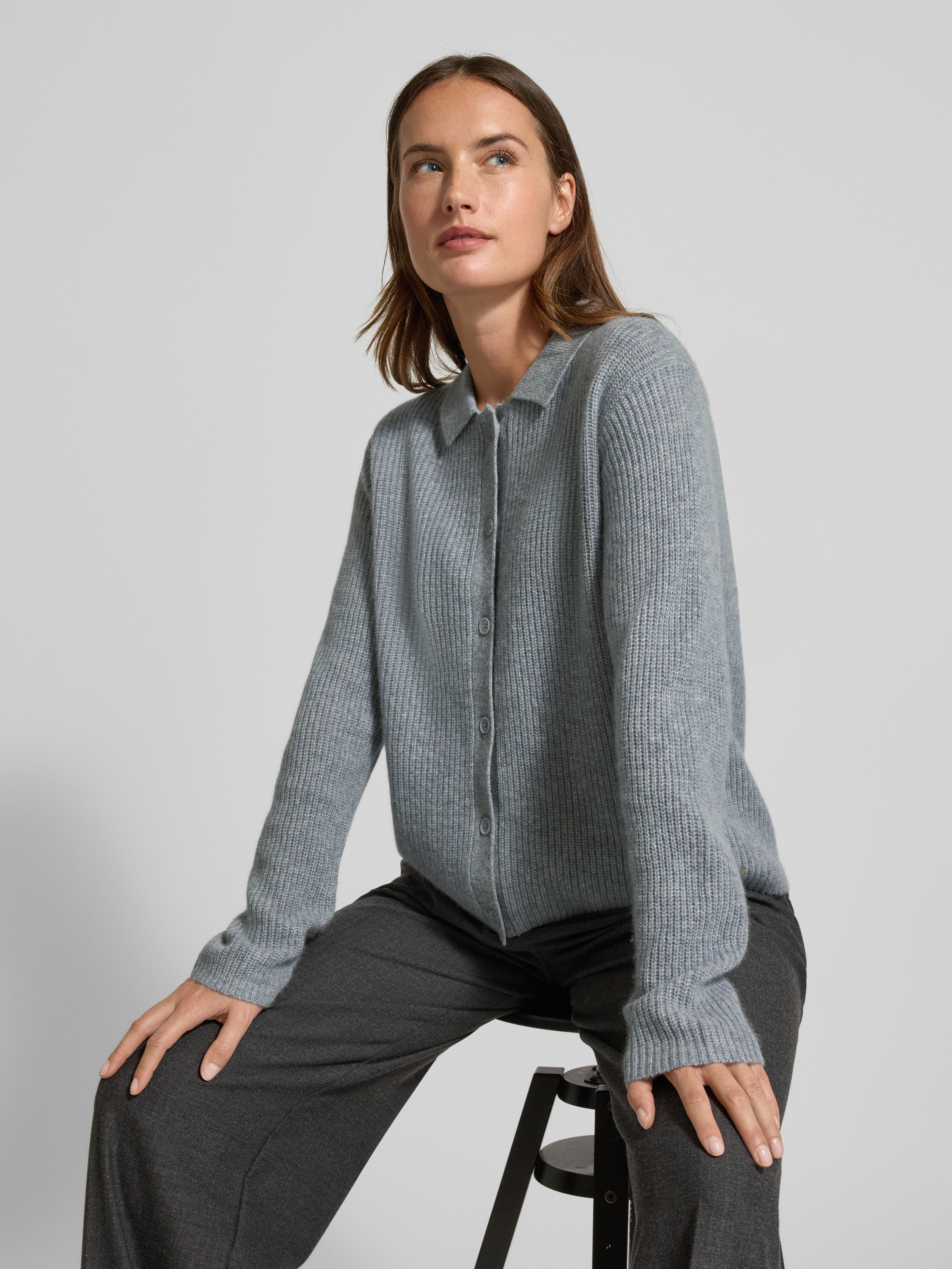 • Fynch-Hatton Kurtka z dzianiny z kaszmiru z wykładanym kołnierzem Jasnoszary melanż