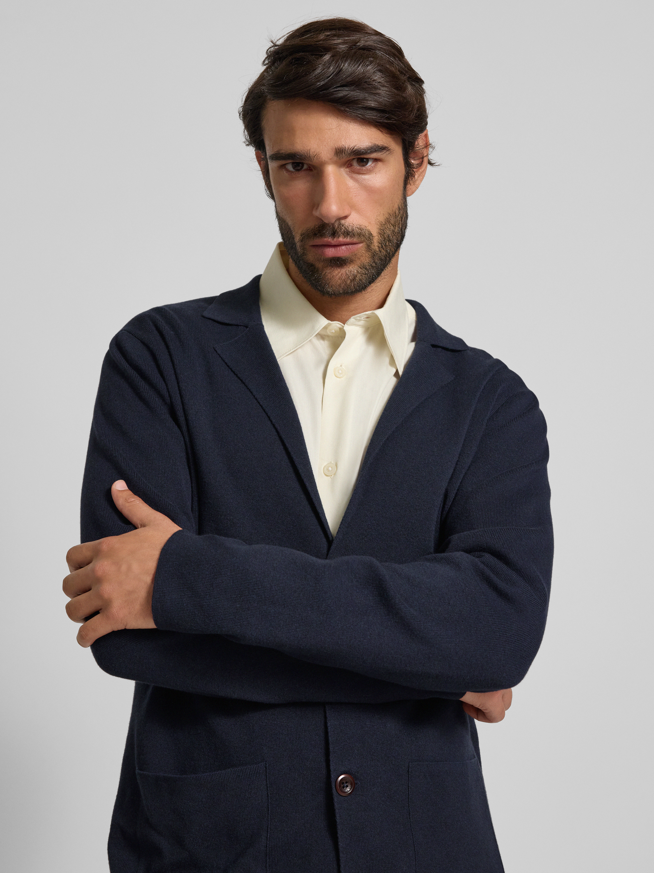 Kurtka z dzianiny z listwą guzikową - granatowy