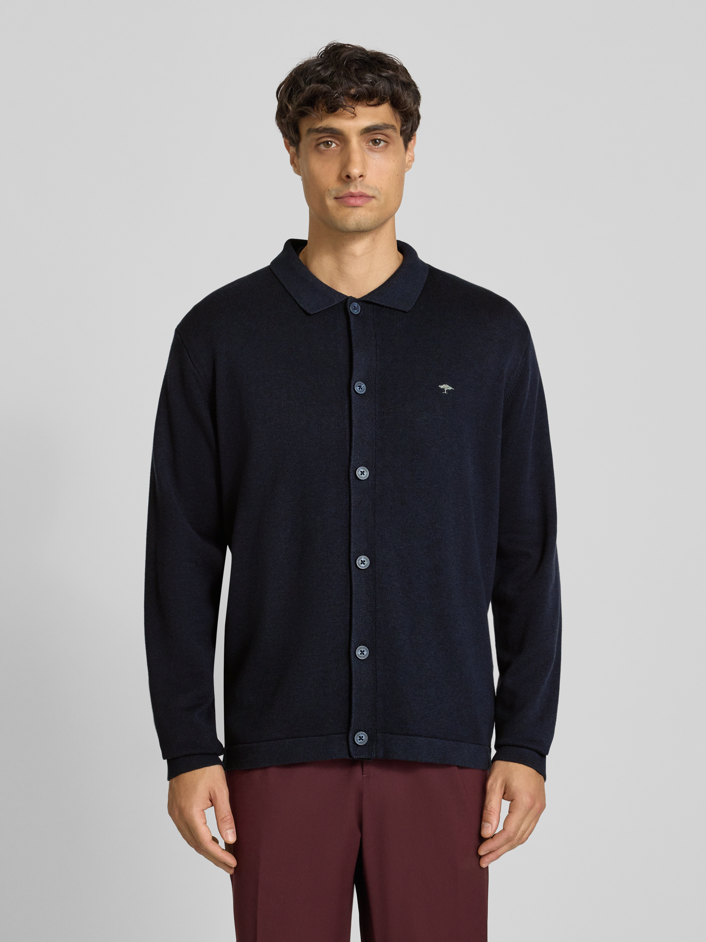 Kurtka z dzianiny z listwą guzikową - granatowy