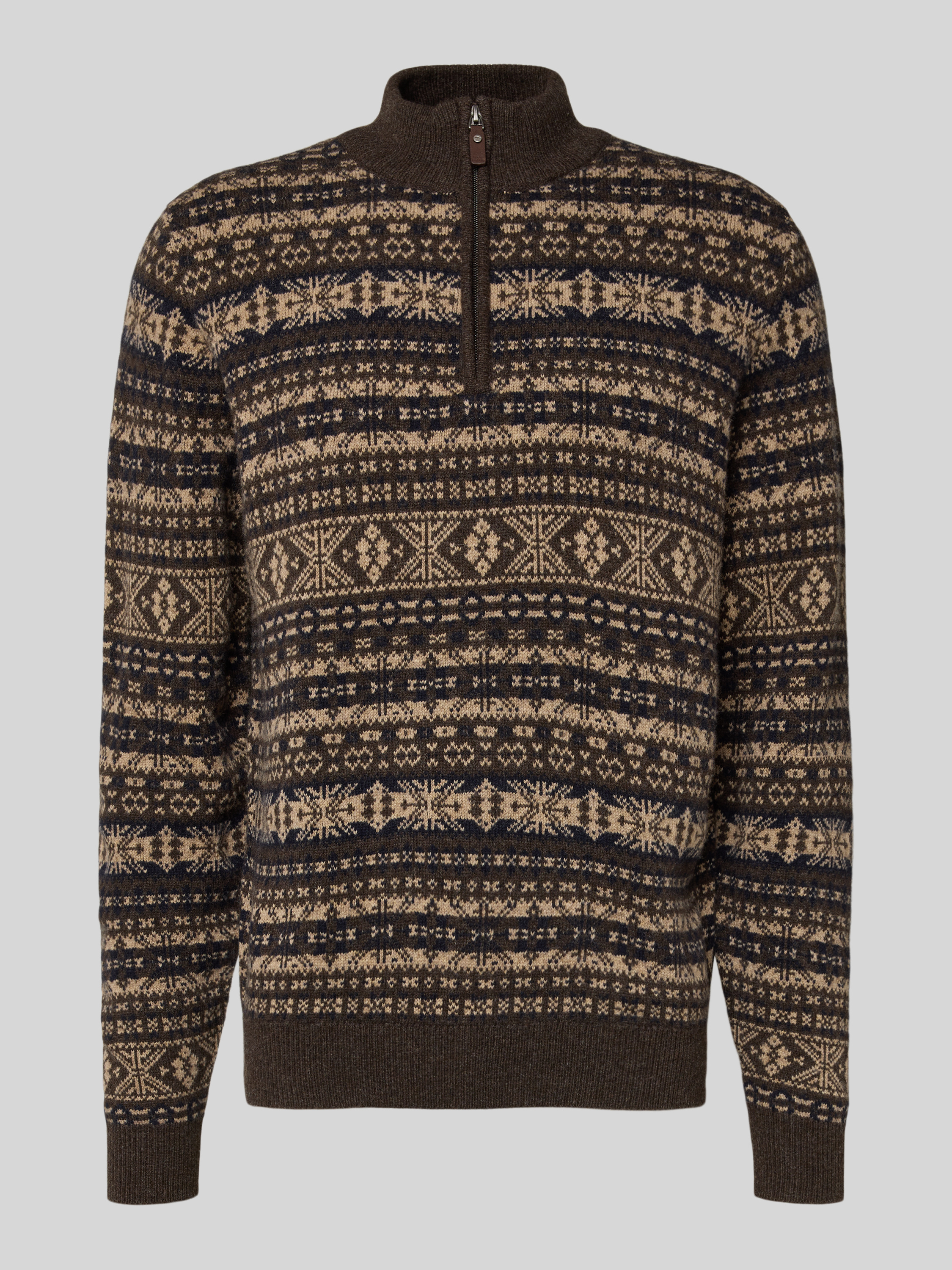 • Fynch-Hatton Sweter o kroju regular fit z czystej wełny model ‘Jacquard’ Czekoladowy