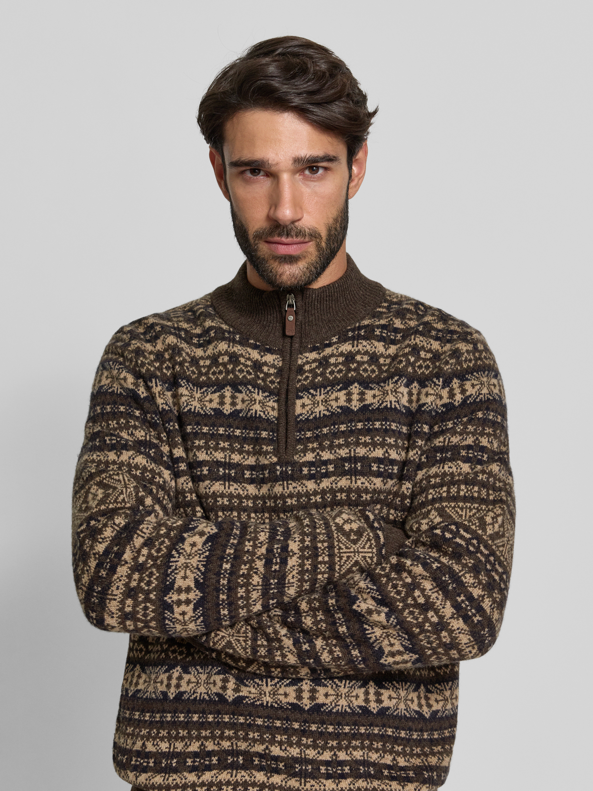 Fynch-HattonSweter o kroju regular fit z czystej wełny model ‘Jacquard’ - czekoladowy