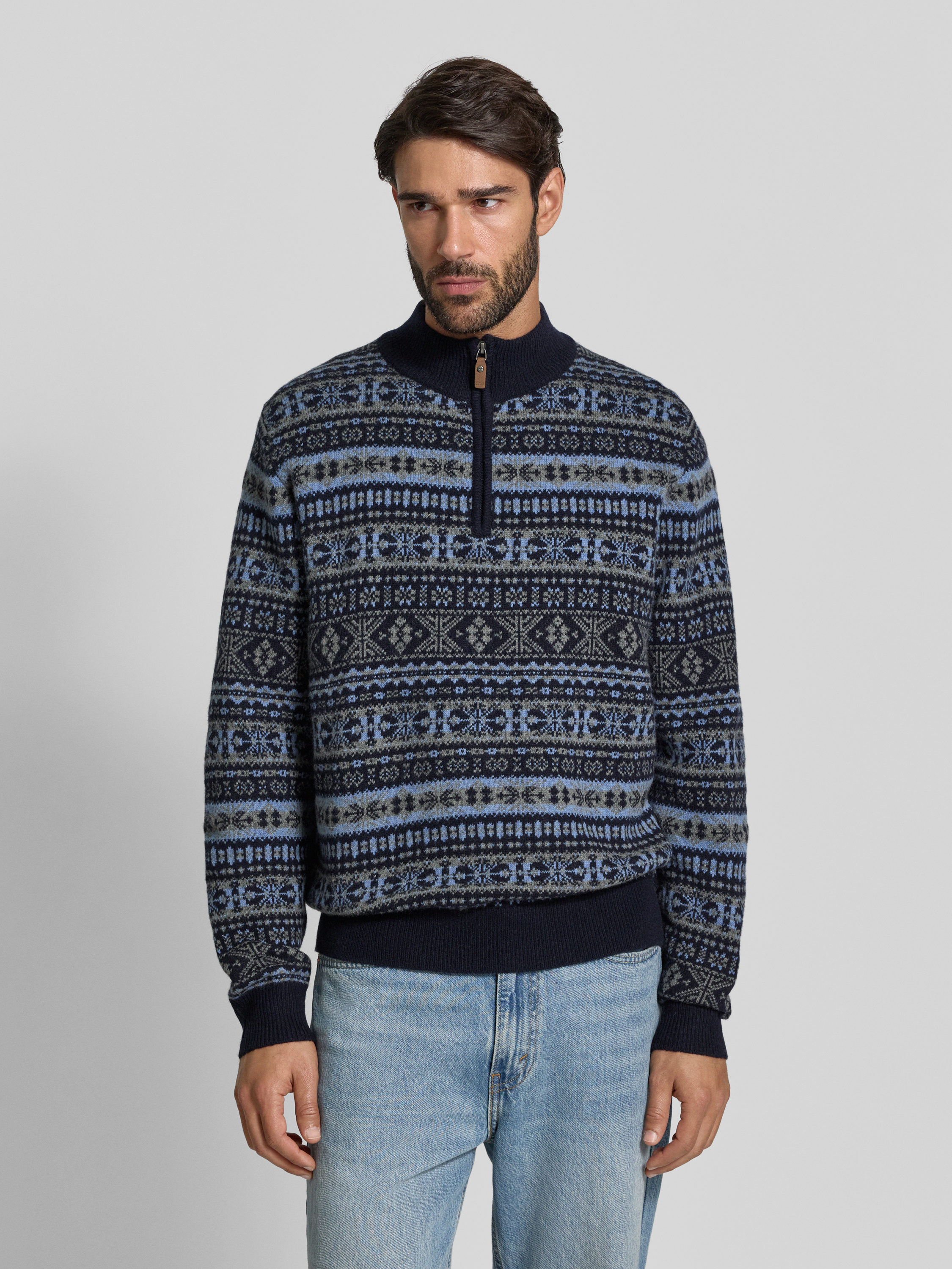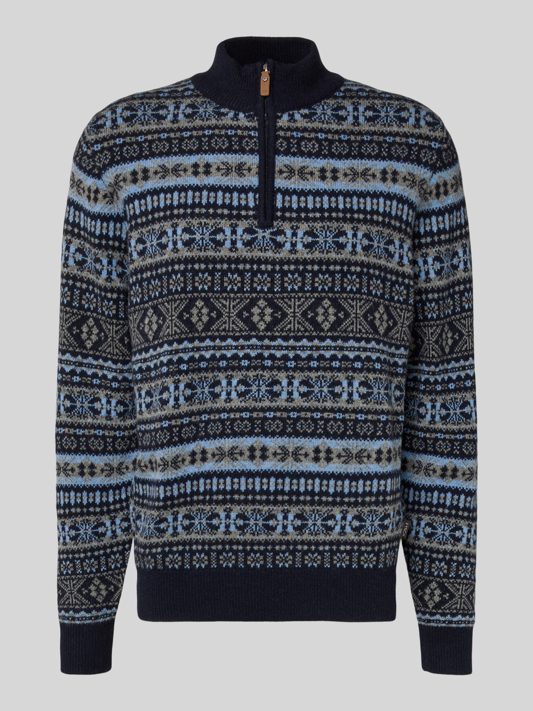 • Fynch-Hatton Sweter o kroju regular fit z czystej wełny model ‘Jacquard’ Granatowy