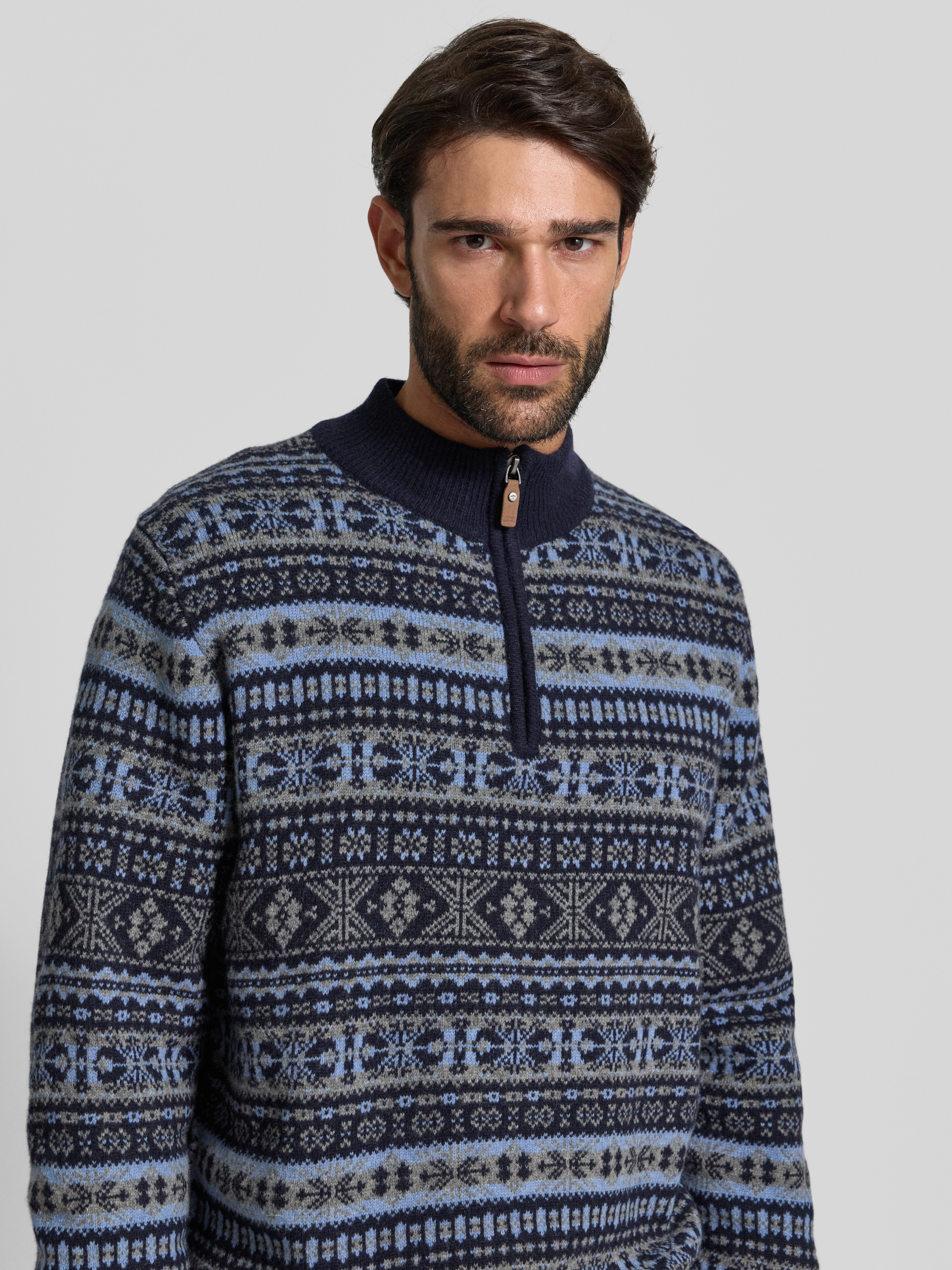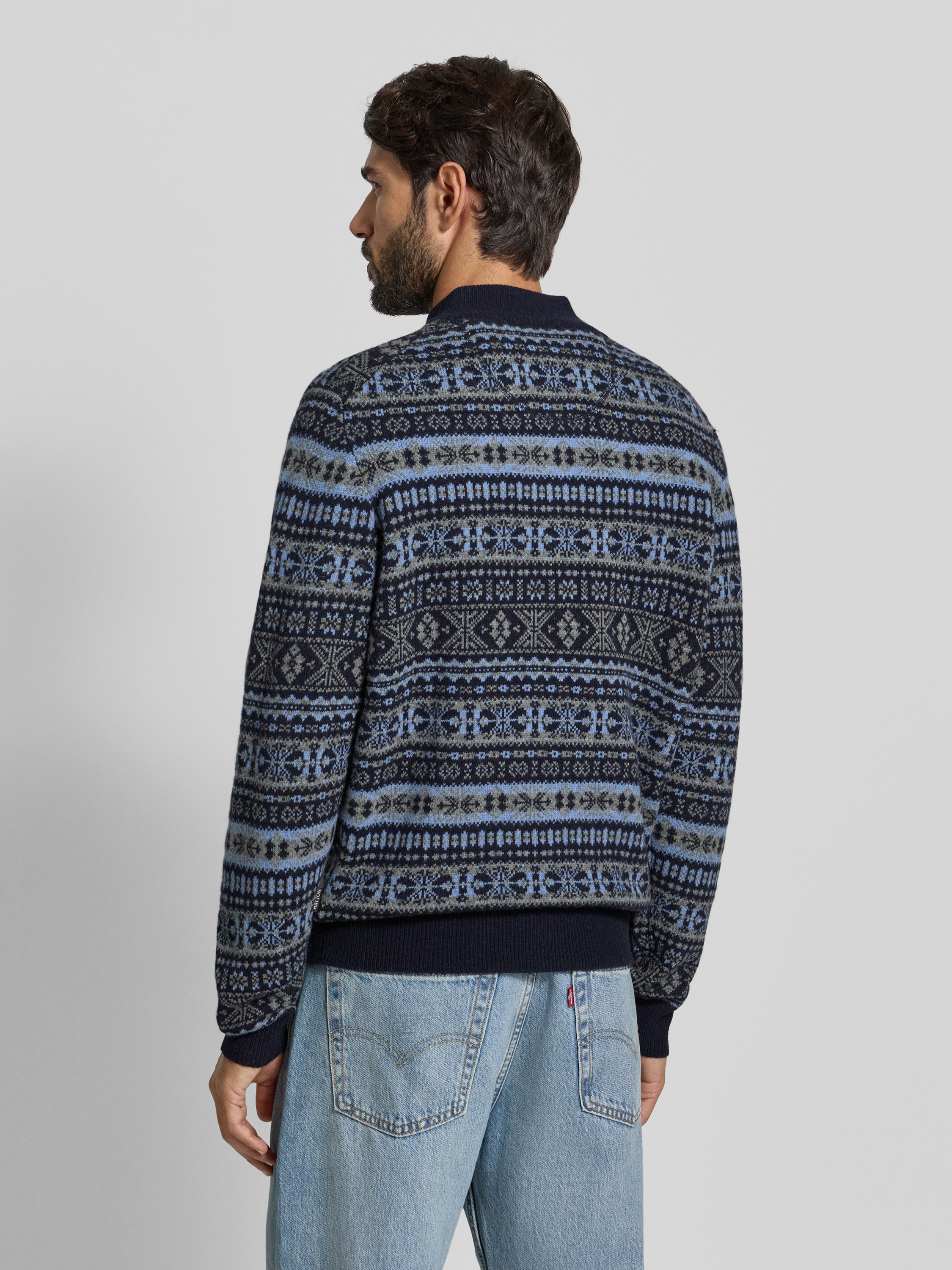 Fynch-HattonSweter o kroju regular fit z czystej wełny model ‘Jacquard’ - granatowy