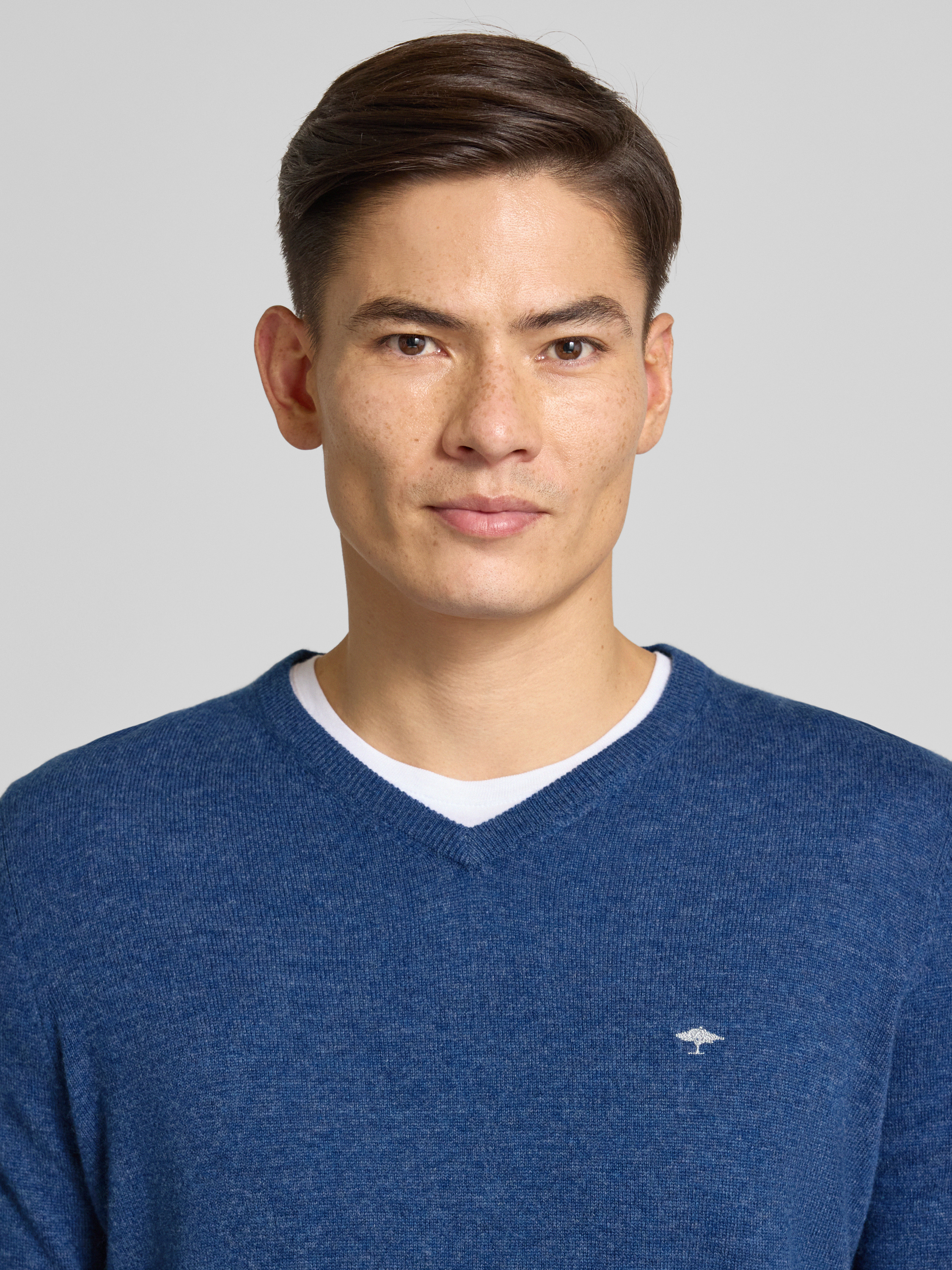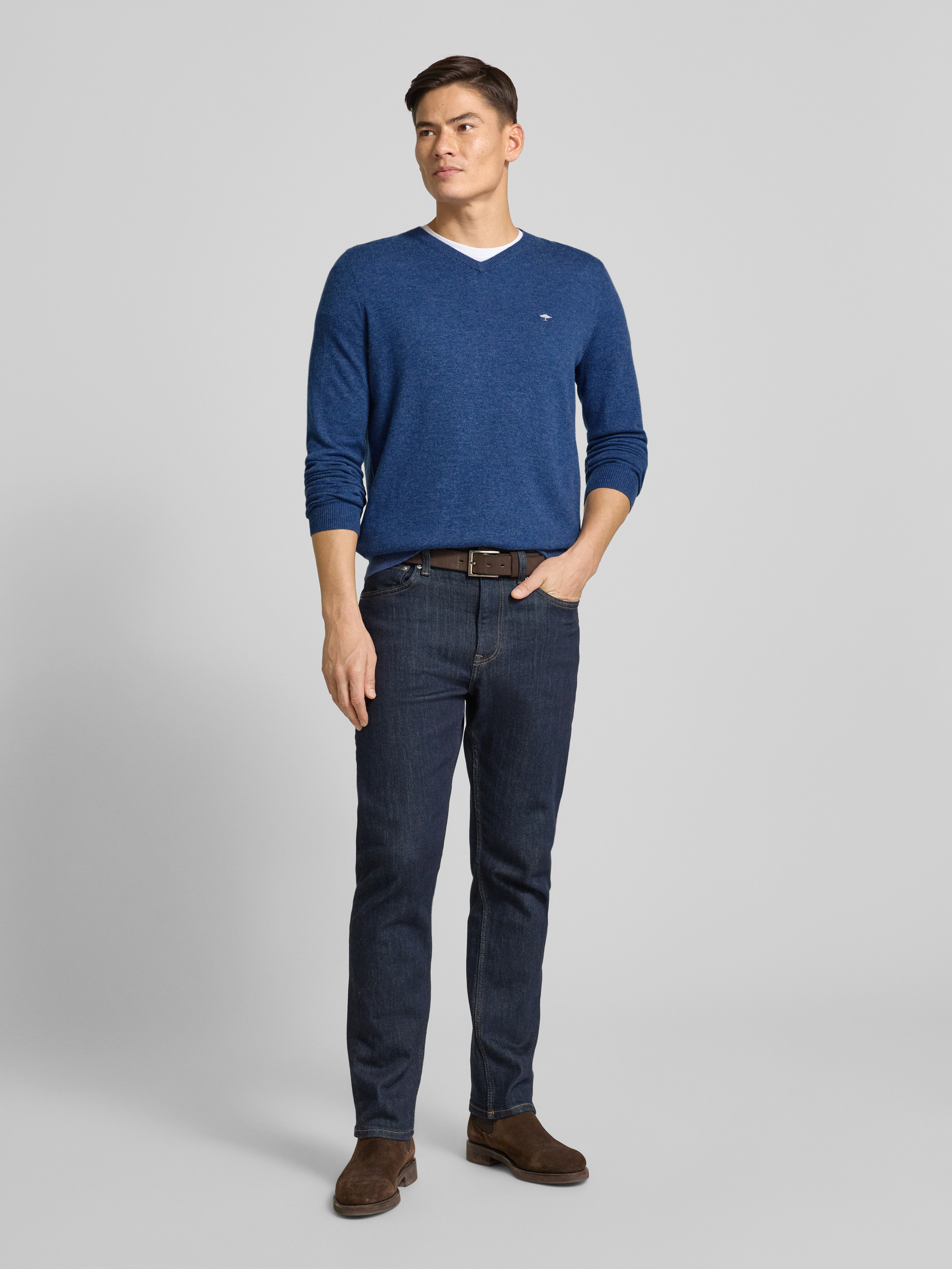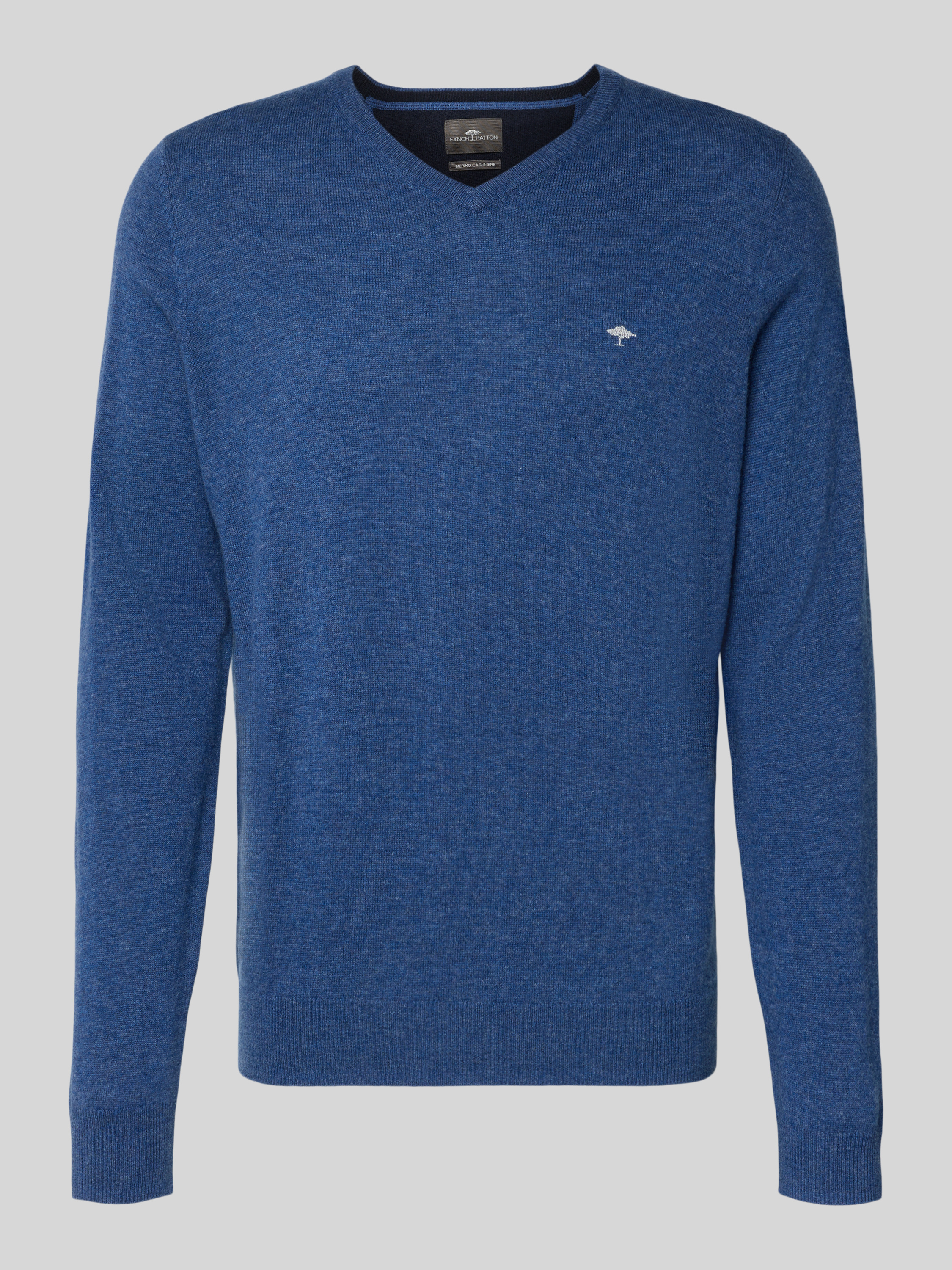 • Fynch-Hatton Sweter o kroju regular fit z dodatkiem kaszmiru model ‘Merino’ Jeansowy niebieski