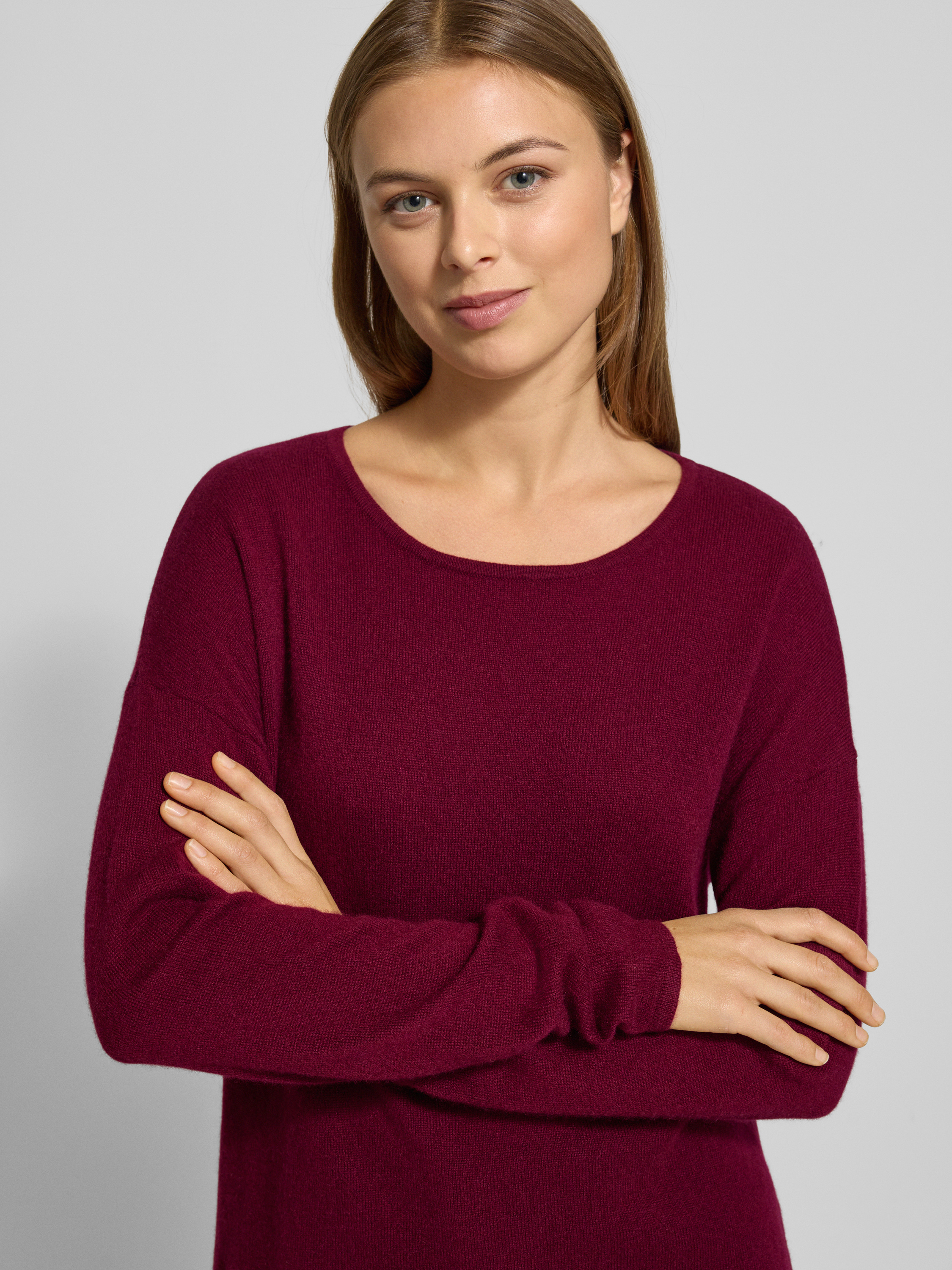 • Fynch-Hatton Sweter z dzianiny z czystego kaszmiru z okrągłym dekoltem Bordowy