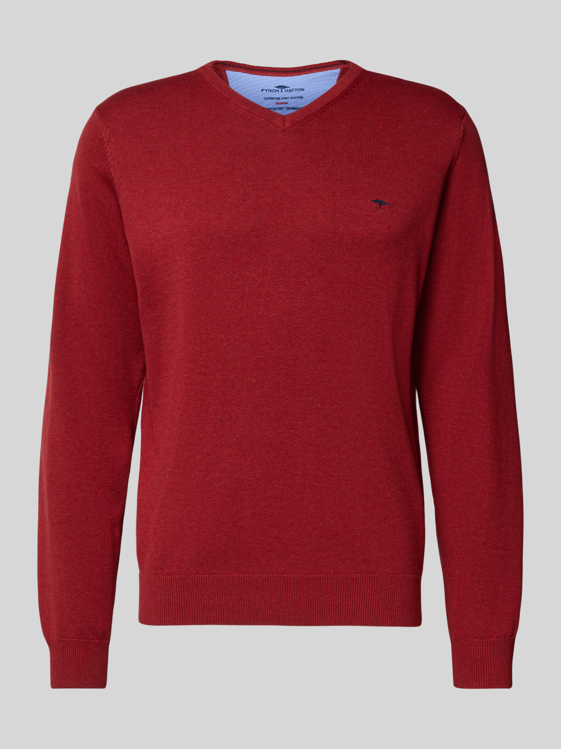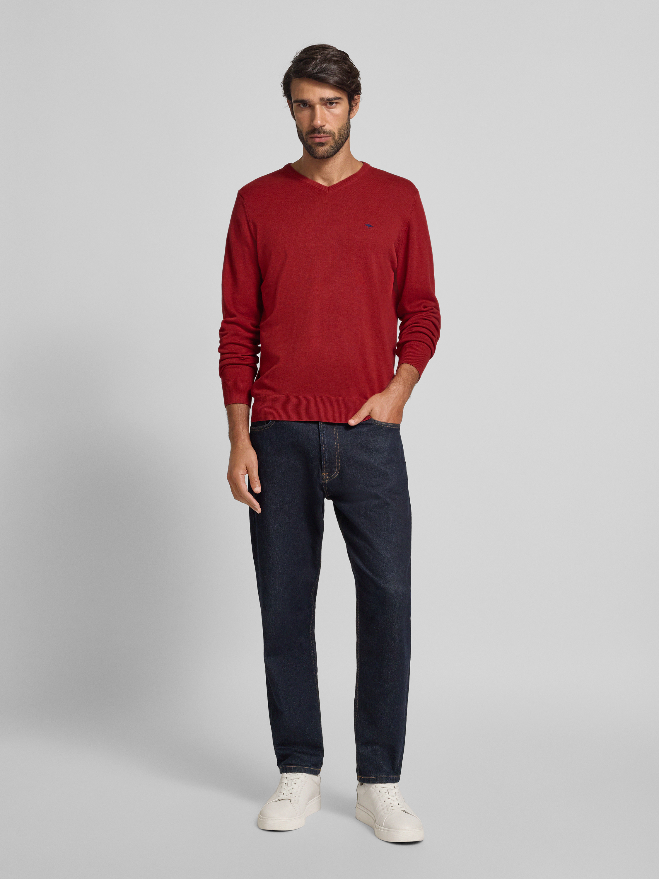 Sweter z dzianiny z detalem z logo - ciemnoczerwony