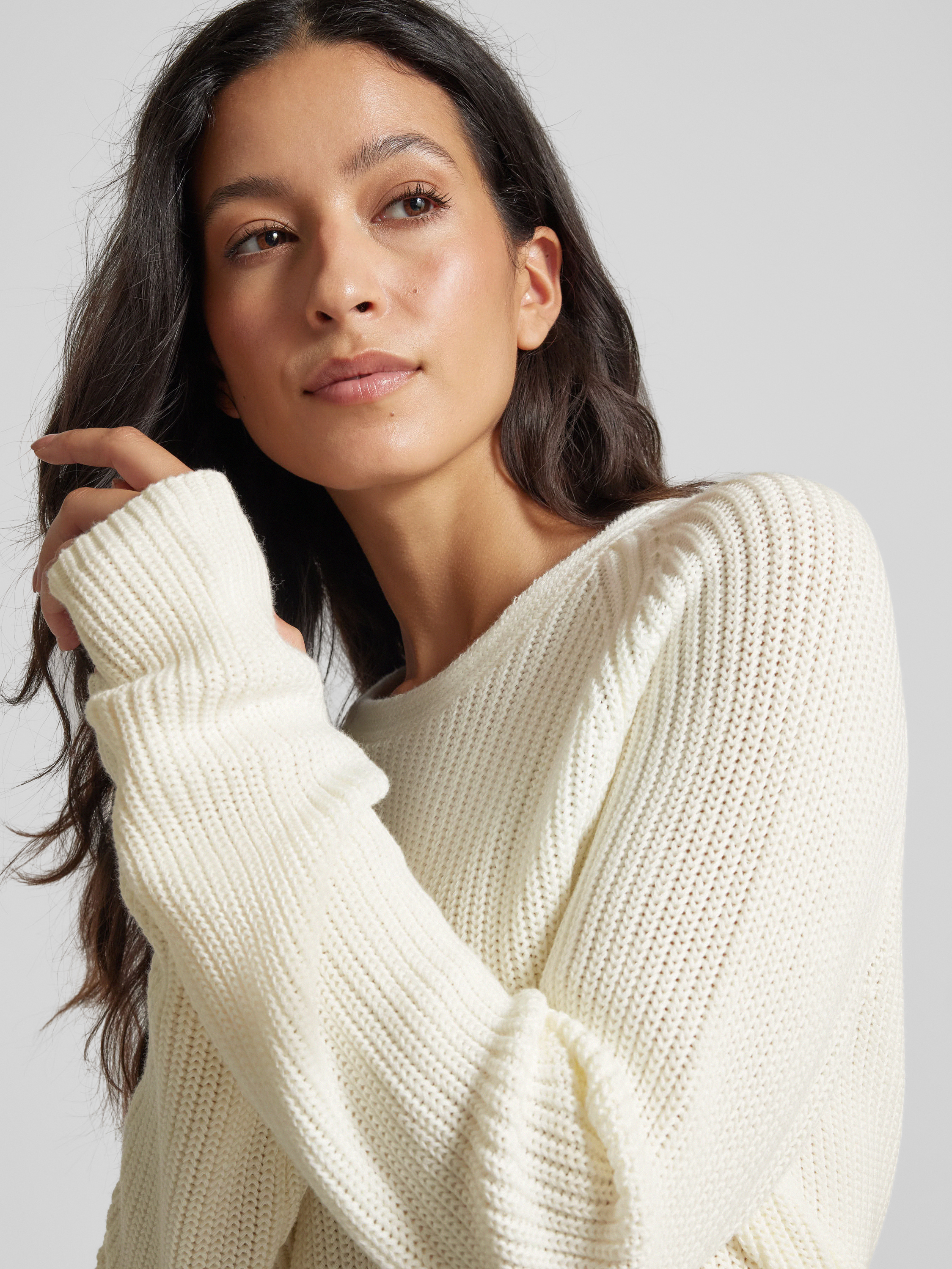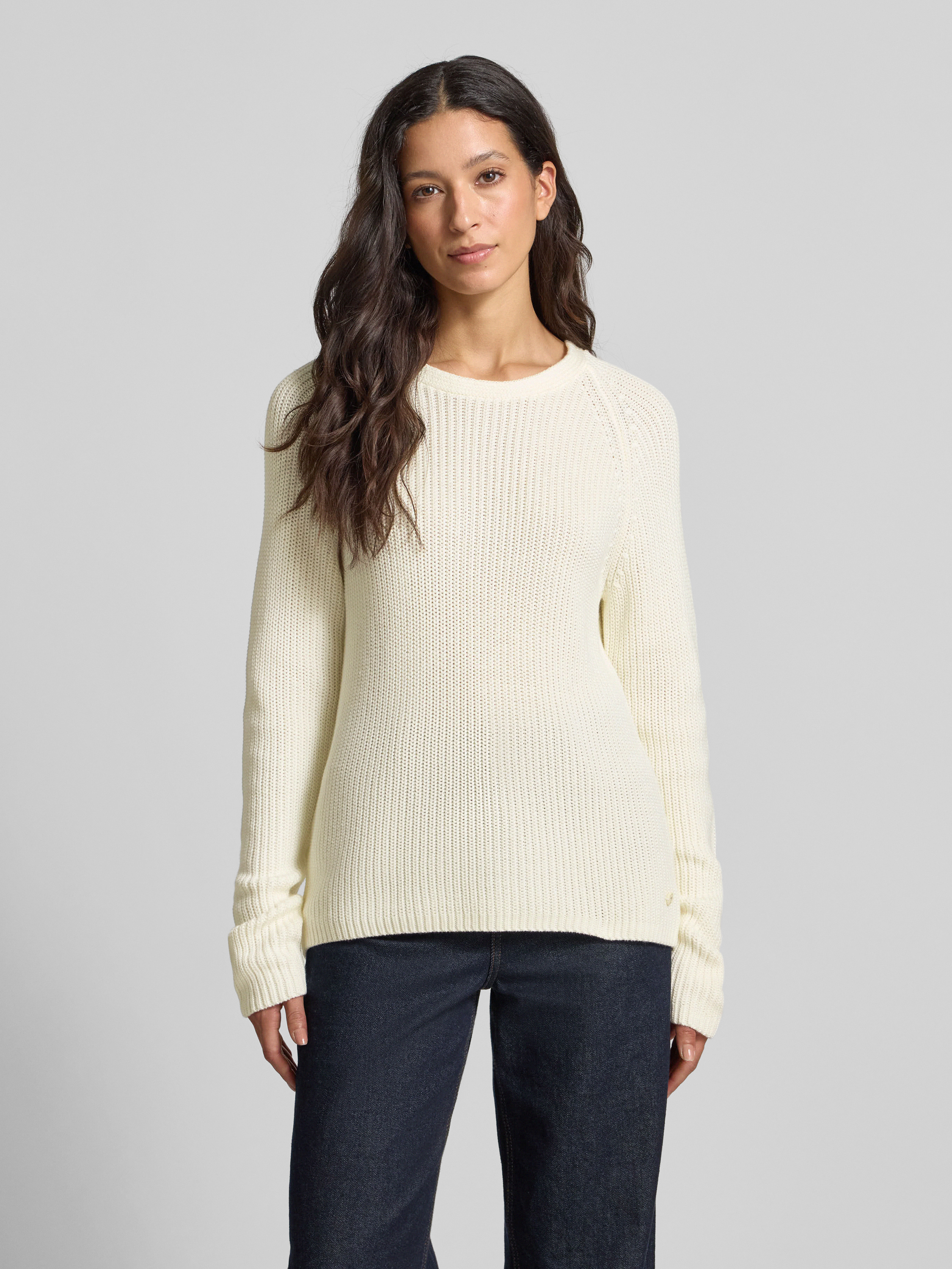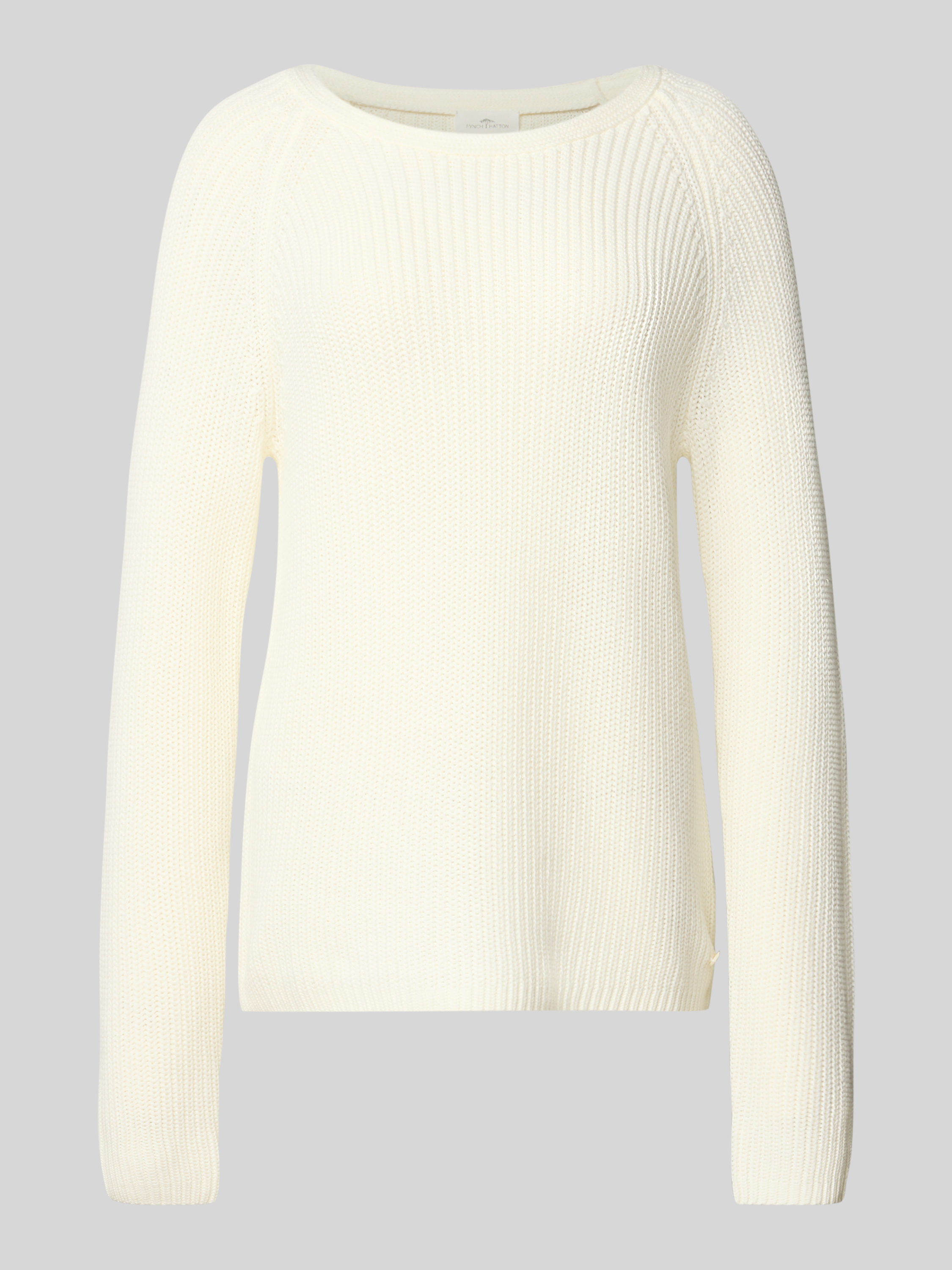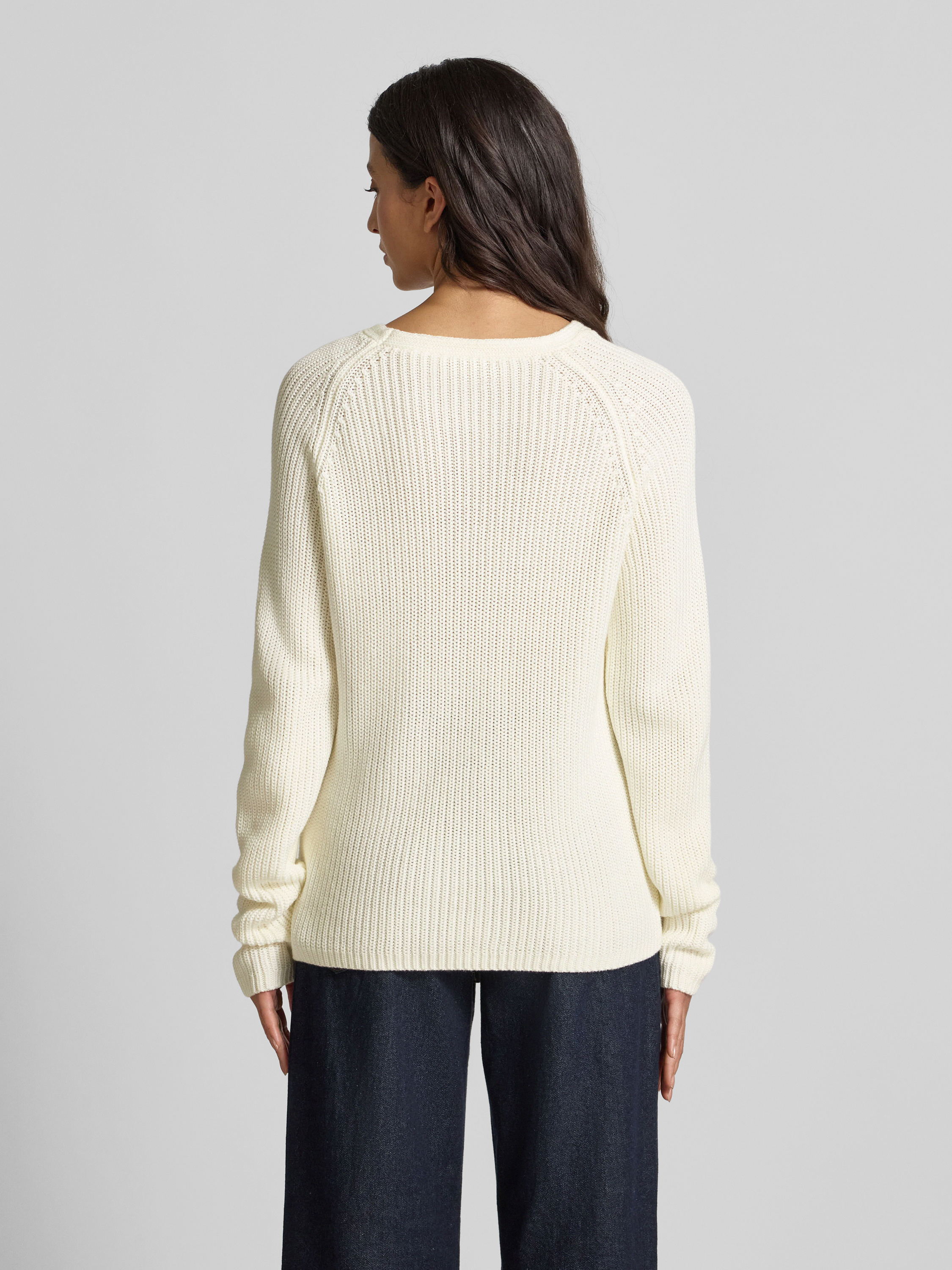 Sweter z dzianiny z prążkowanymi wykończeniami - złamany biały