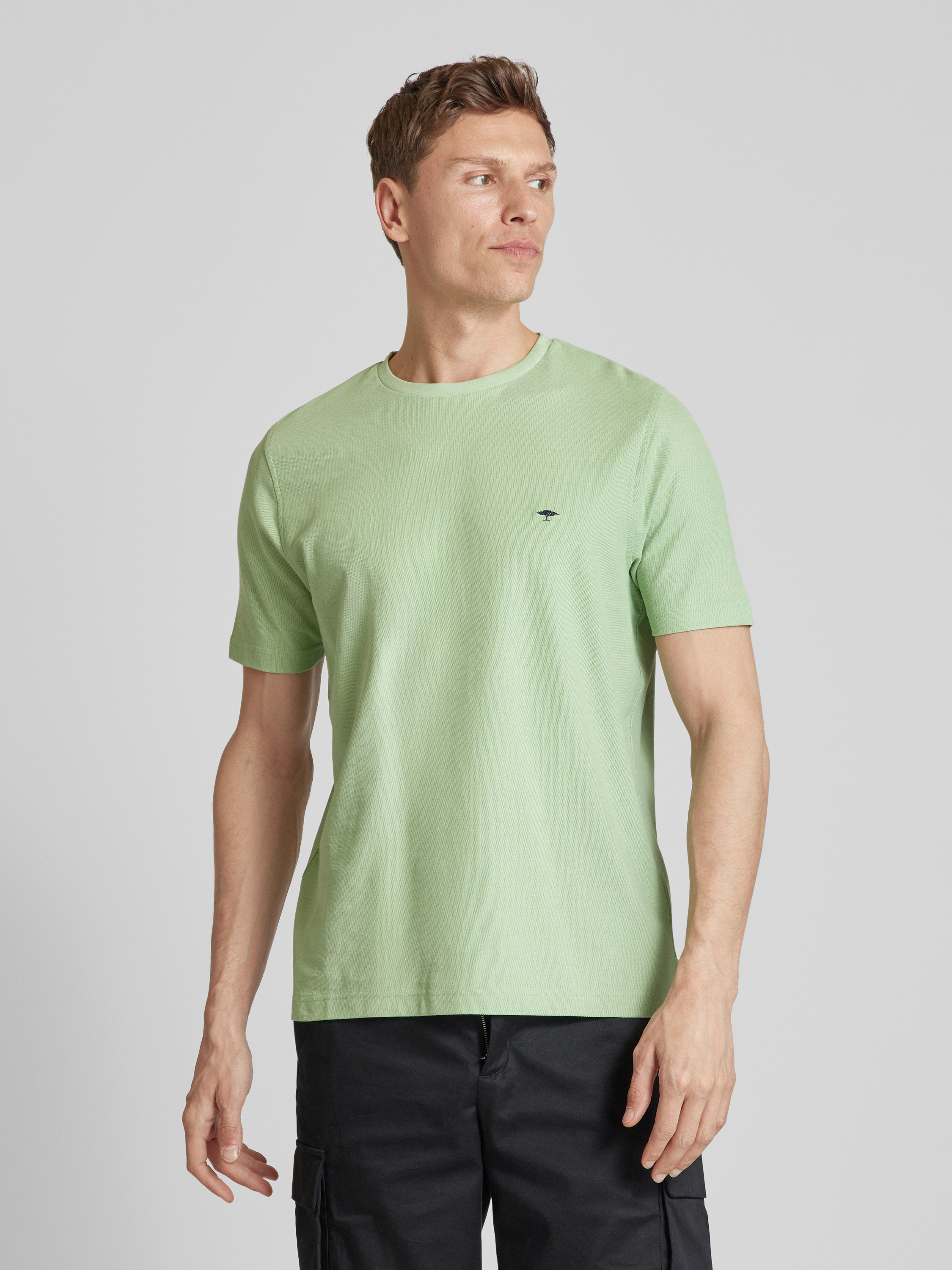 T-shirt z wyhaftowanym logo - jasnozielony melanż