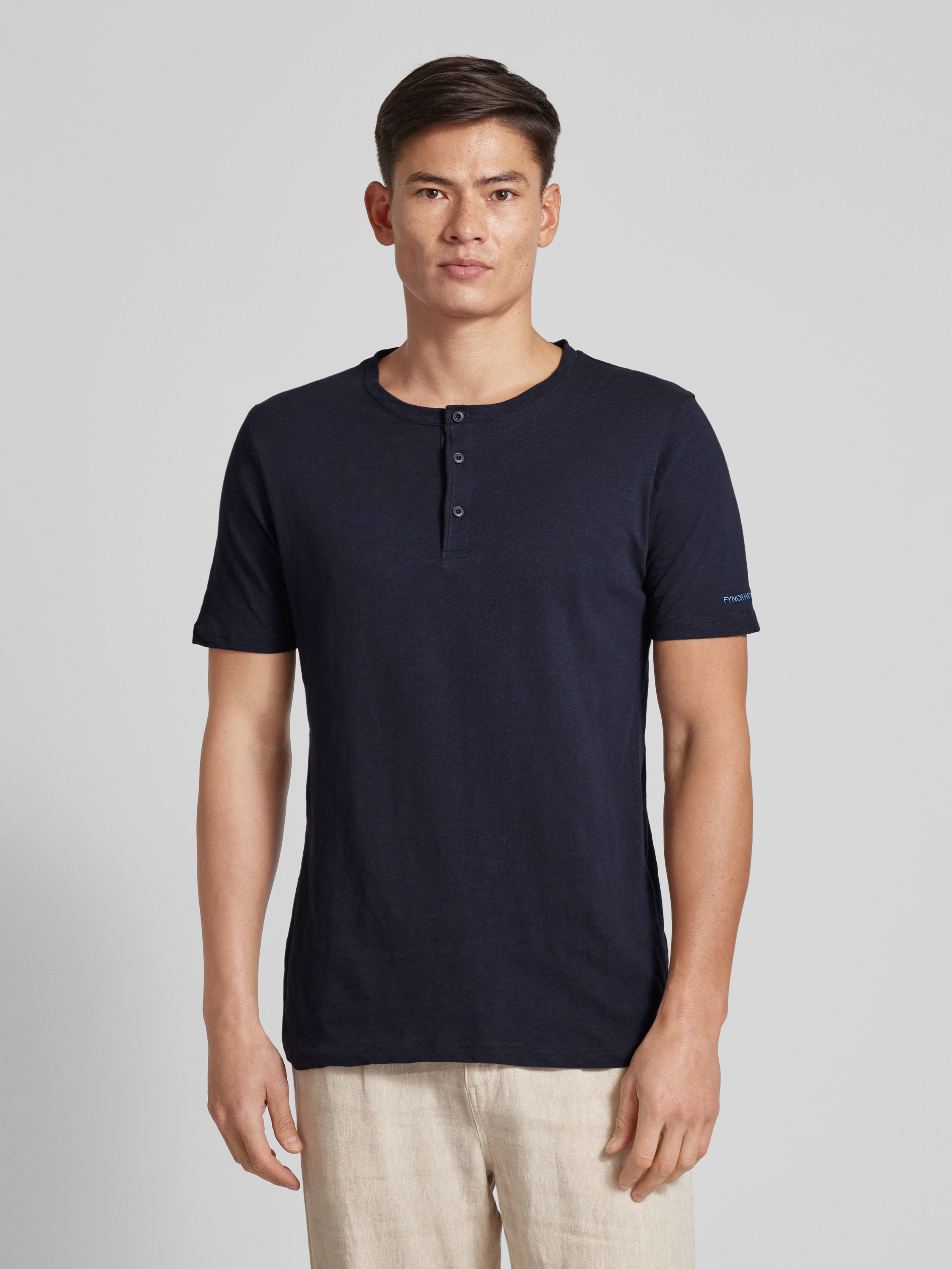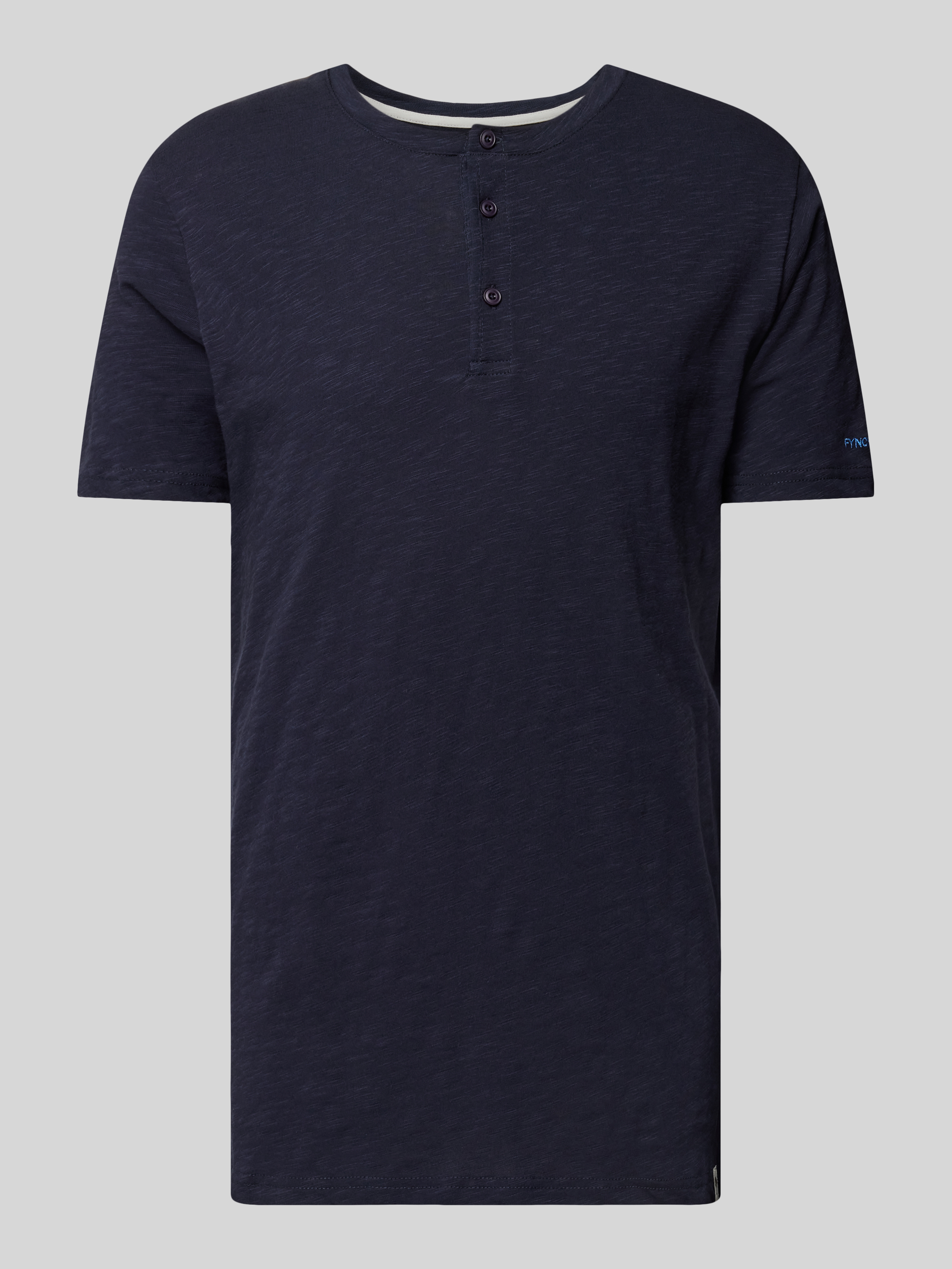 T-shirt z wyhaftowanym logo model ‘Henley’ - granatowy melanż
