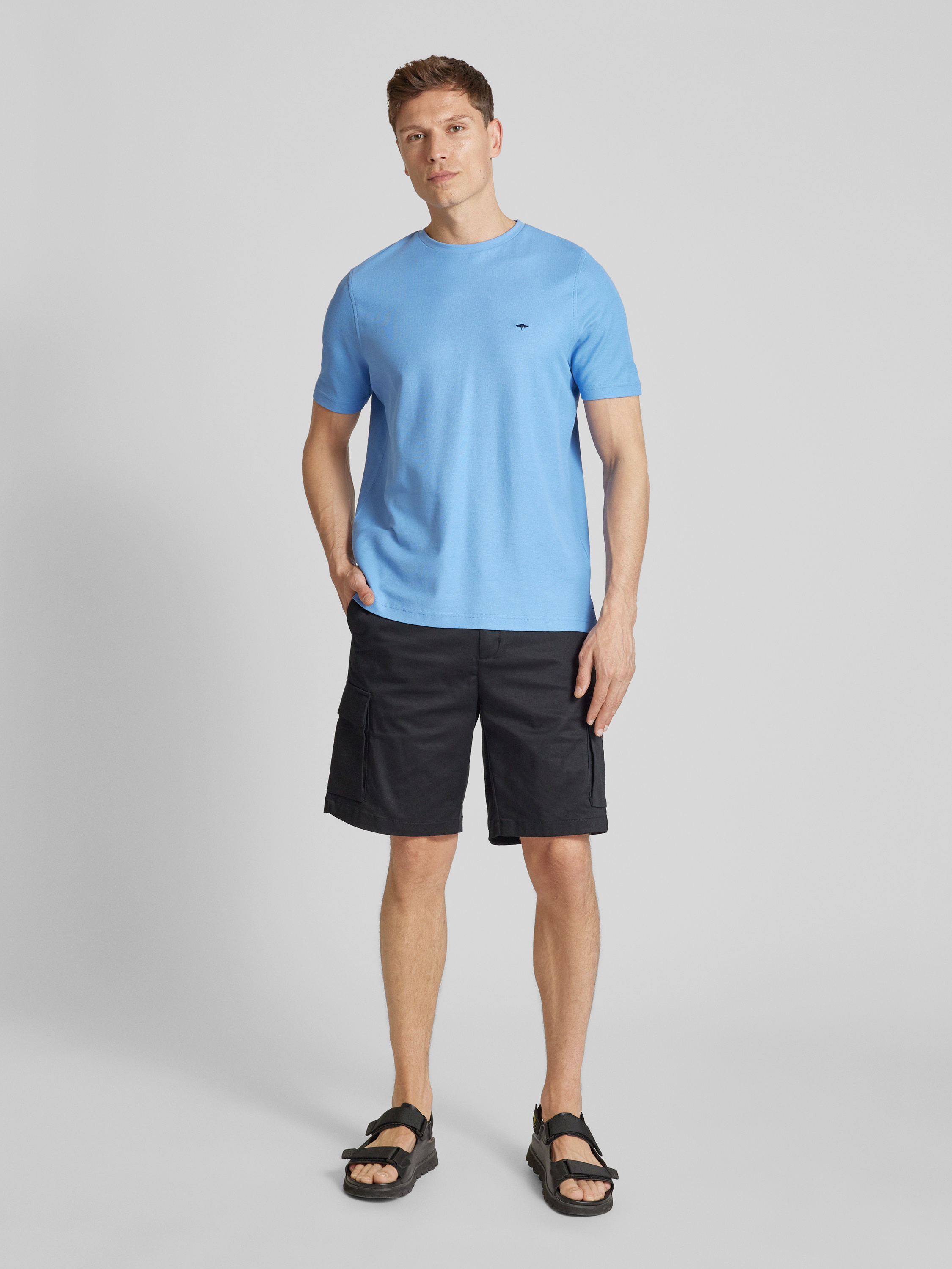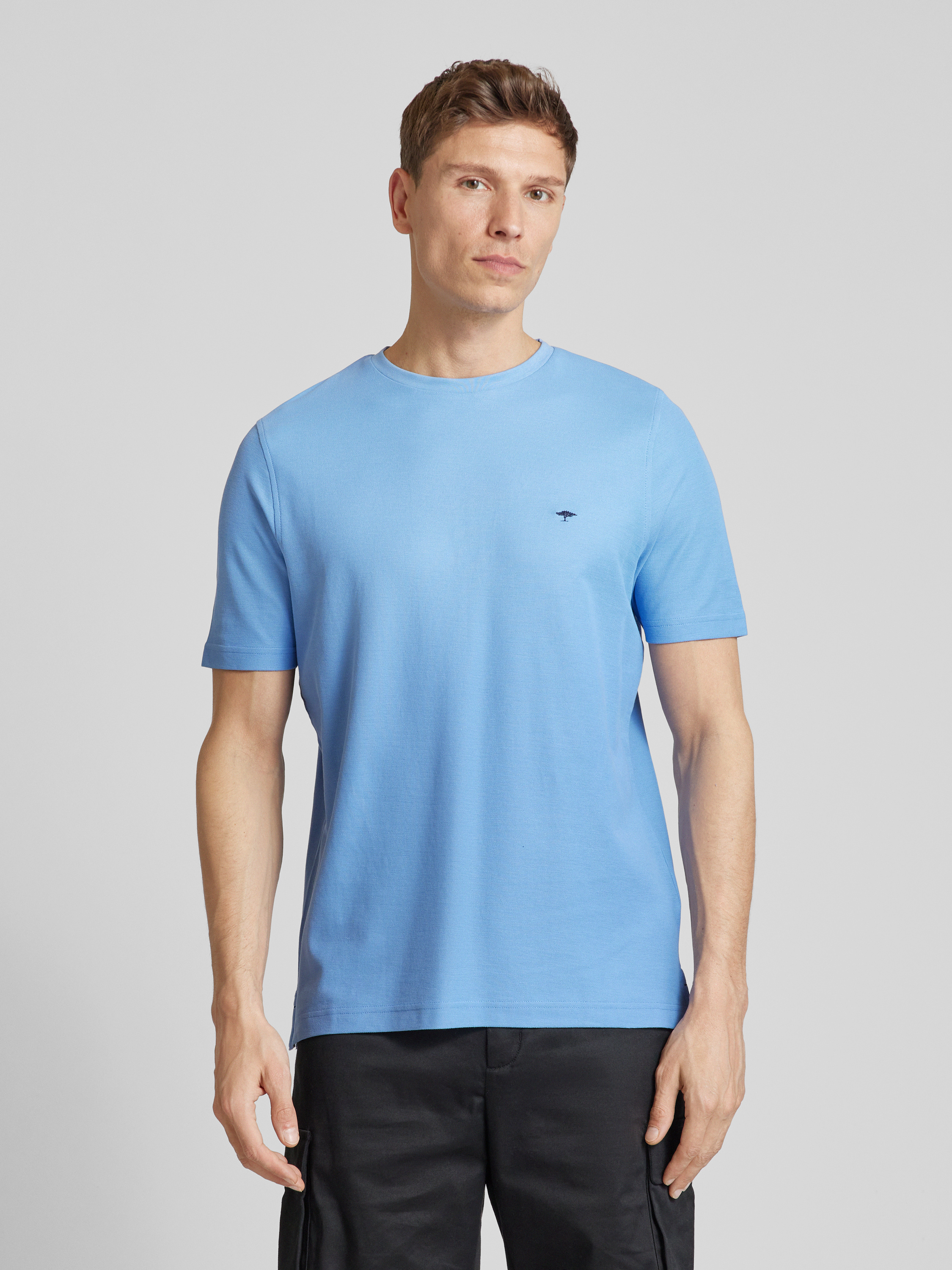 T-shirt z wyhaftowanym logo - szaroniebieski melanż