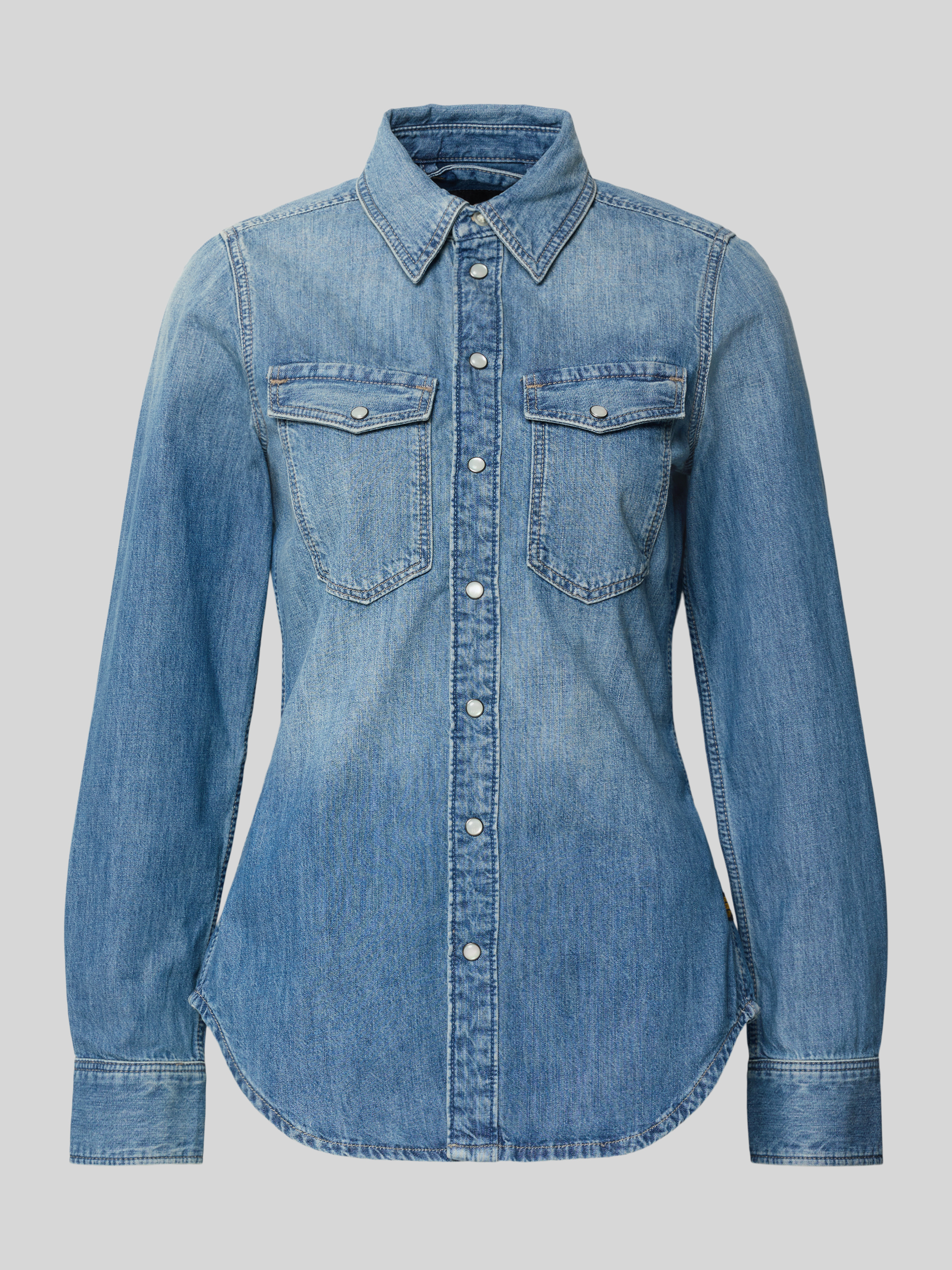 Bluzka jeansowa o kroju slim fit z kieszeniami na piersi - jasnoniebieski