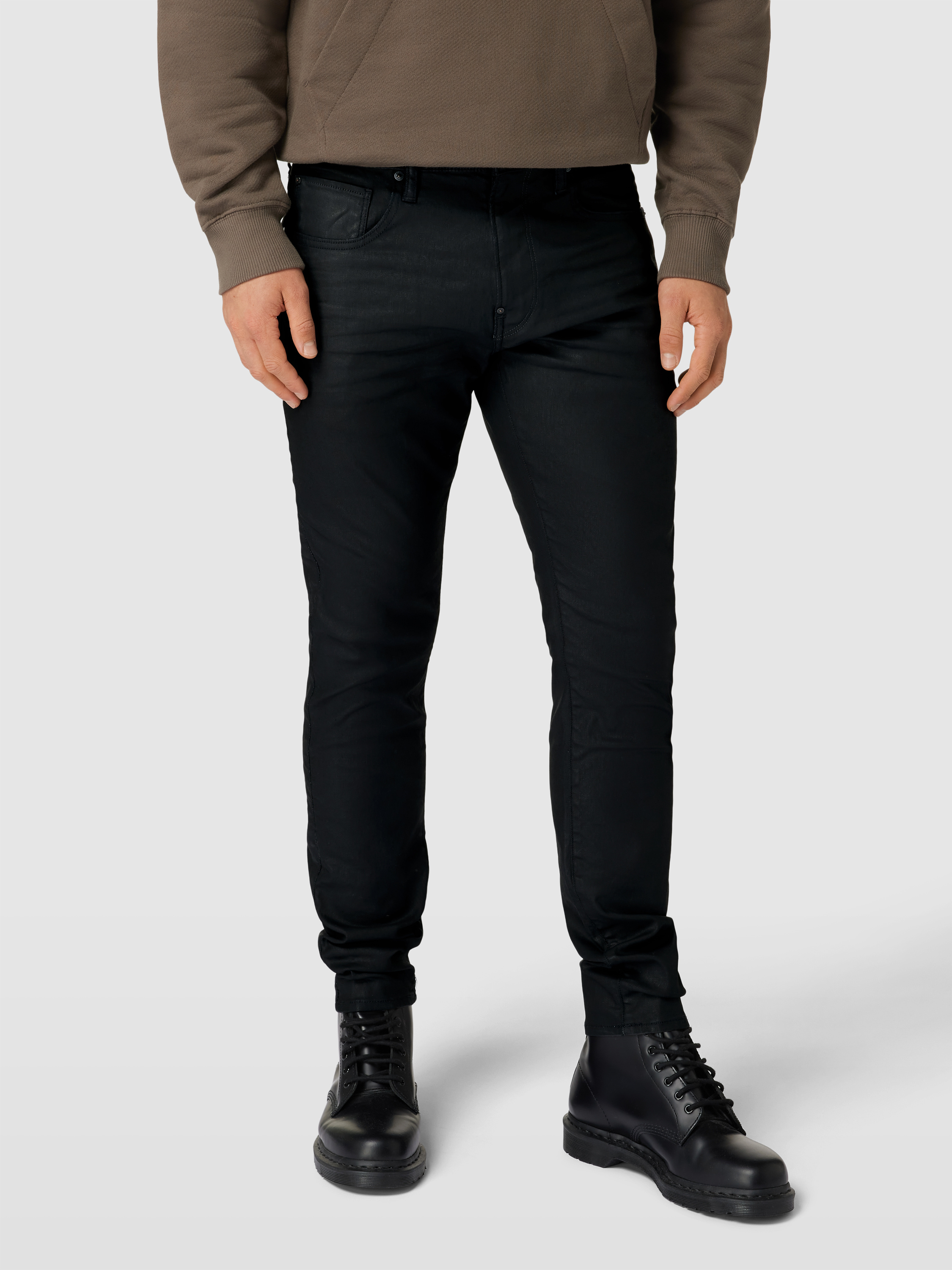 Jeansy z naszywką z logo ze skóry model ‘REVEND’ - czarny