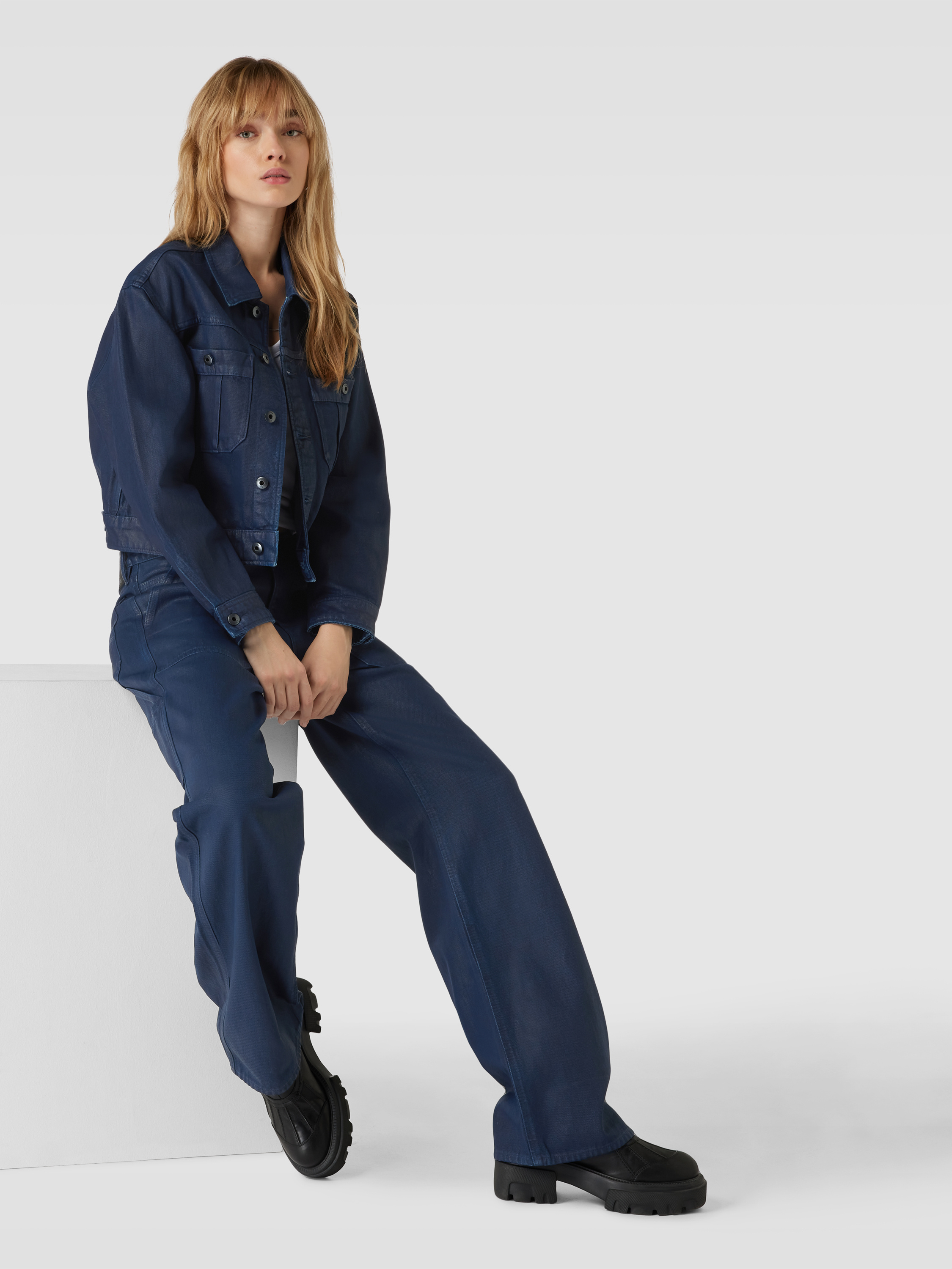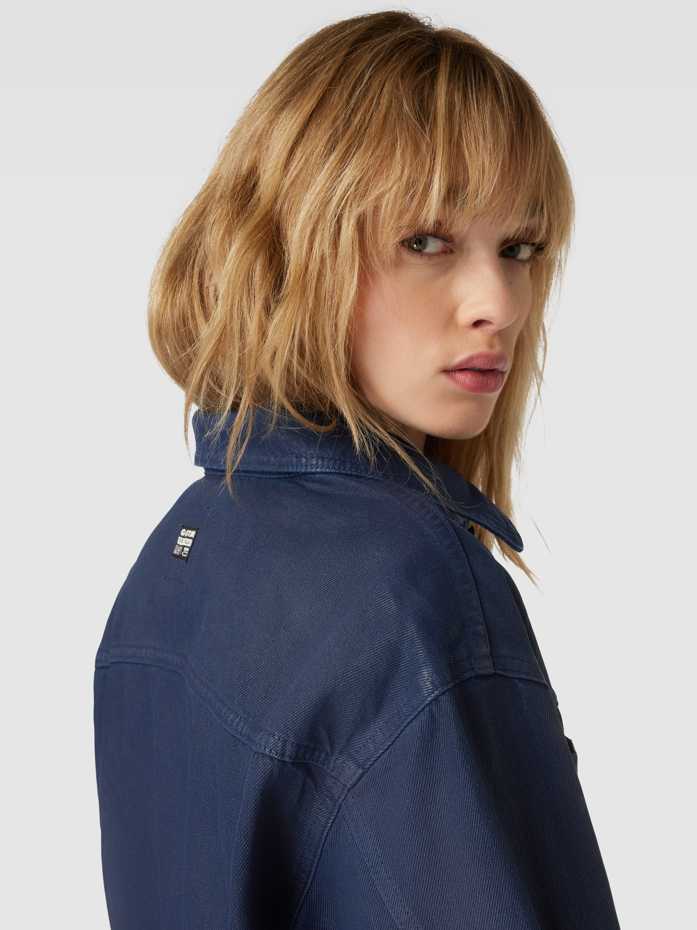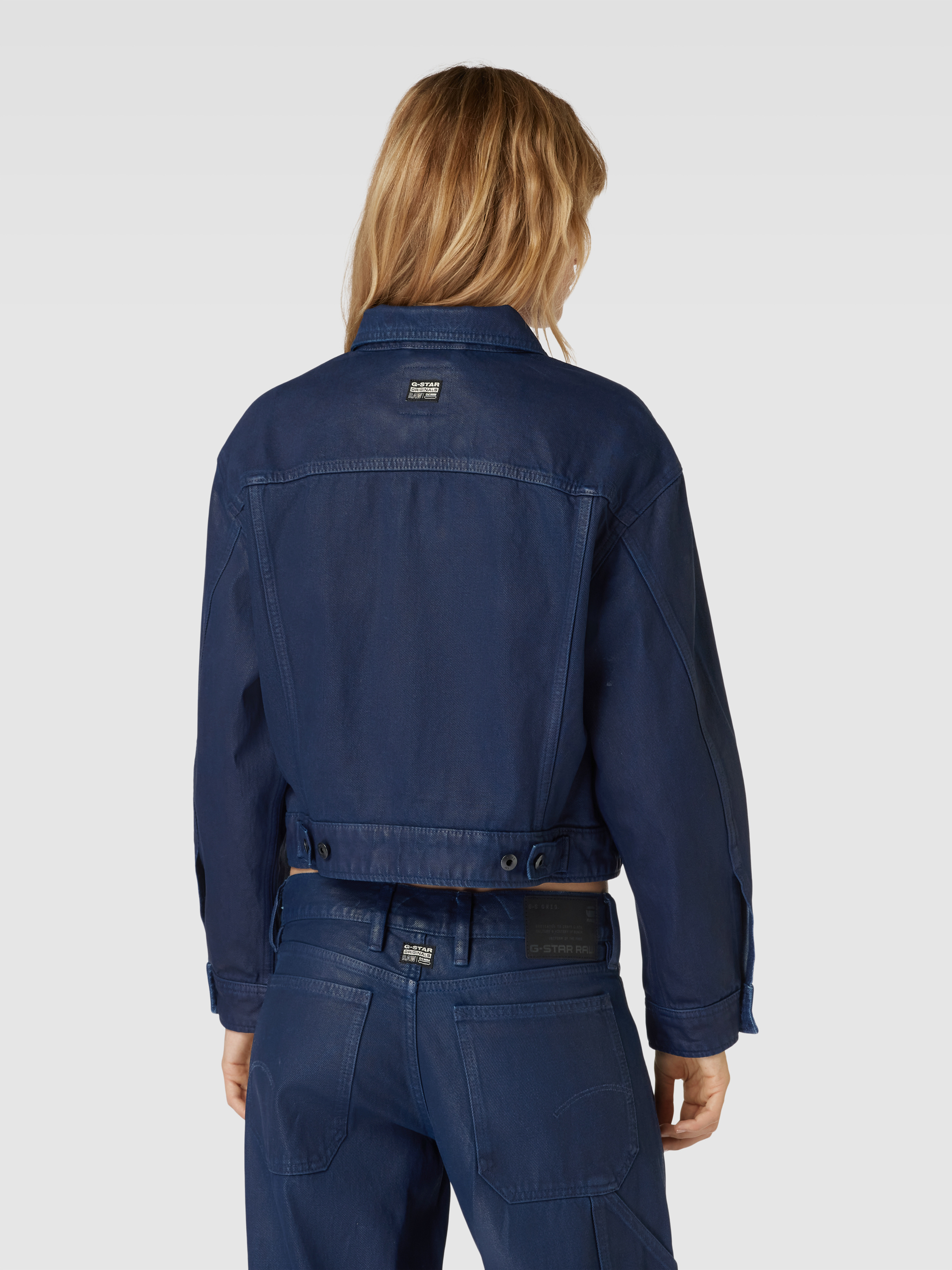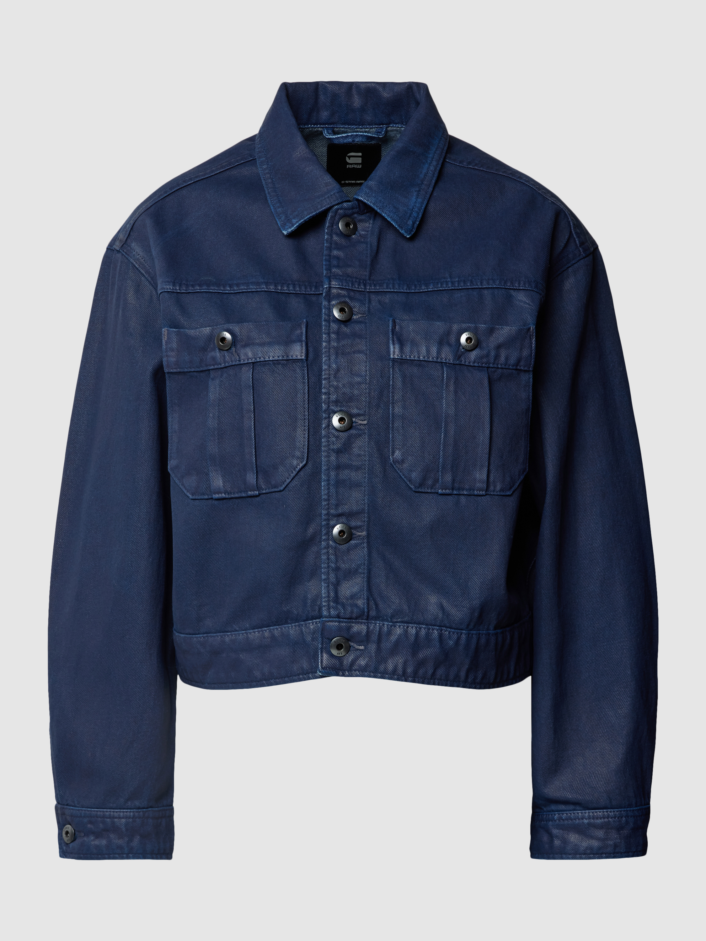 Kurtka jeansowa krótka z nakładanymi kieszeniami na piersi - jeansowy niebieski