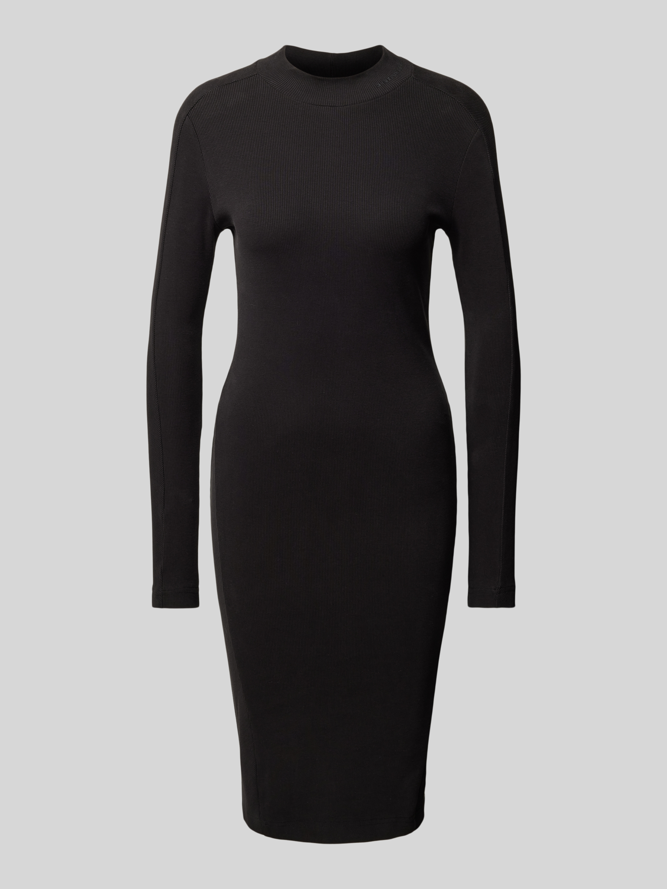Sukienka o długości do kolan z drobnym prążkowaniem - czarny