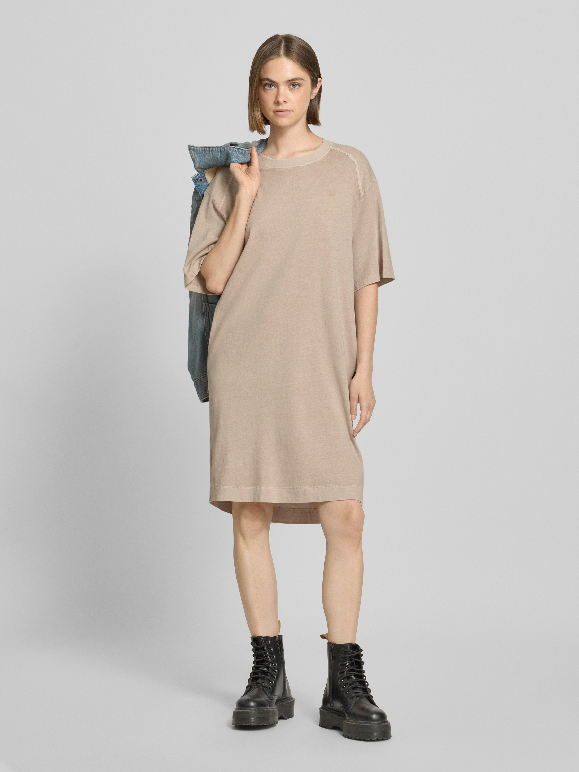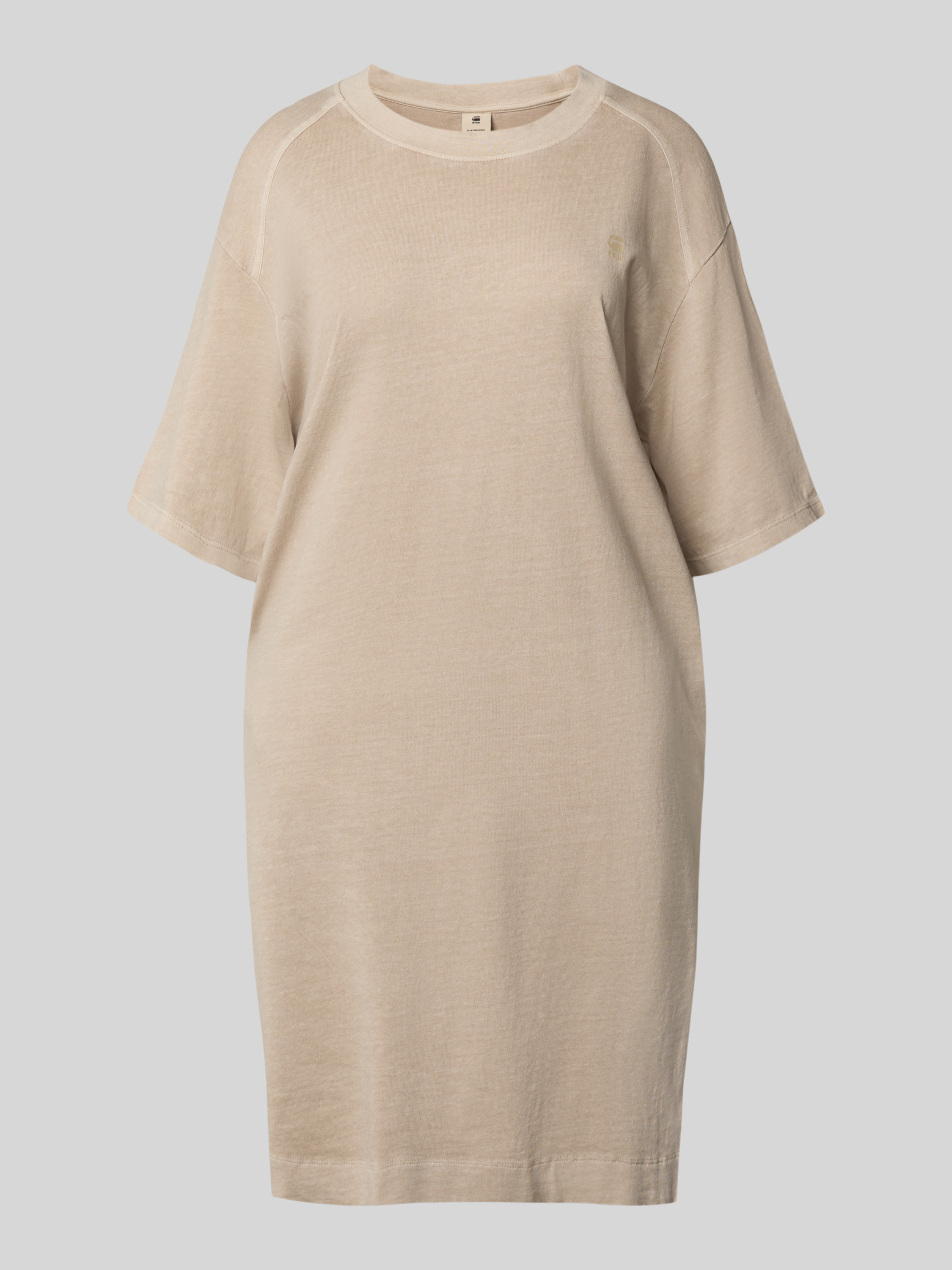 Sukienka T-shirtowa o długości do kolan z okrągłym dekoltem - beżowy