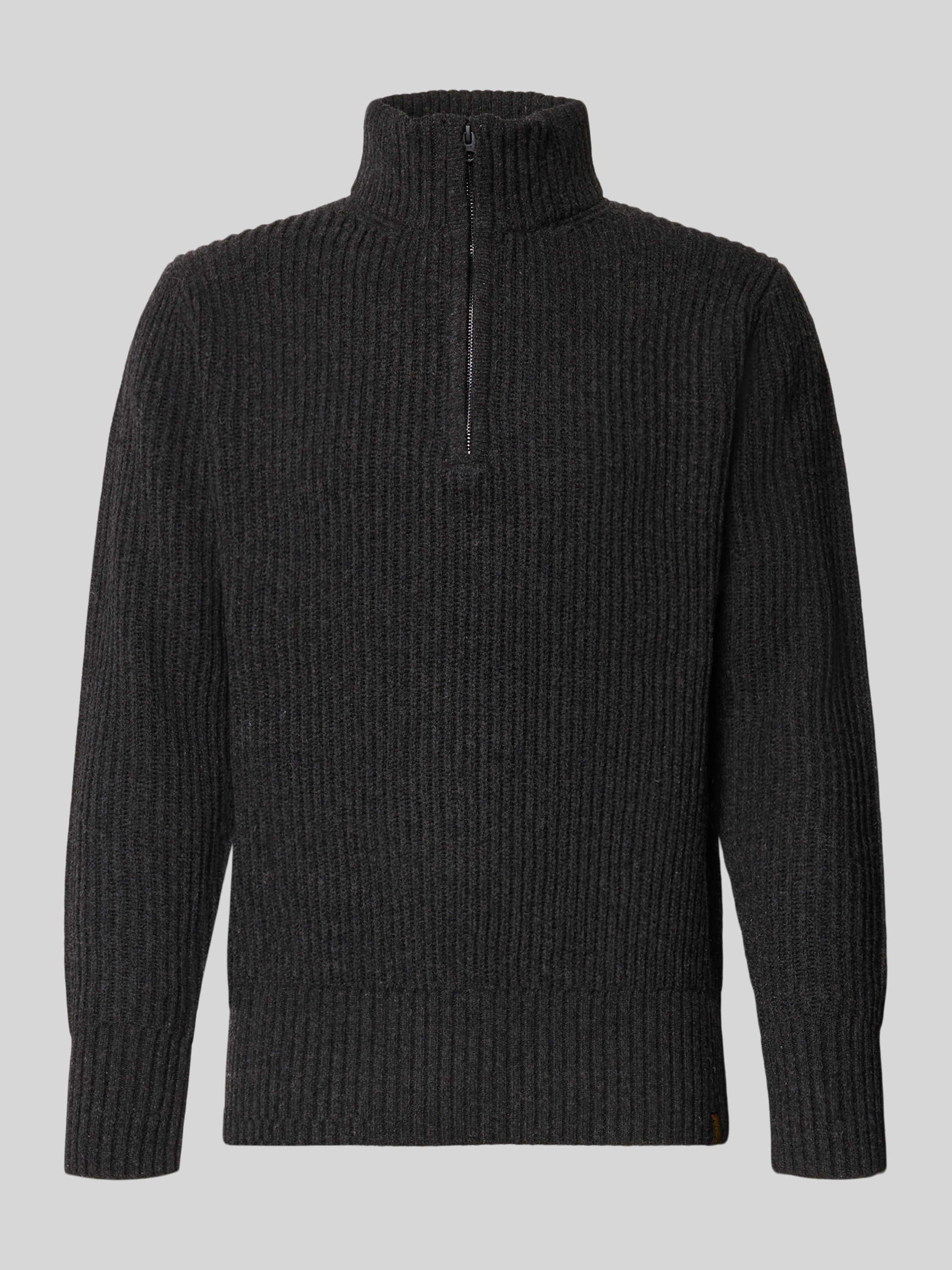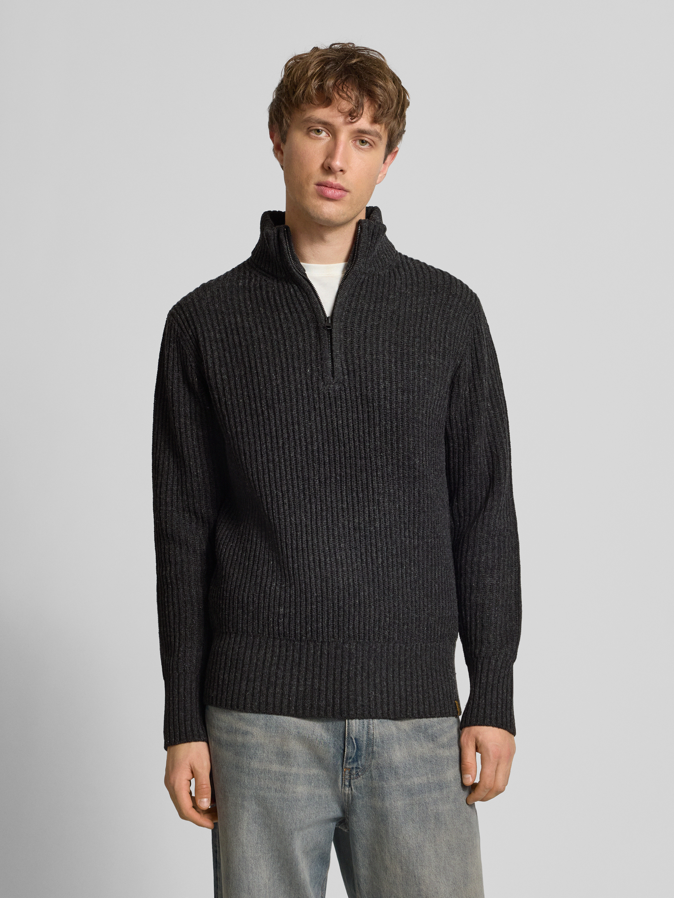 Sweter z dzianiny z mieszanki wełny lana ze stójką i zamkiem błyskawicznym - antracytowy
