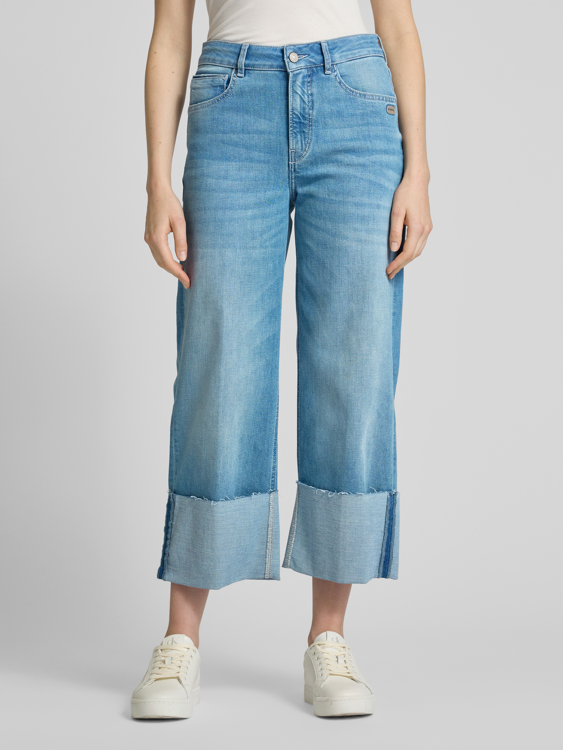 Jeansy o kroju wide fit ze skróconą nogawką model ‘JETTE CULOTTE’ - niebieski