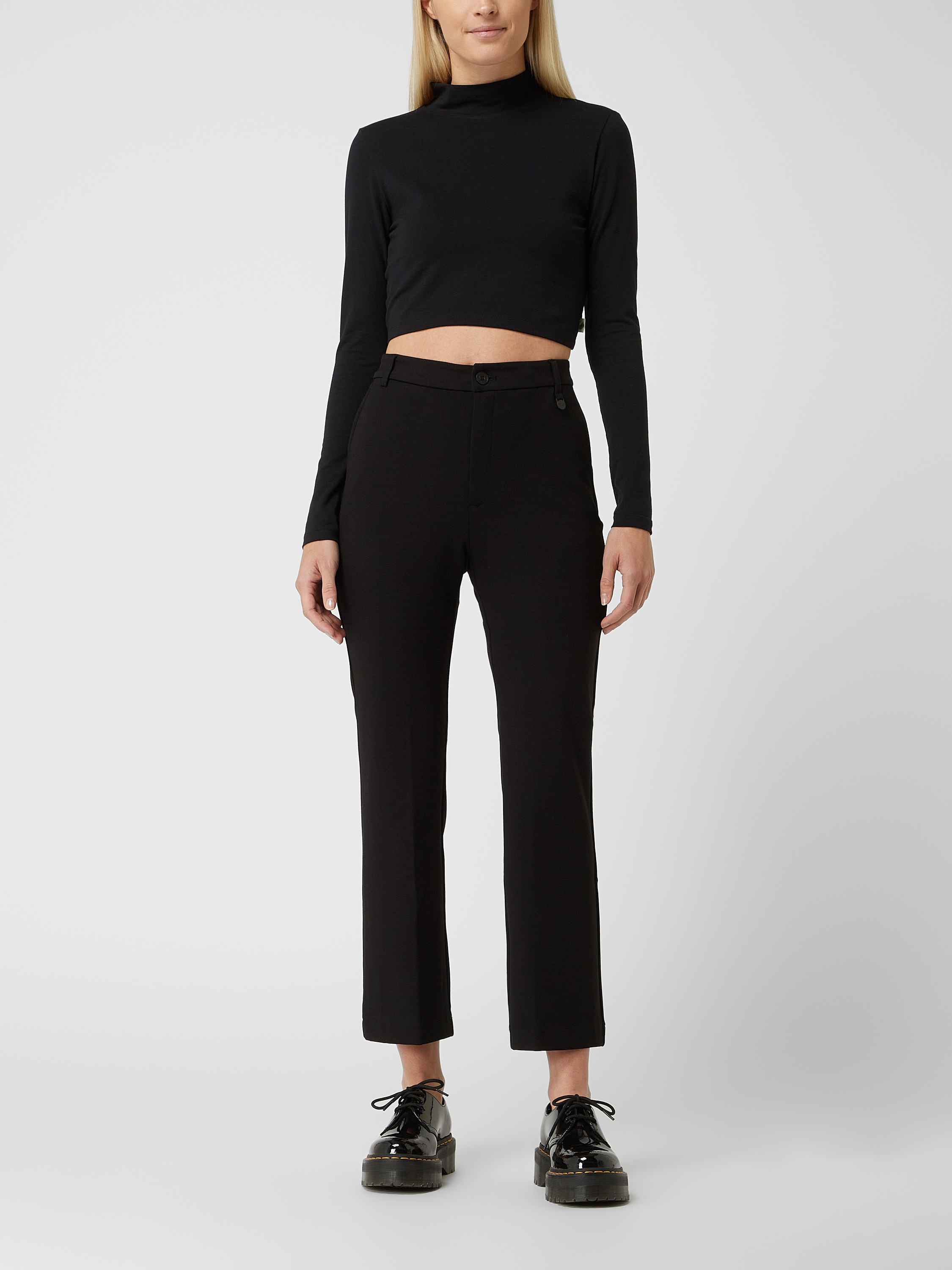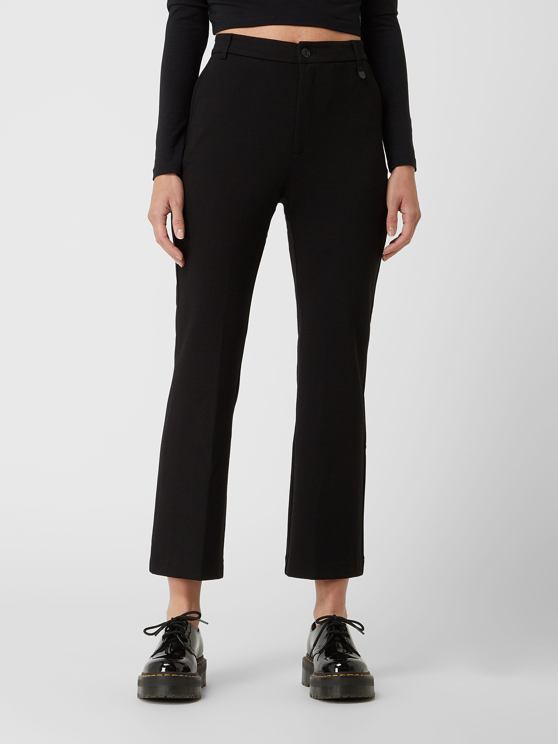 Spodnie materiałowe o rozkloszowanym kroju z dodatkiem streczu model ‘Cinzia’ - czarny