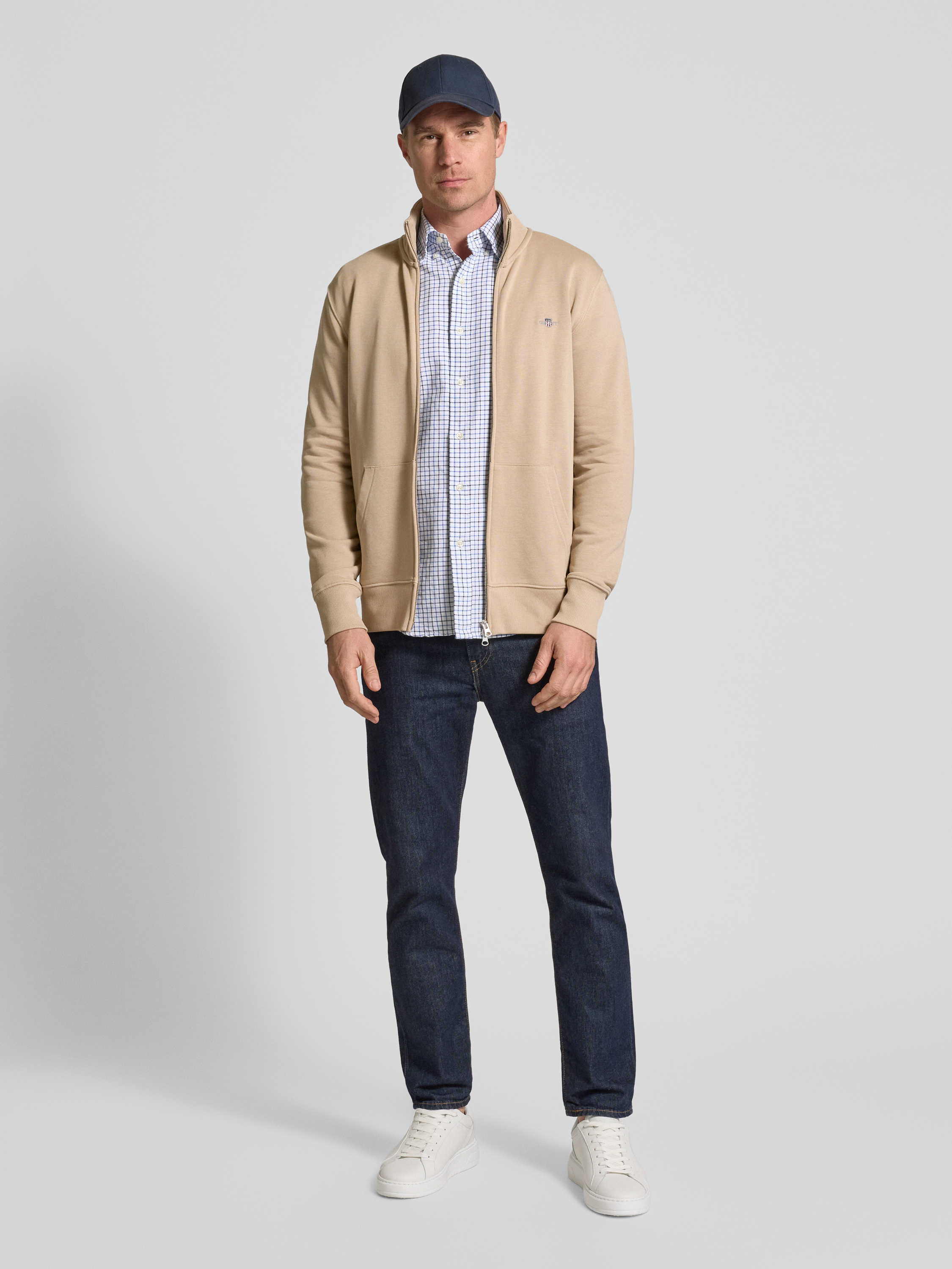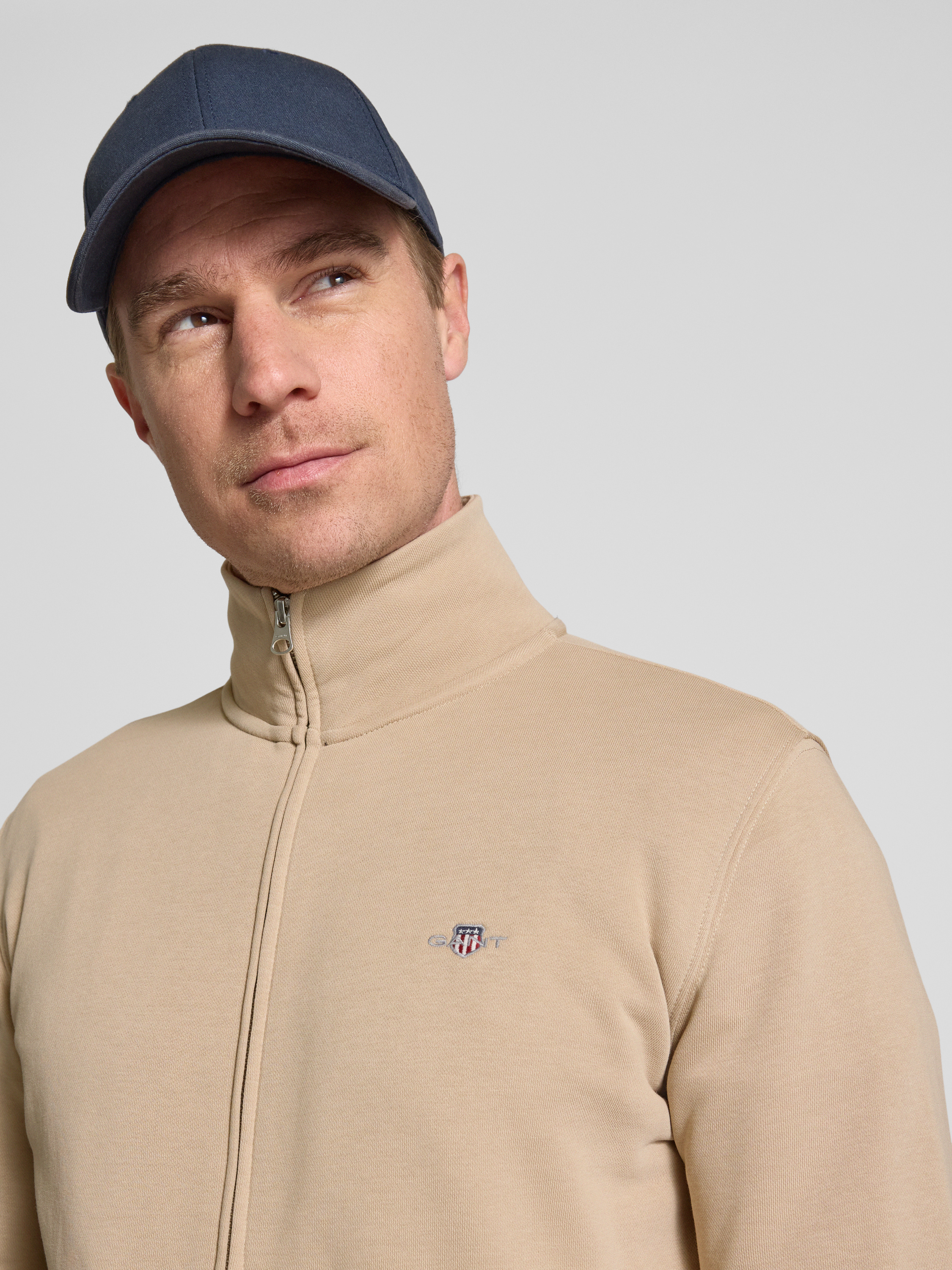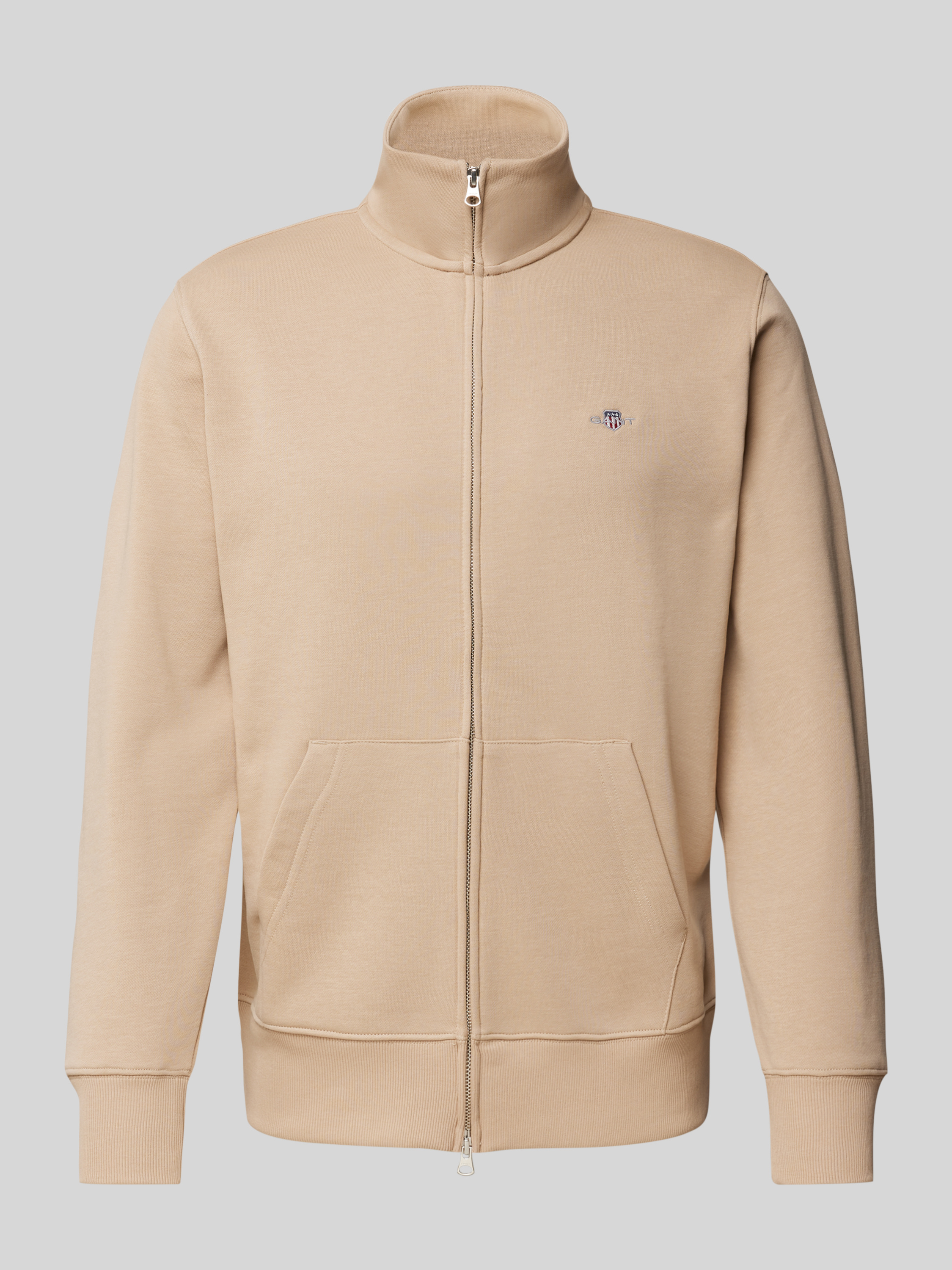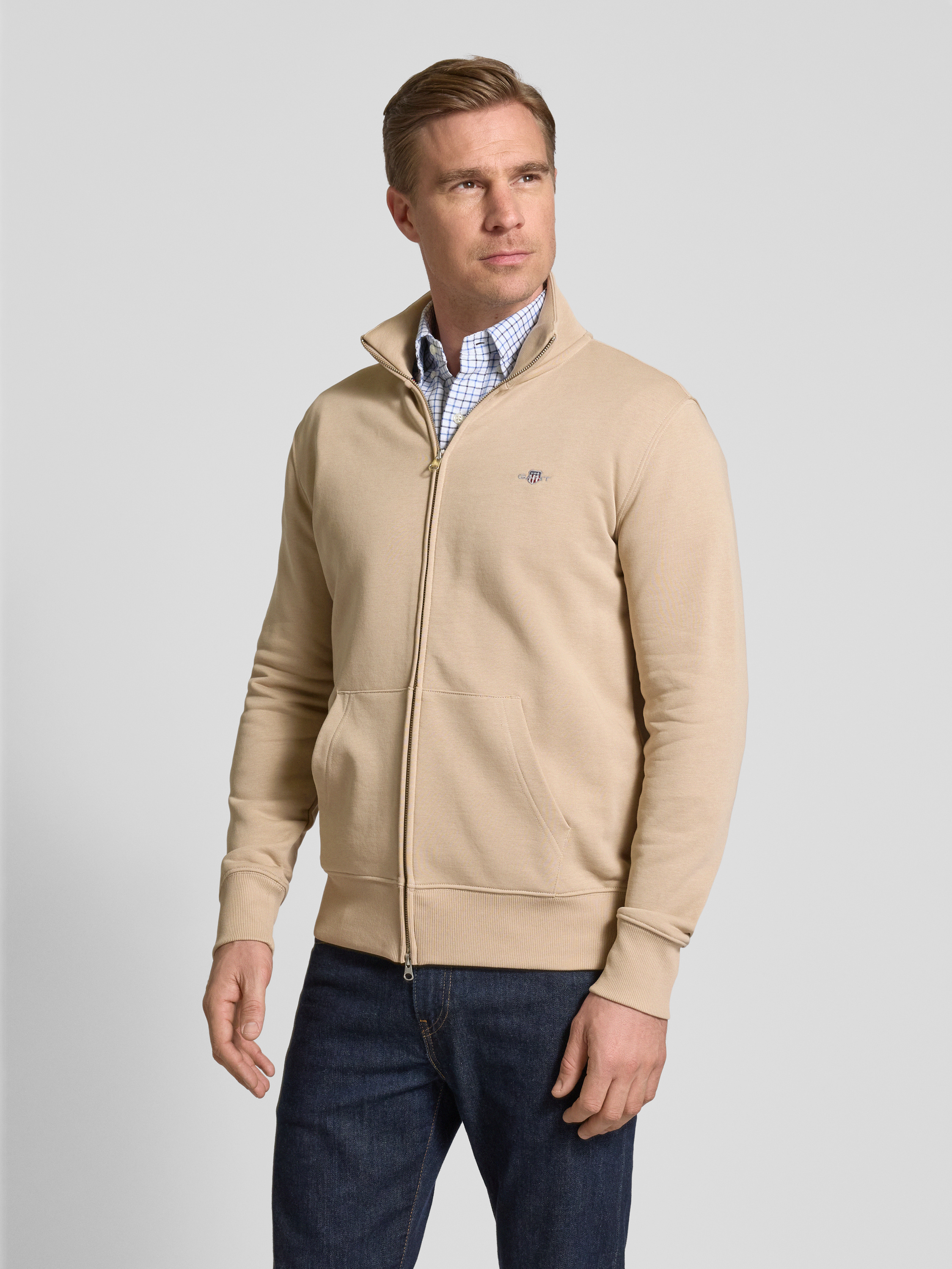 Bluza rozpinana o kroju regular fit z wyhaftowanym logo - beżowy