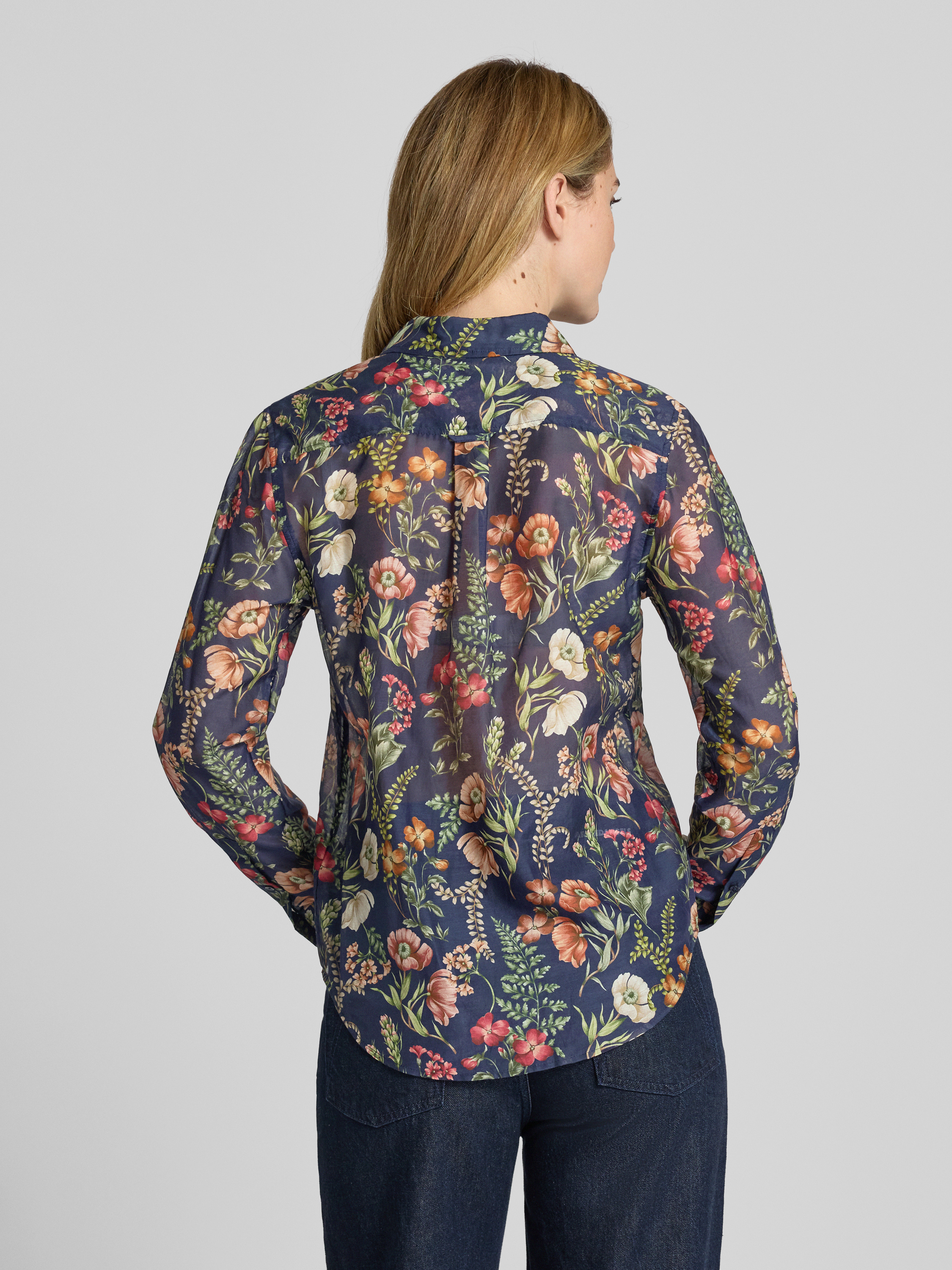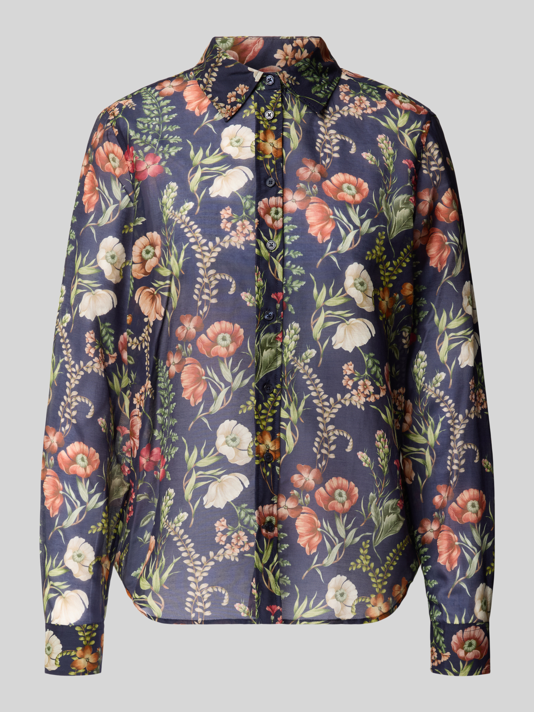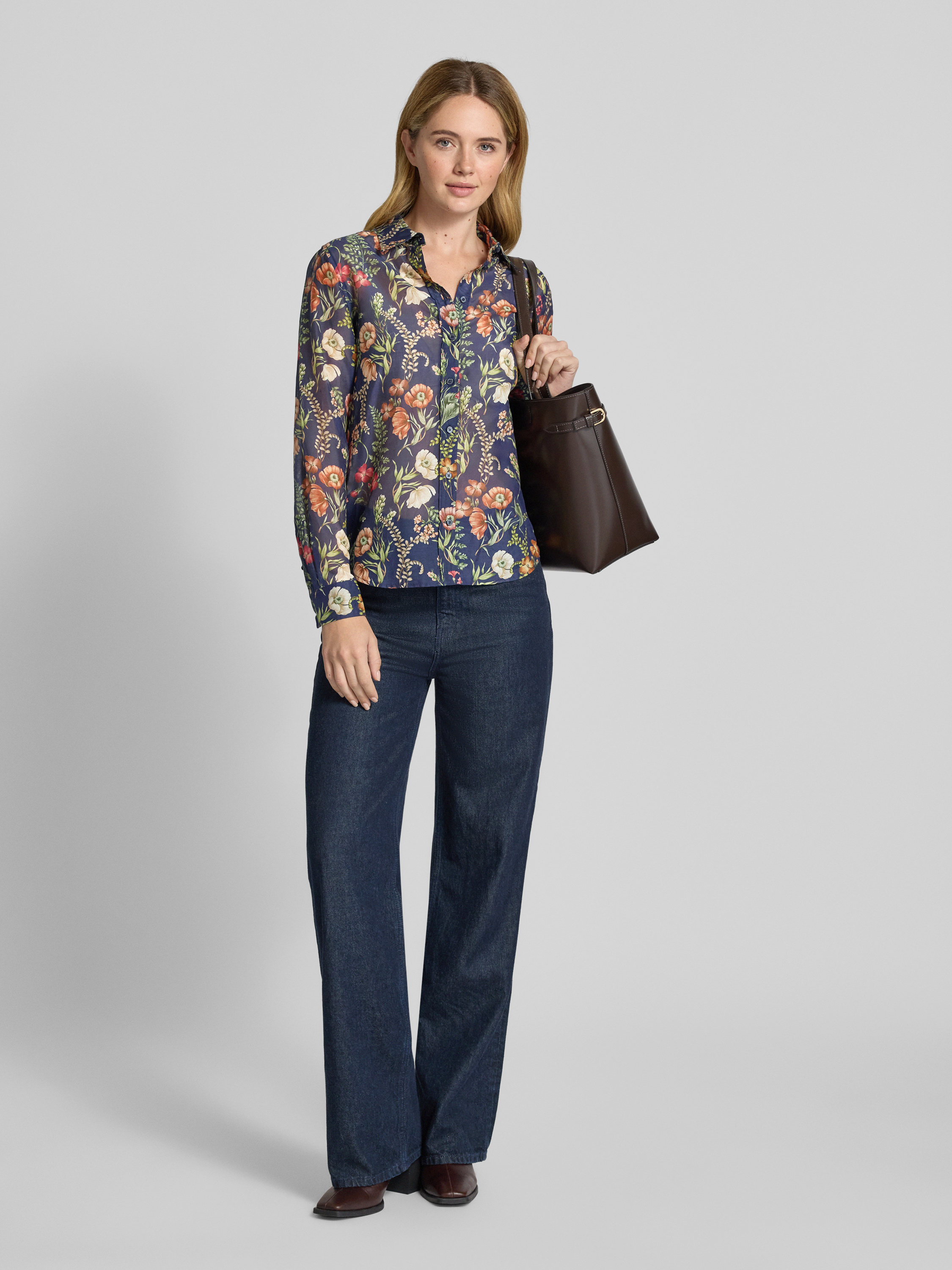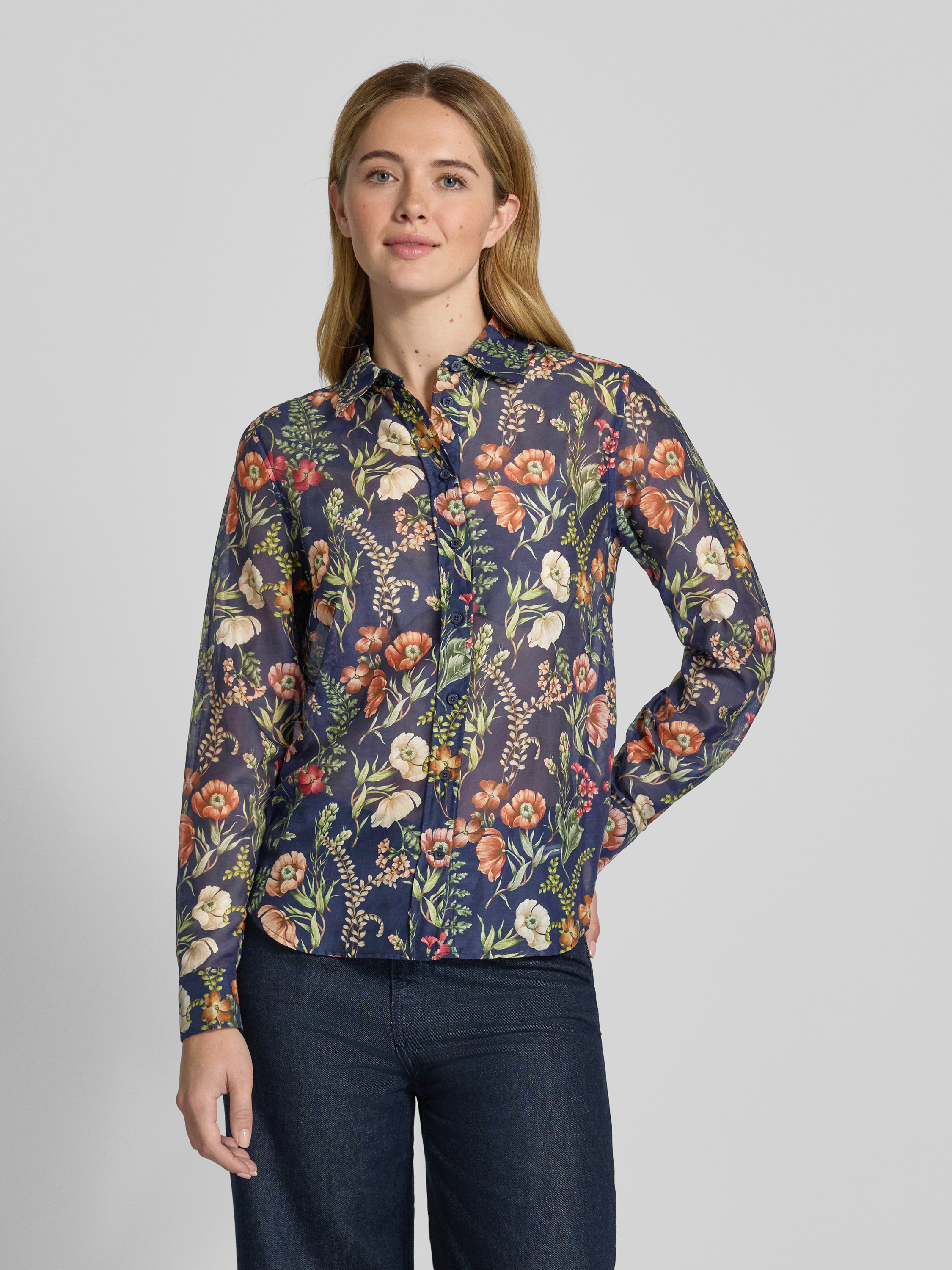 Bluzka koszulowa o kroju regular fit z dodatkiem jedwabiu model ‘Floral’ - granatowy