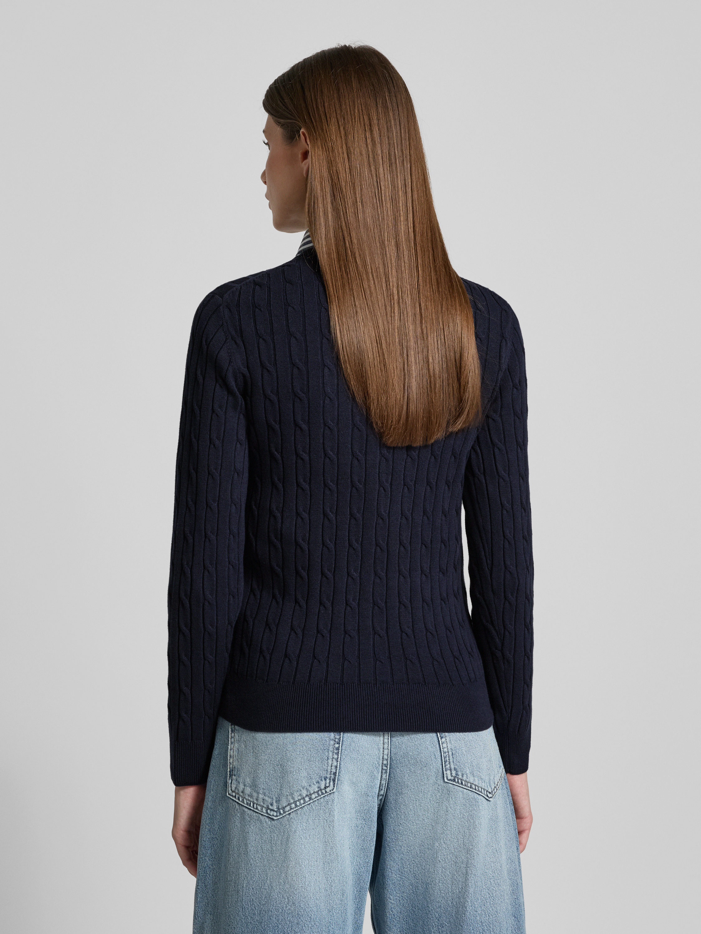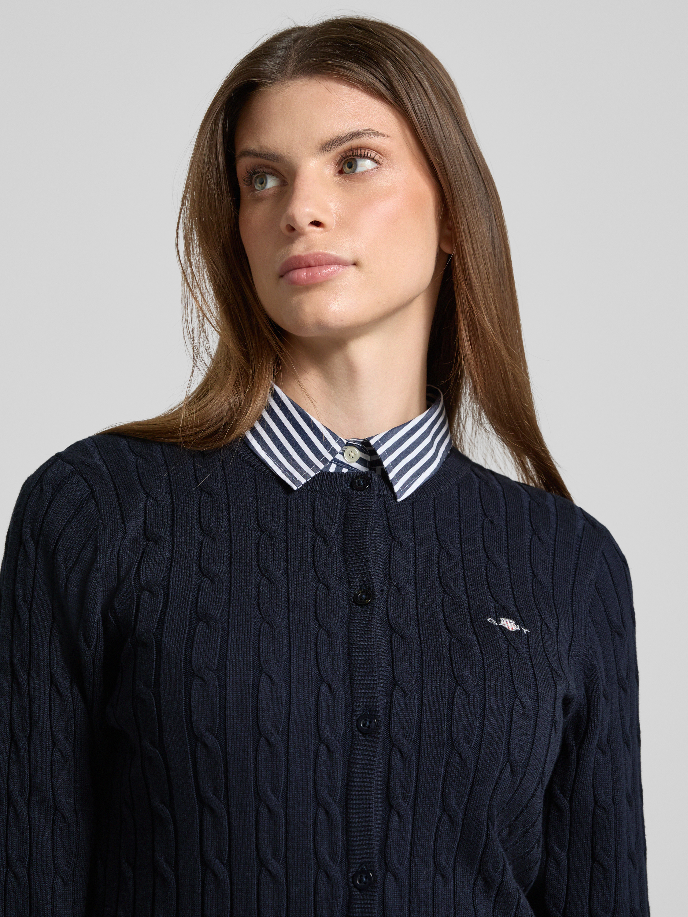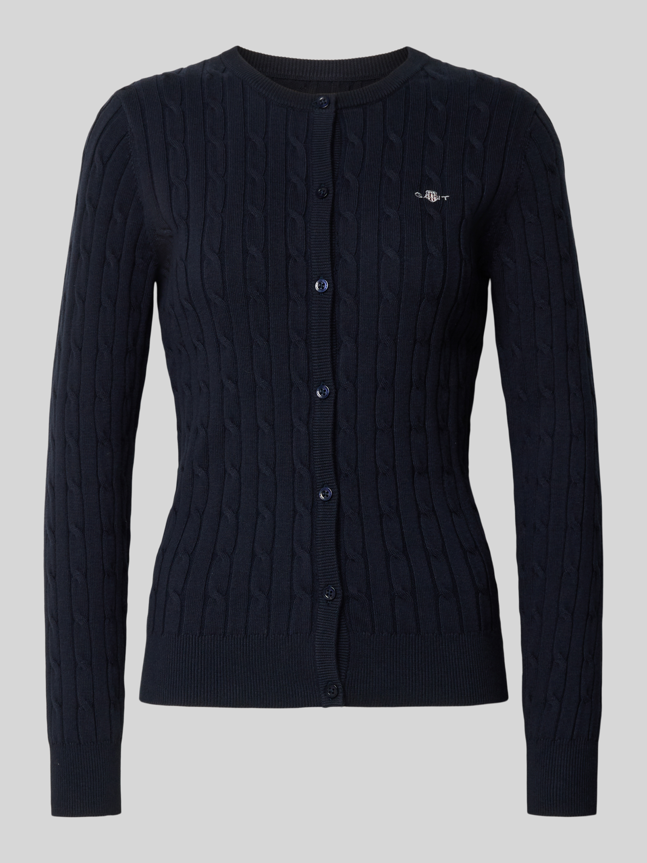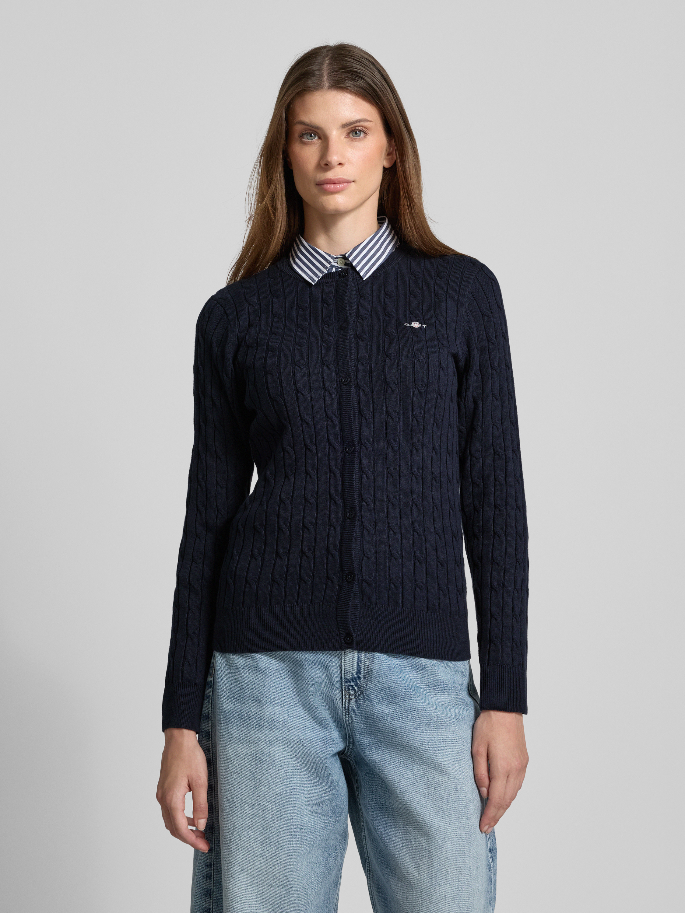 Kardigan ze ściegiem warkoczowym i wyhaftowanym logo - ciemnoniebieski