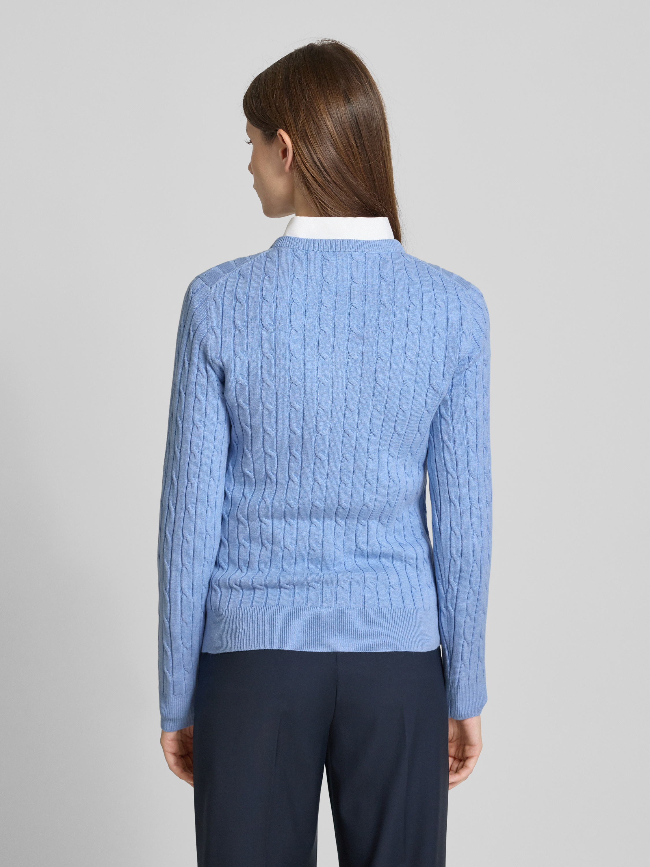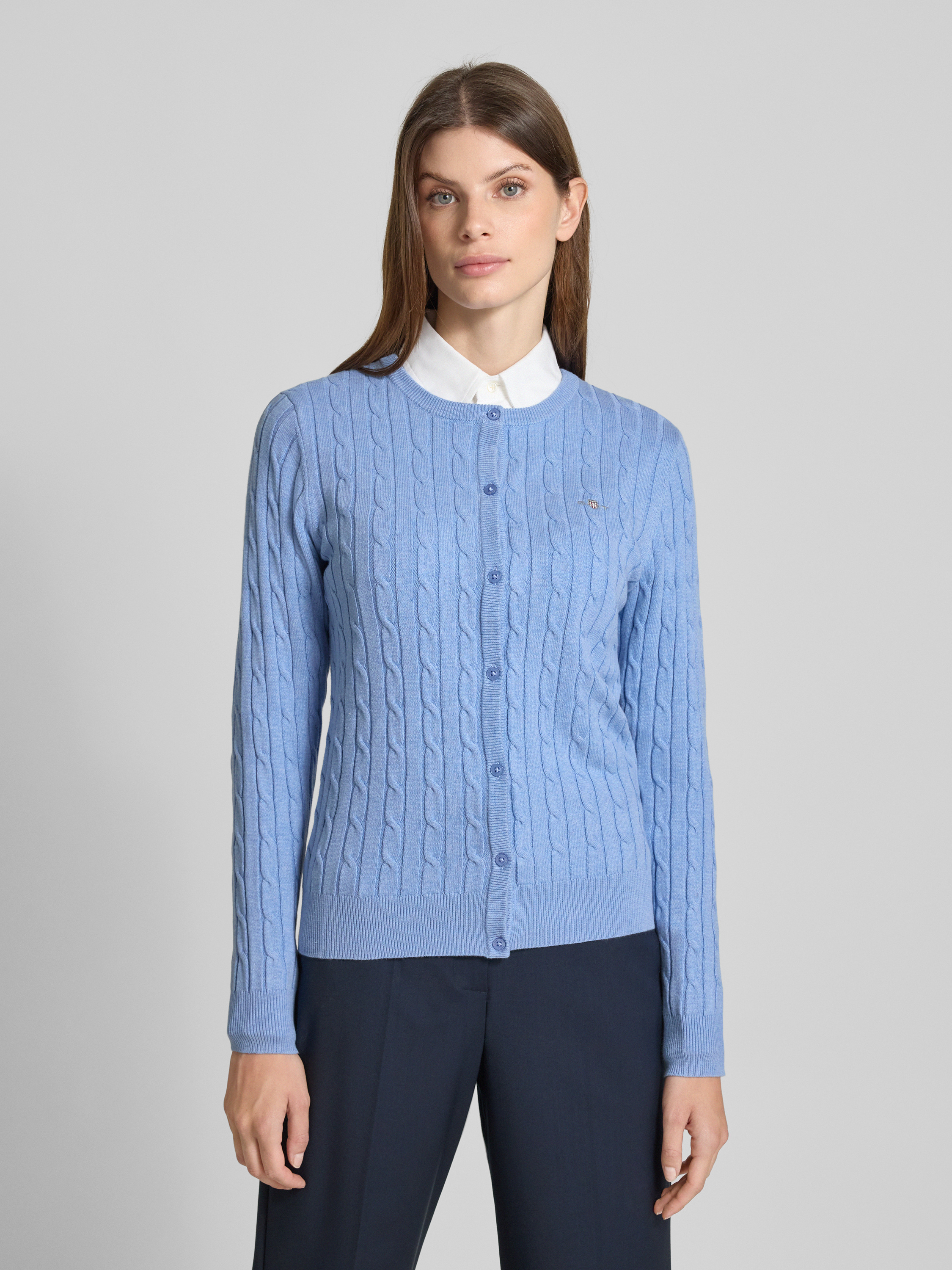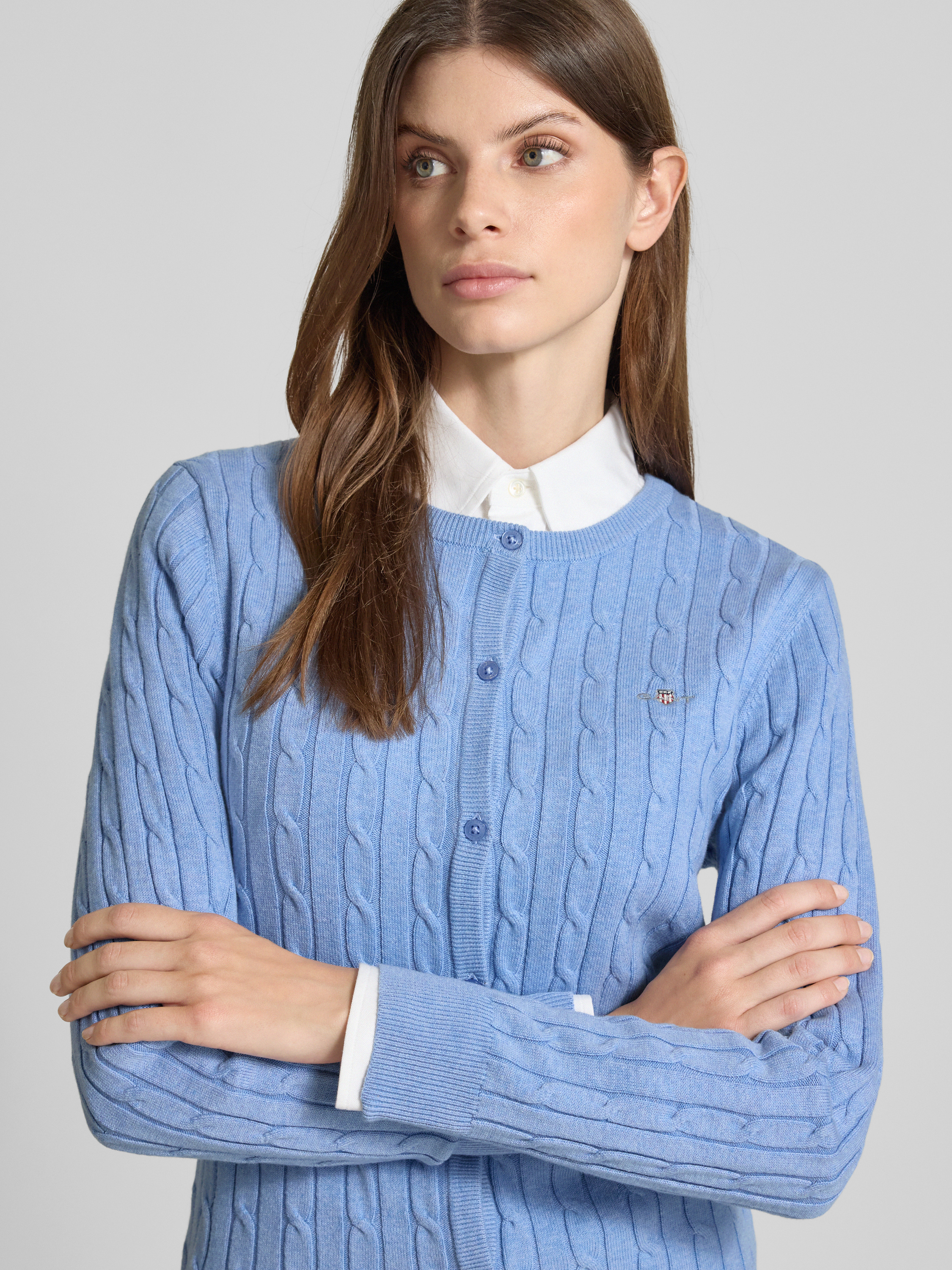 Kardigan ze ściegiem warkoczowym i wyhaftowanym logo - jasnoniebieski