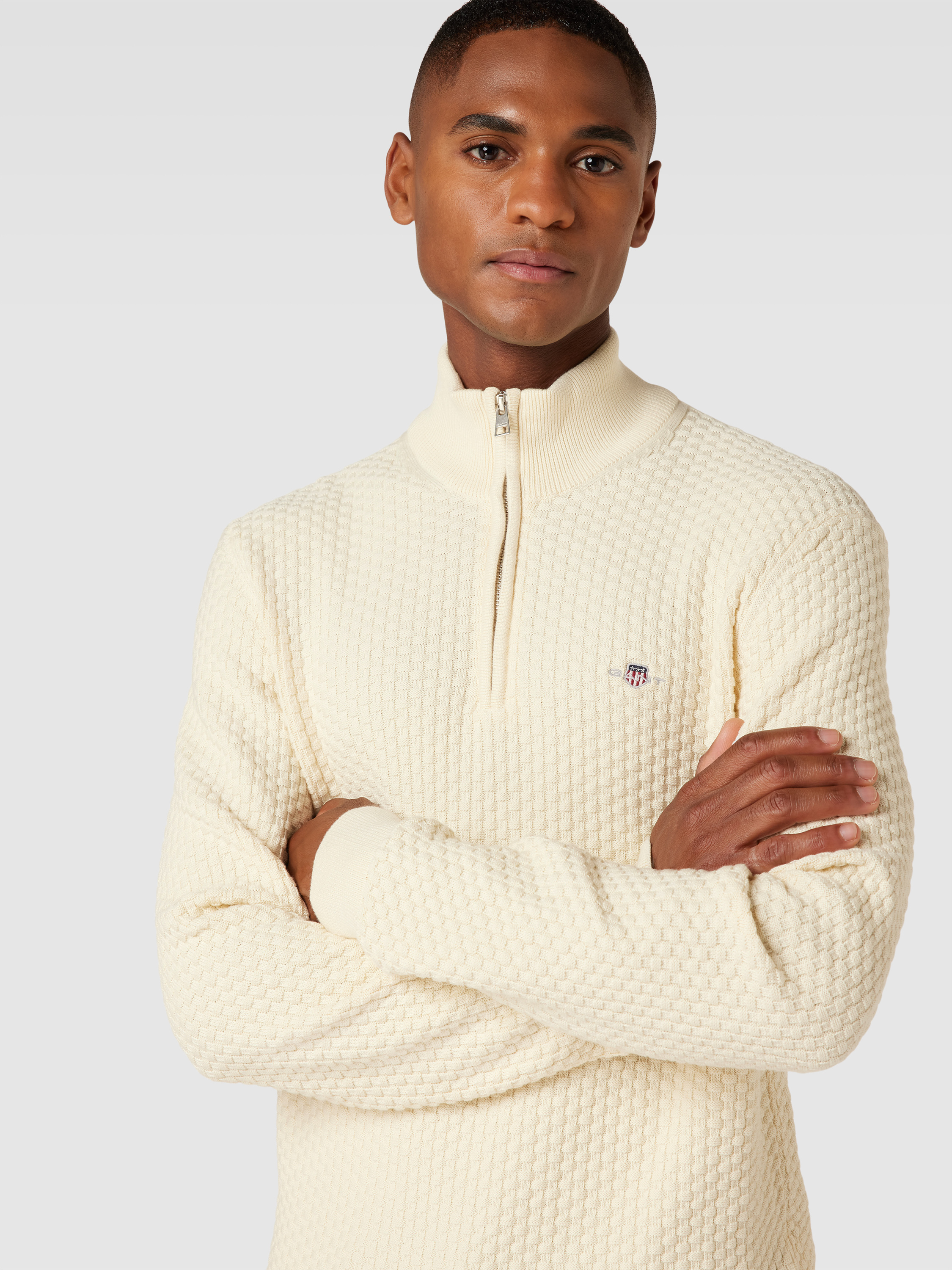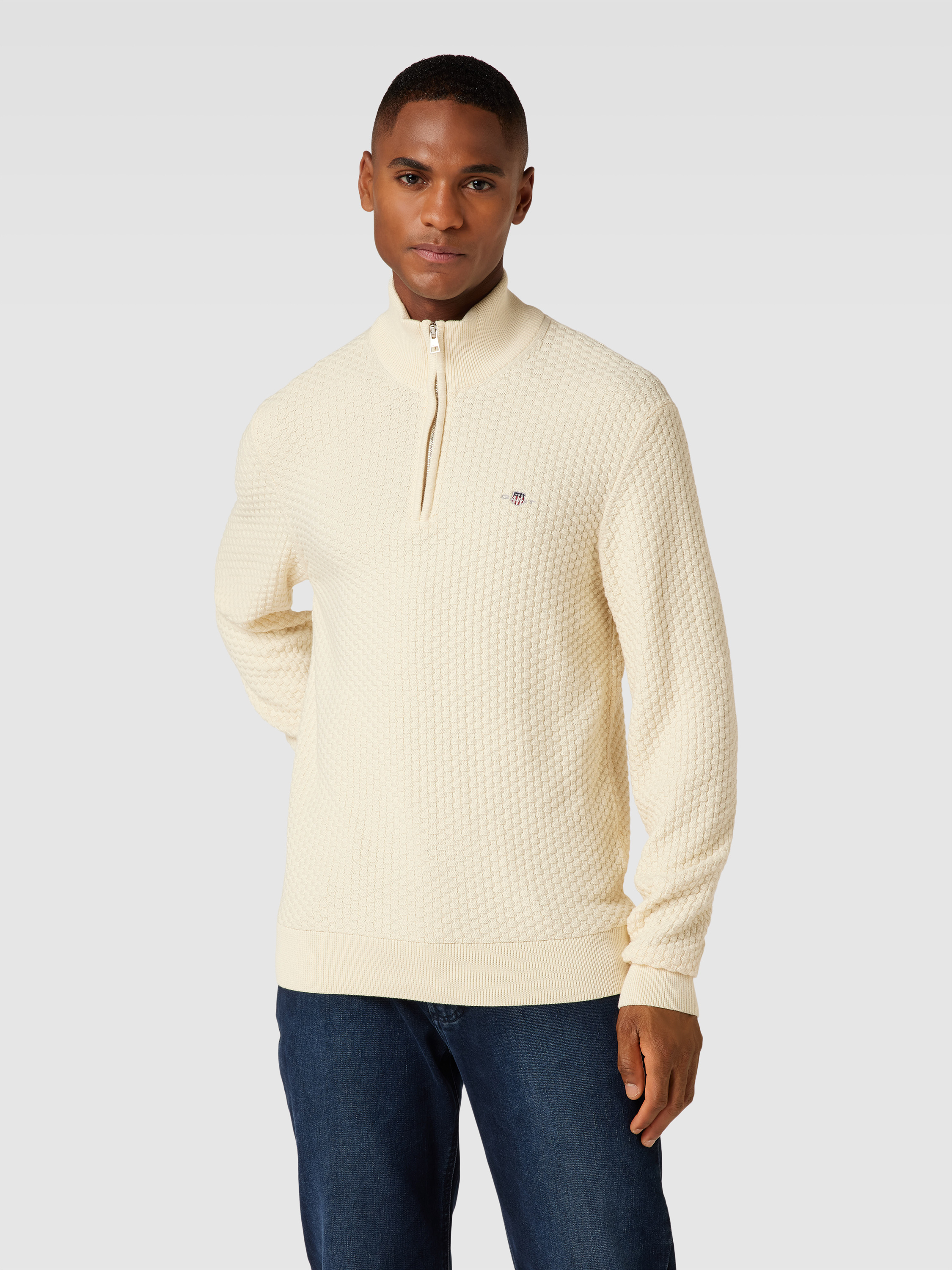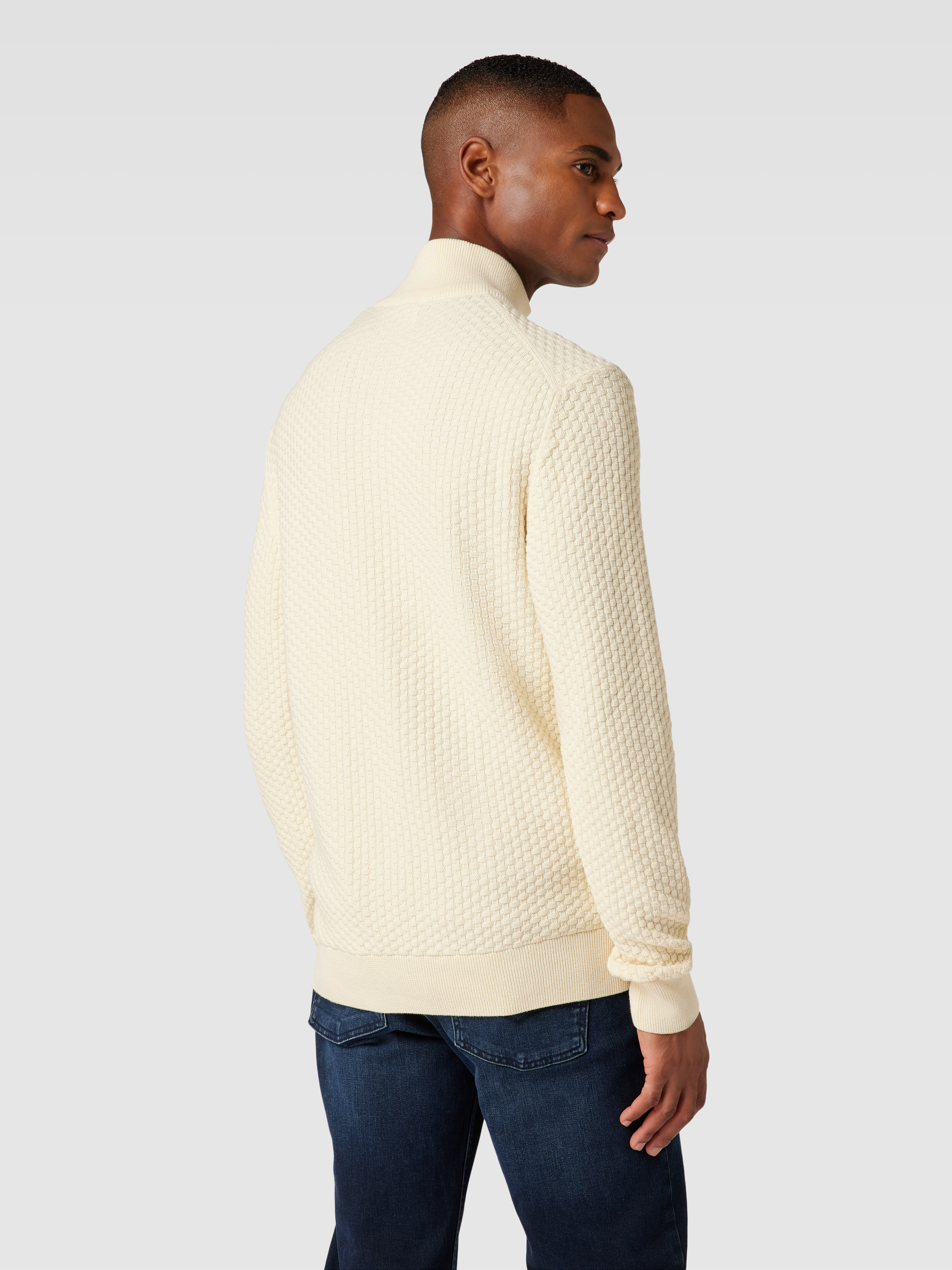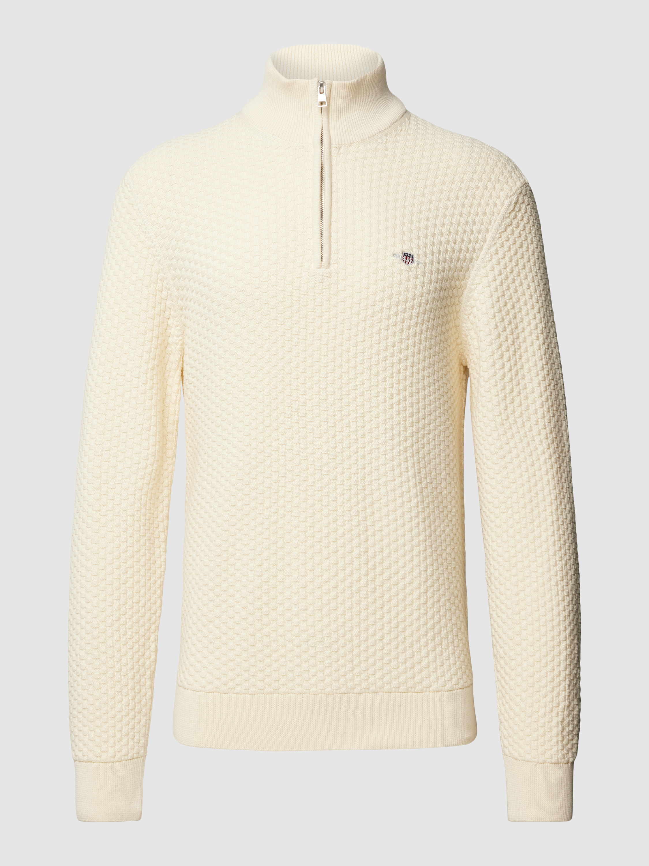 Sweter z dzianiny z krótkim zamkiem błyskawicznym - złamany biały