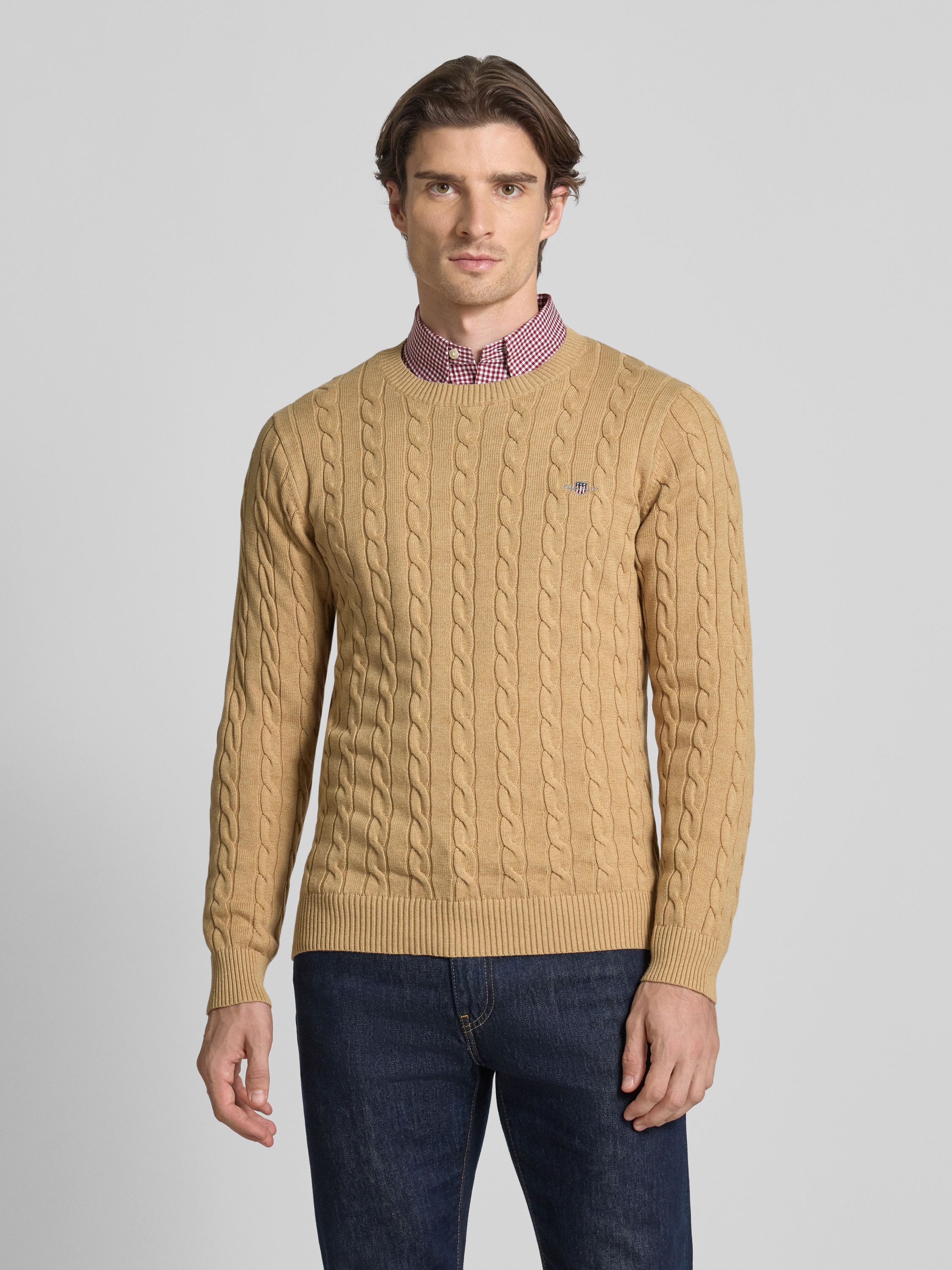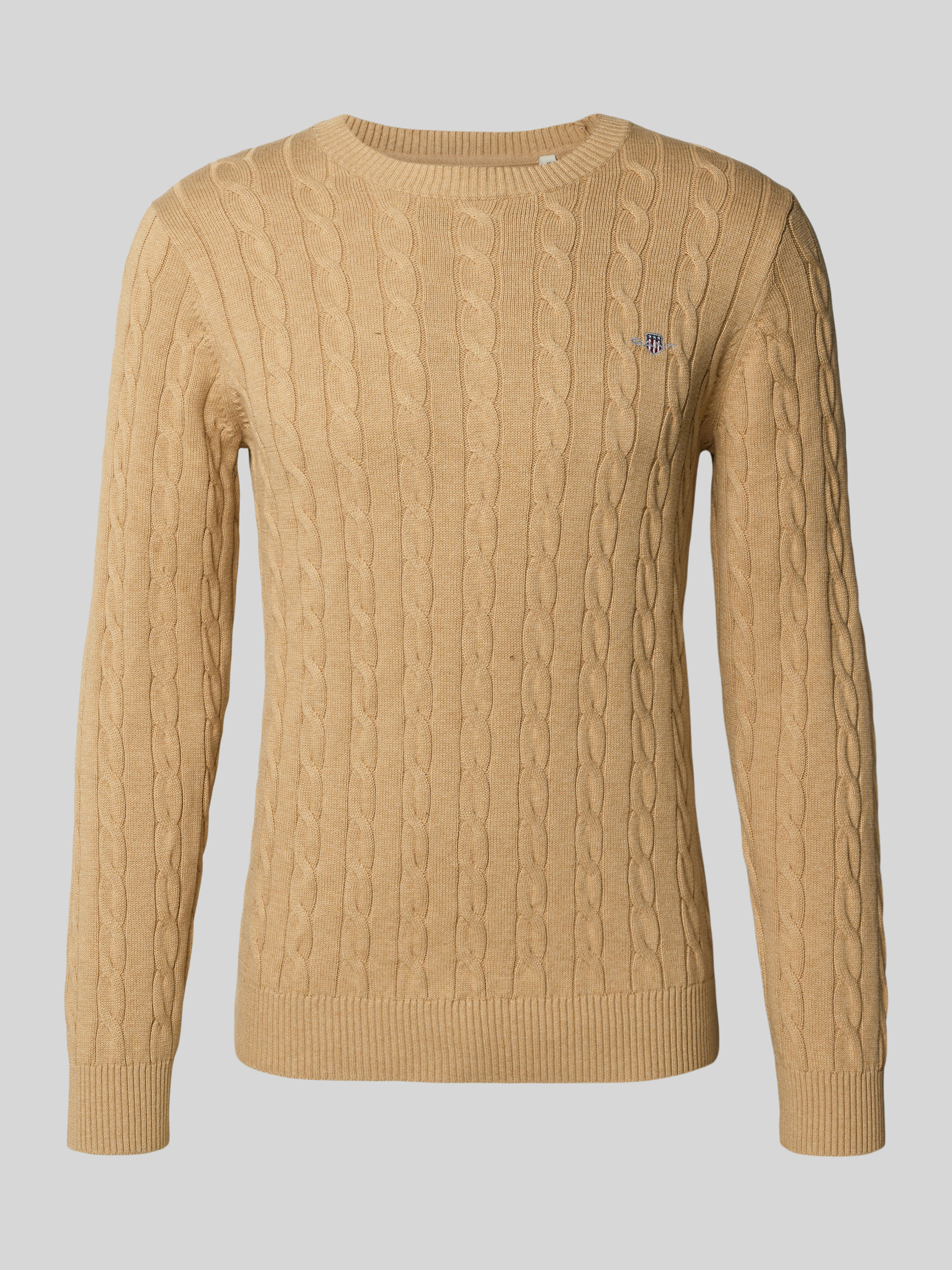 Sweter z dzianiny z prążkowanymi wykończeniami - beżowy melanż