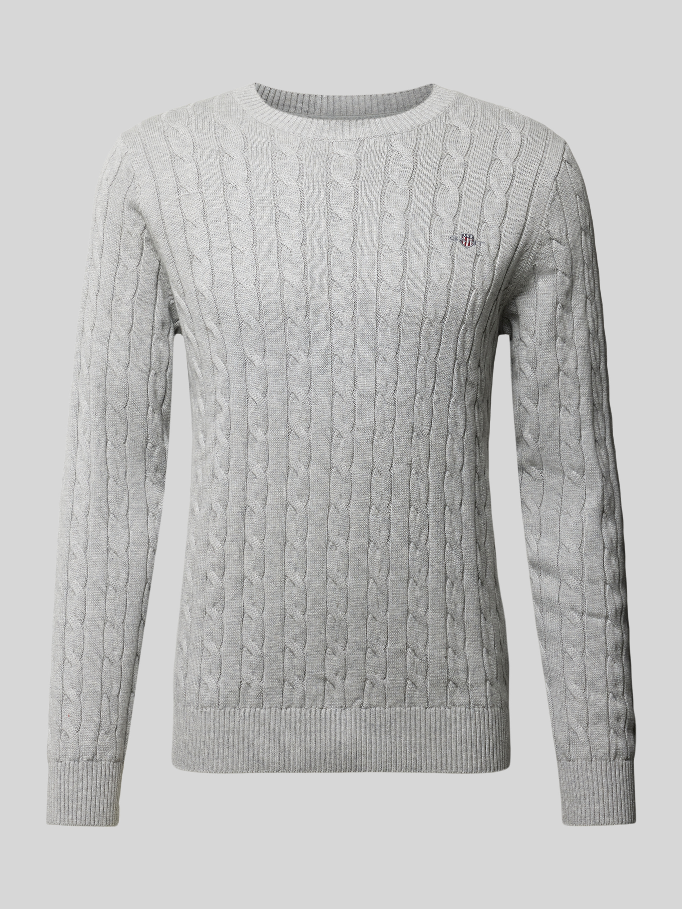 Sweter z dzianiny z wyhaftowanym logo - średnioszary melanż