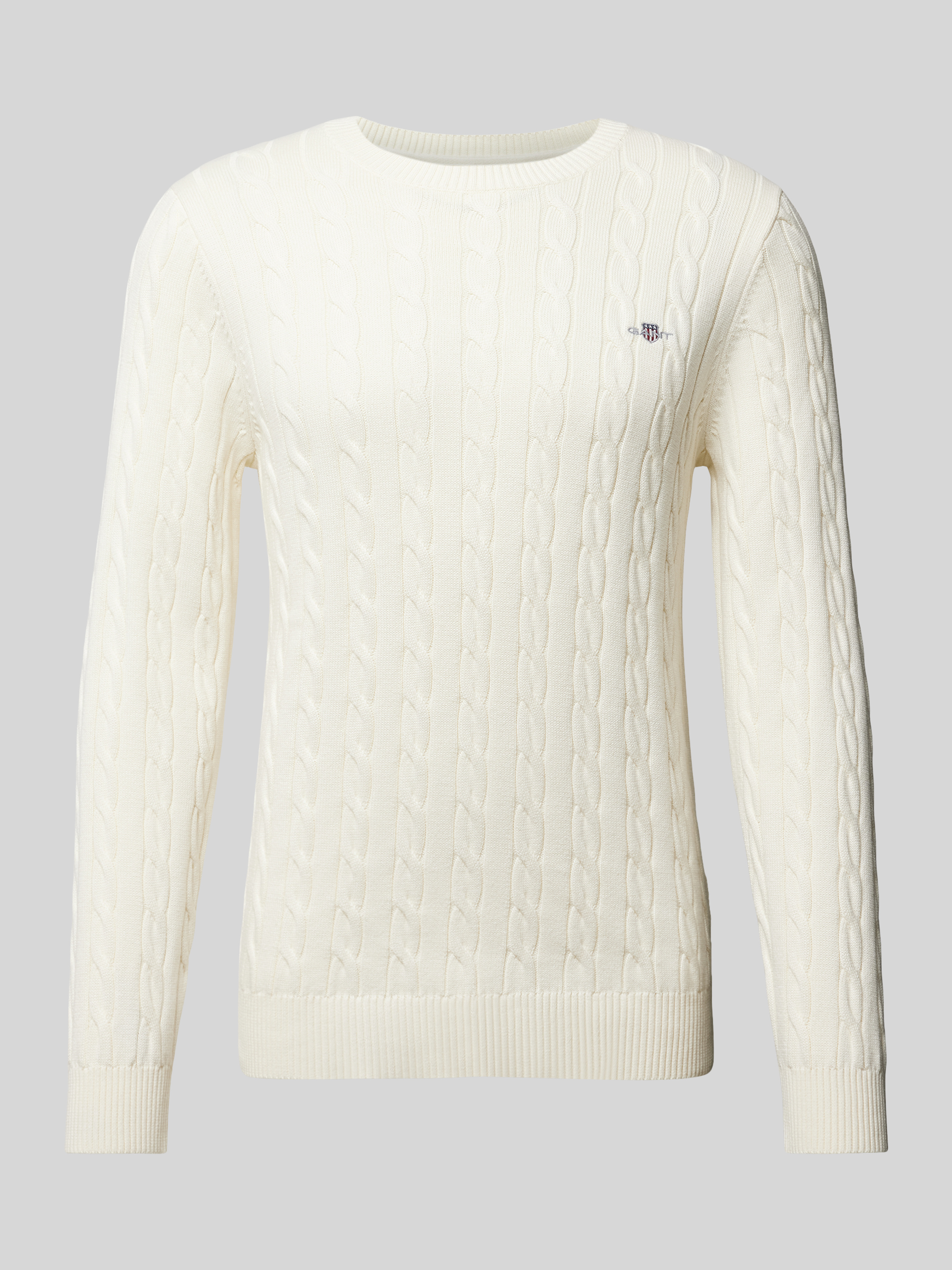Sweter z dzianiny z wyhaftowanym logo - złamany biały