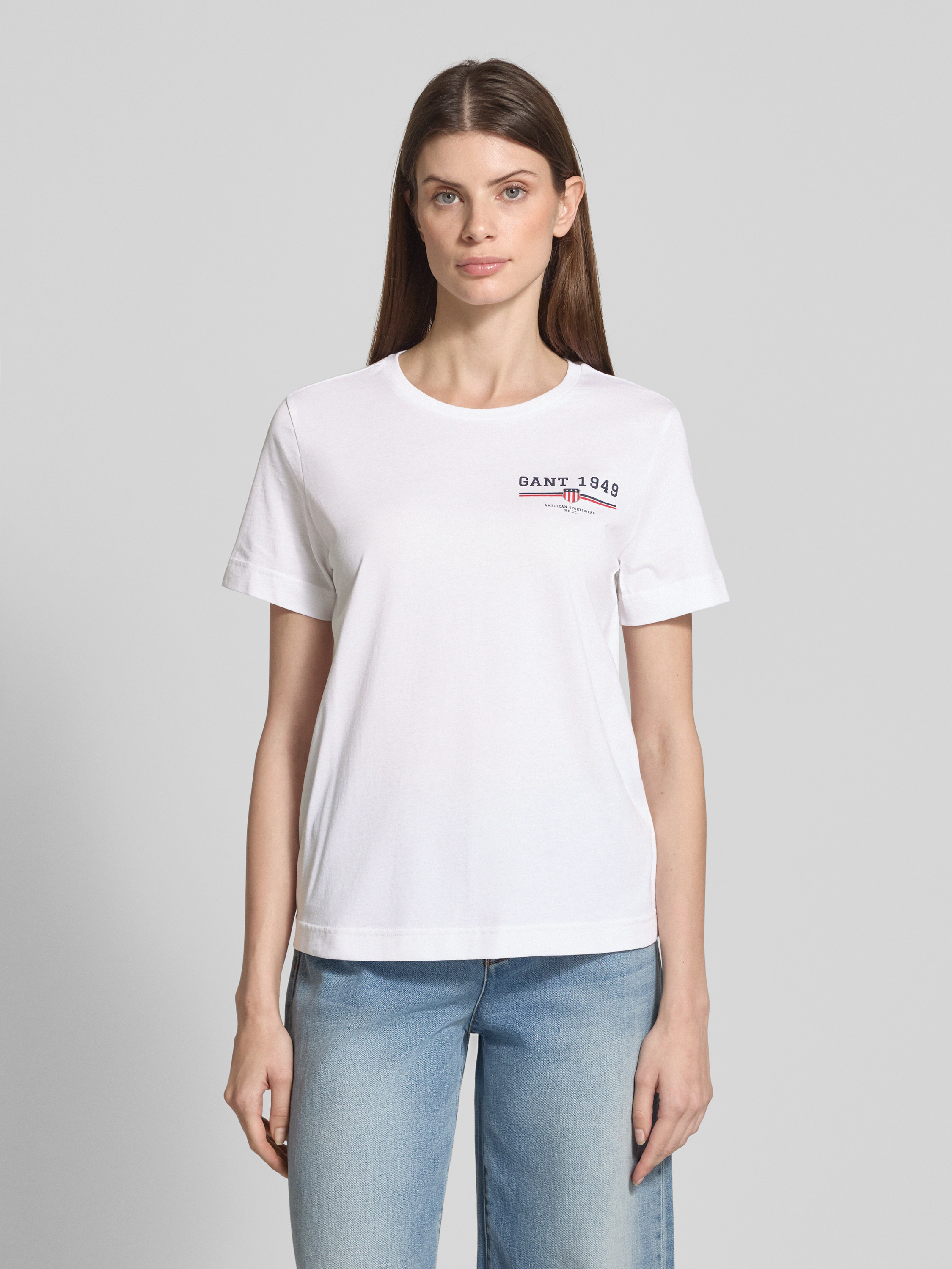 T-shirt o kroju regular fit z czystej bawełny z nadrukiem z logo - biały