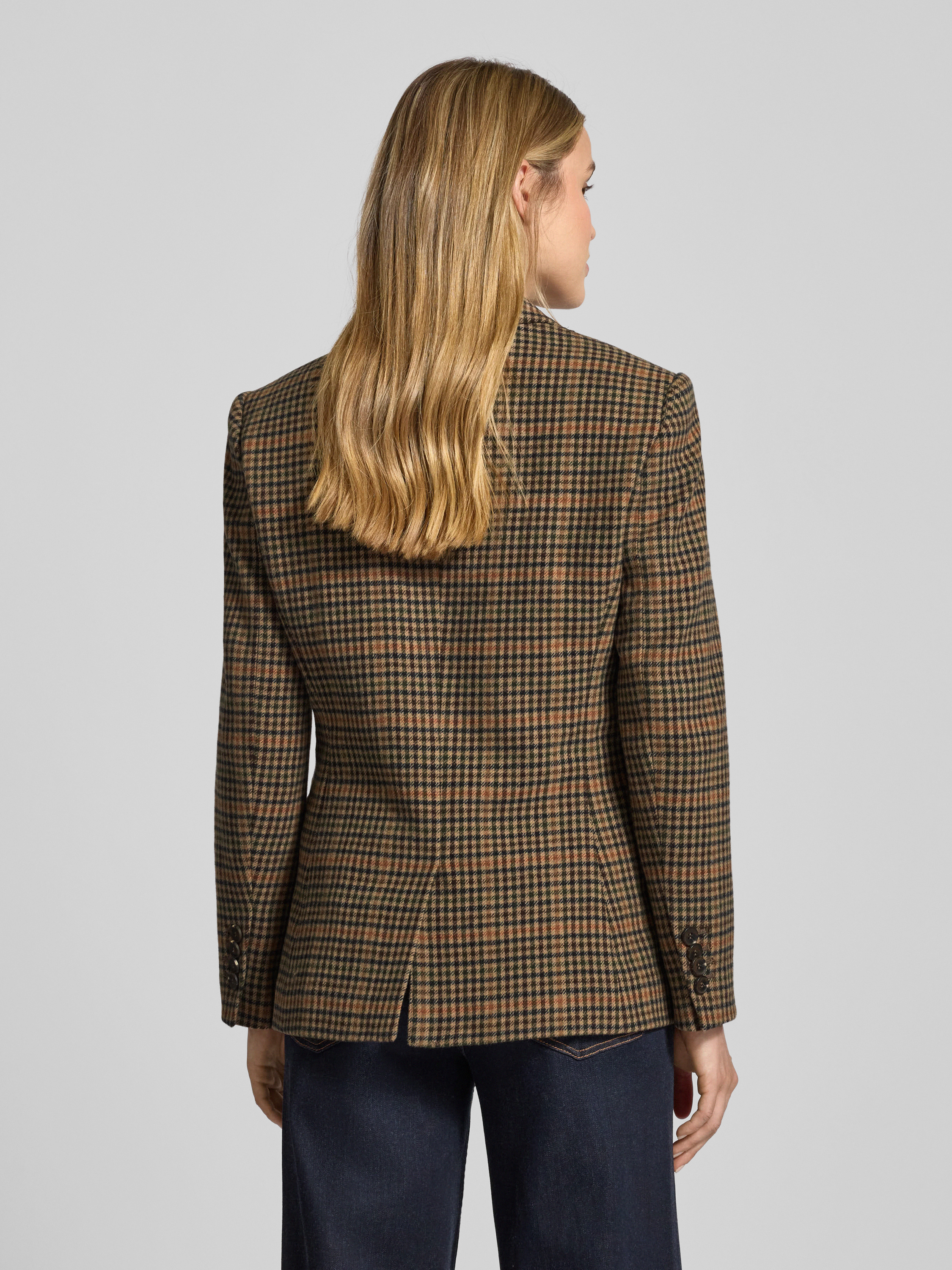 GantŻakiet wełniany z kołnierzem z połami model ‘HOUNDSTOOTH’ - camel