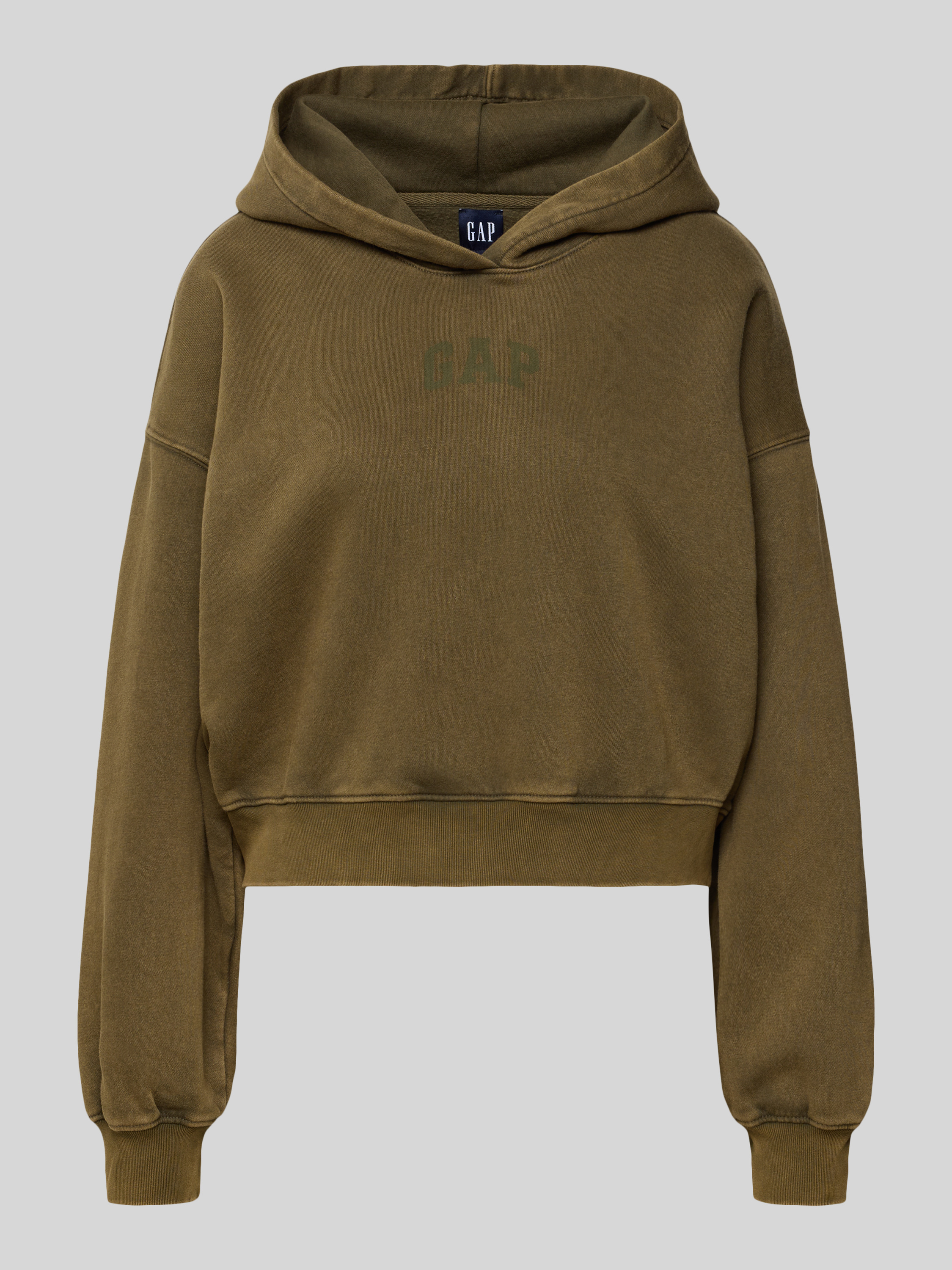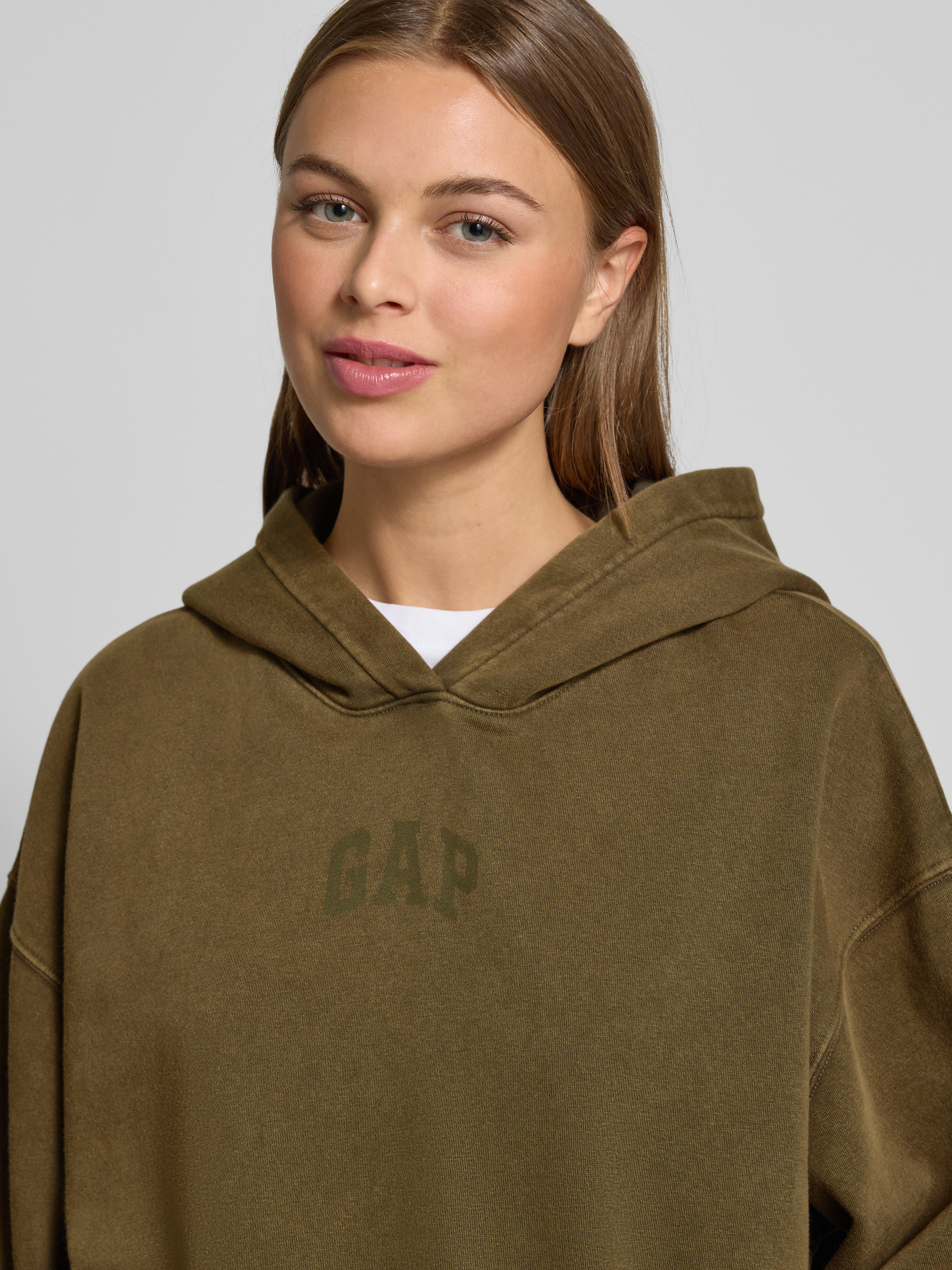 Bluza z kapturem o krótkim kroju z nadrukiem z logo - zielony