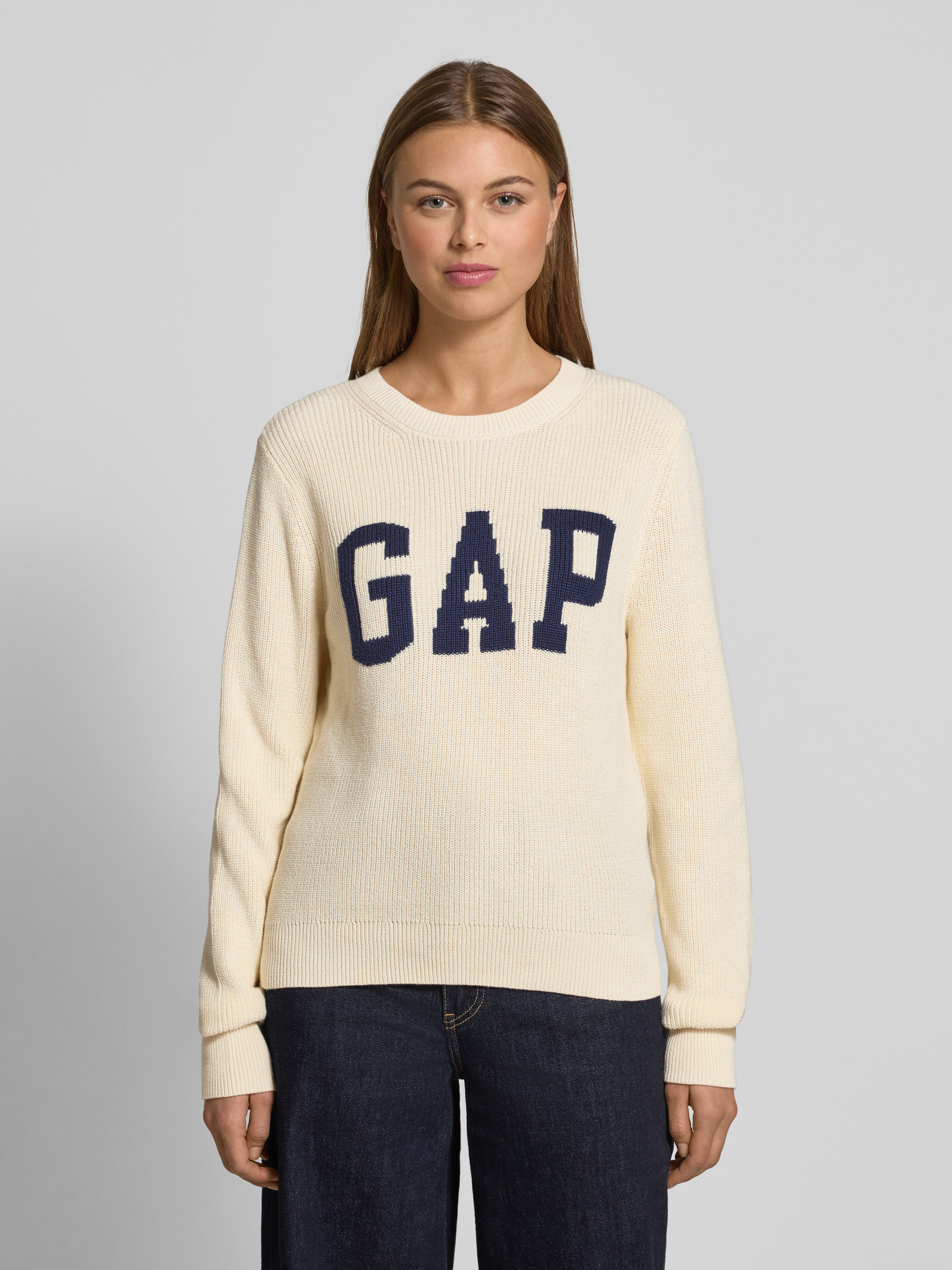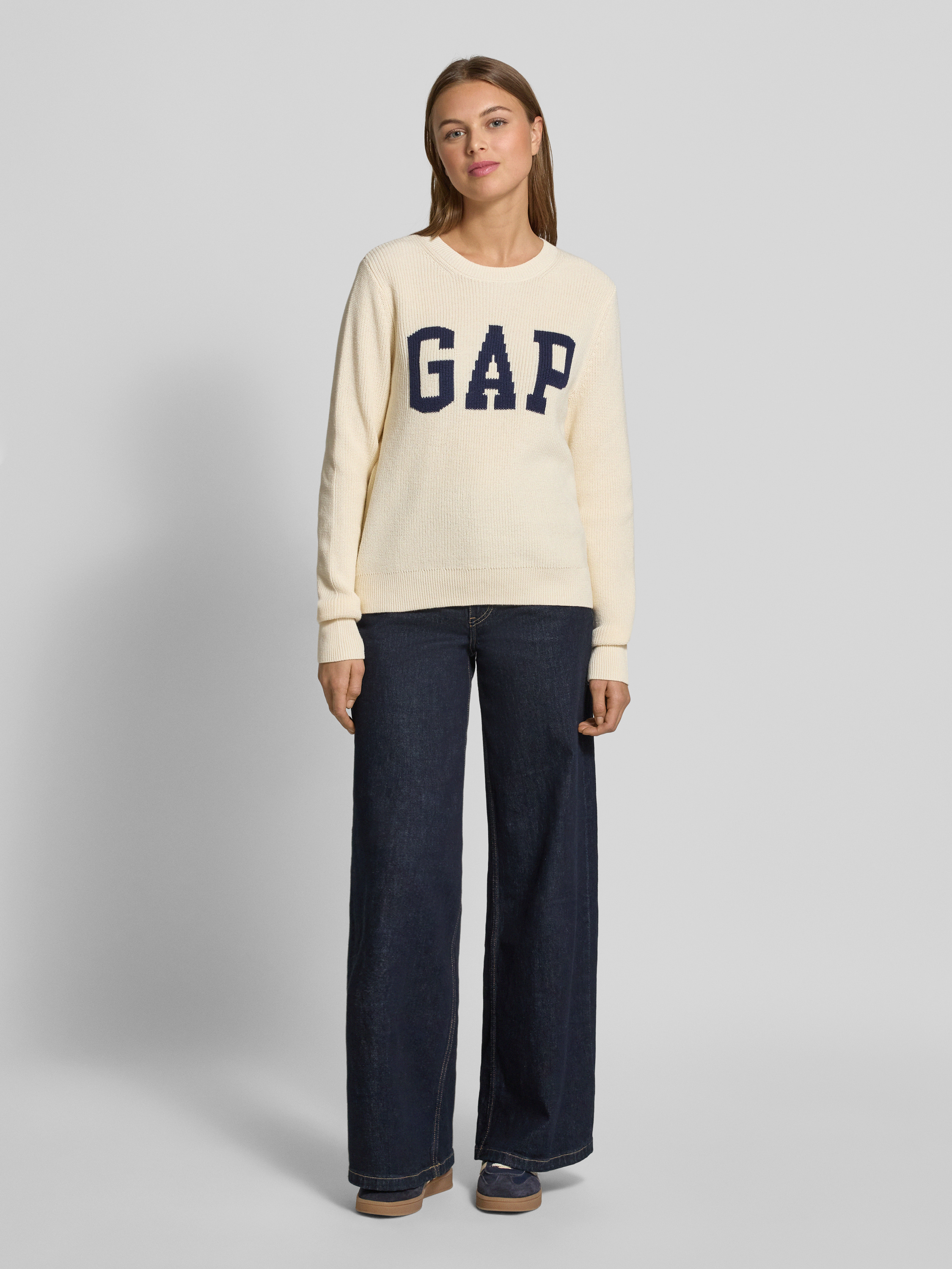 Sweter z dzianiny z logo i okrągłym dekoltem - biały