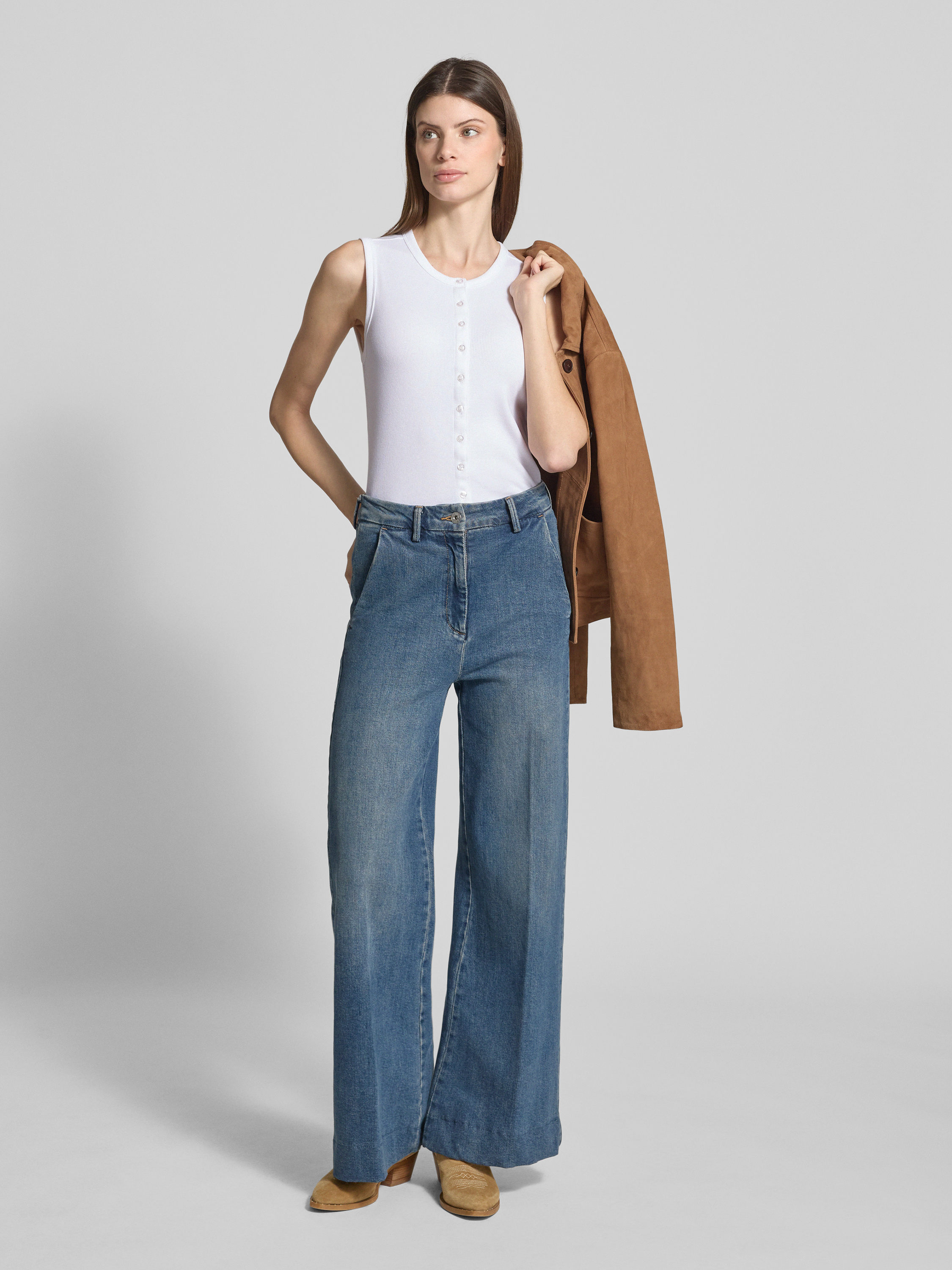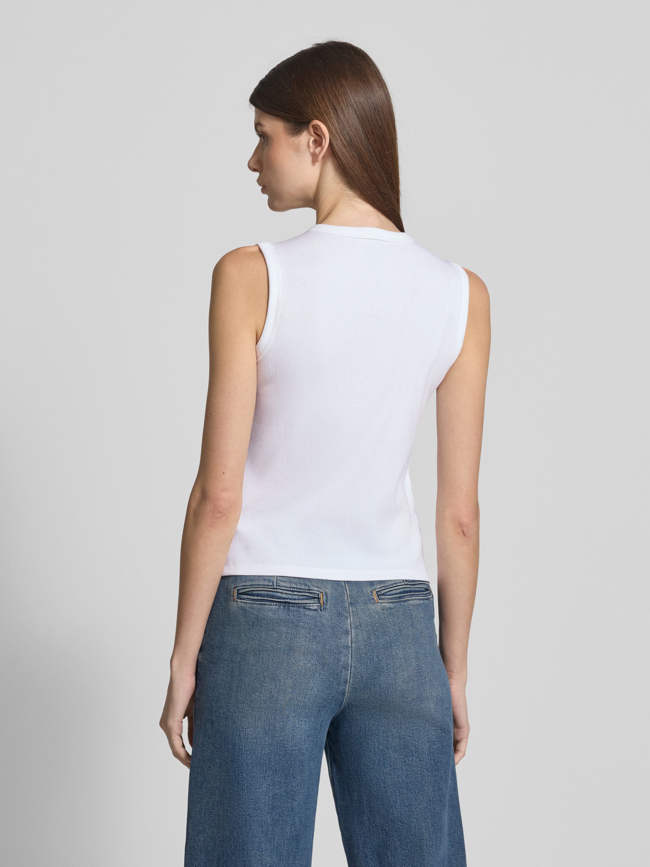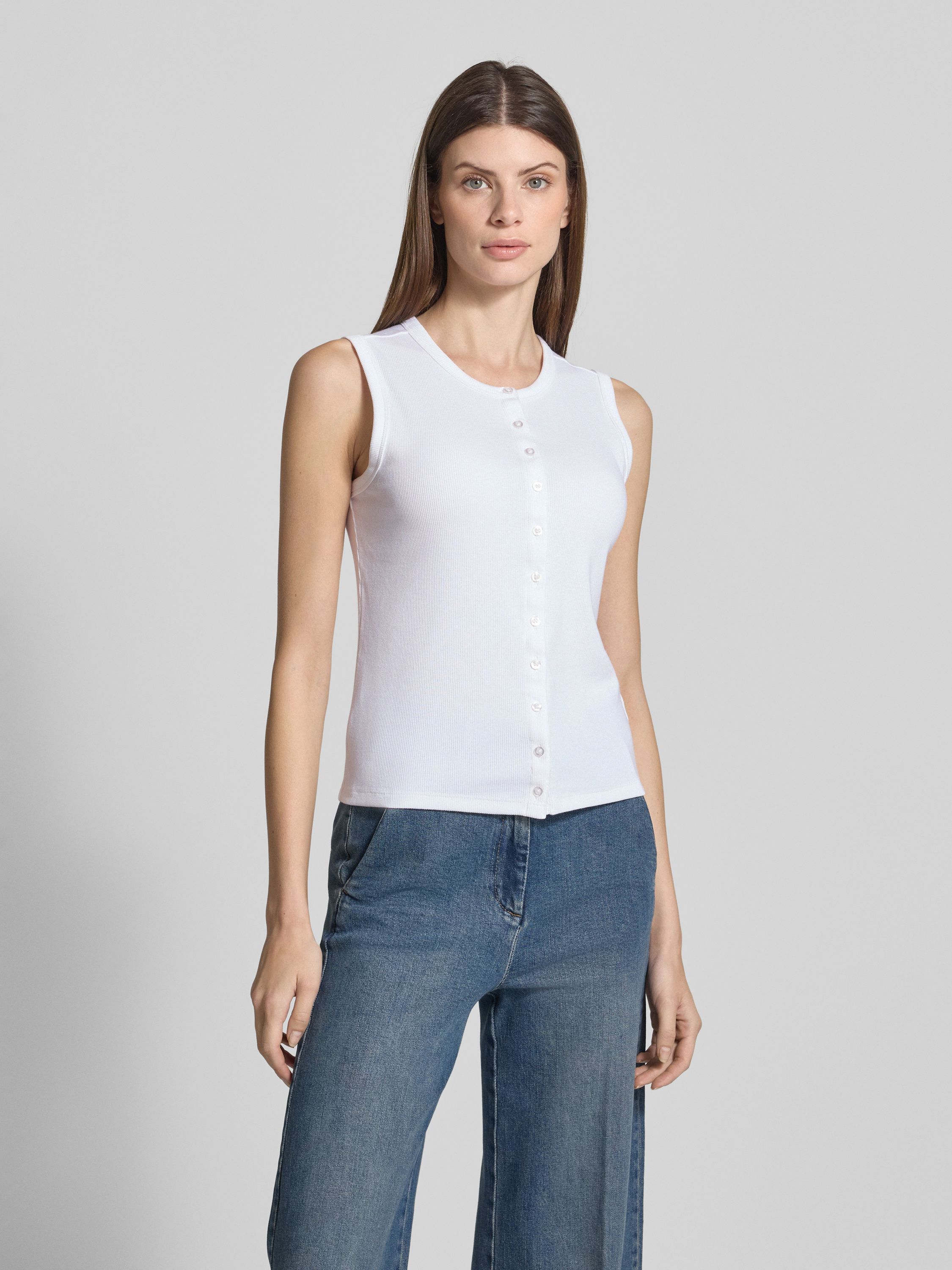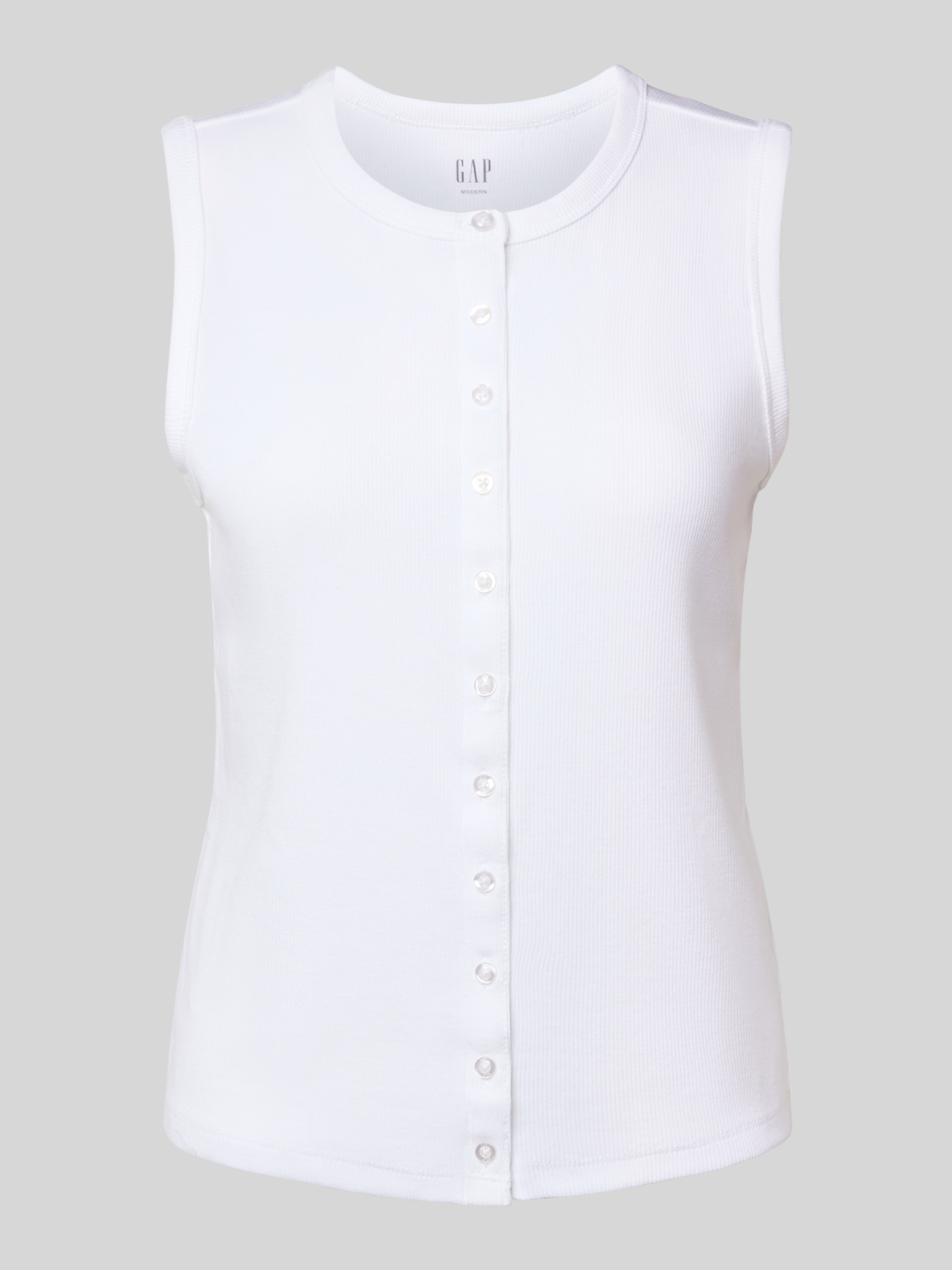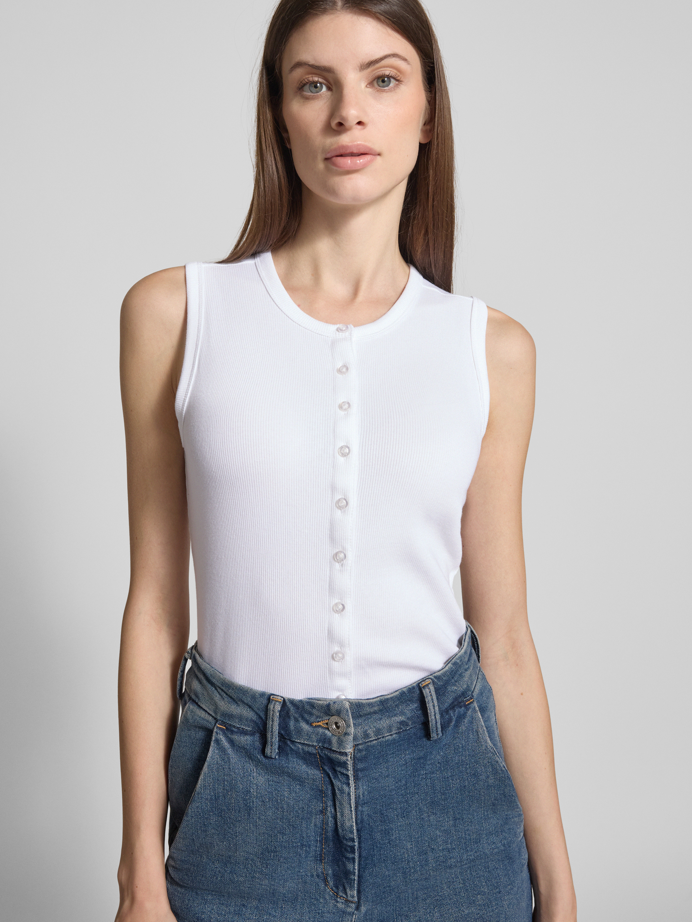 Top na ramiączkach z prążkowaniem i listwą guzikową - biały