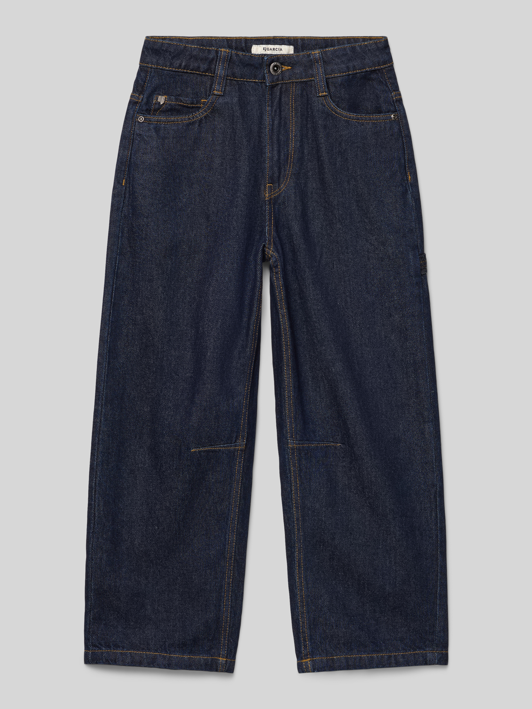 Jeansy o luźnym kroju z naszywką z logo - ciemnoniebieski