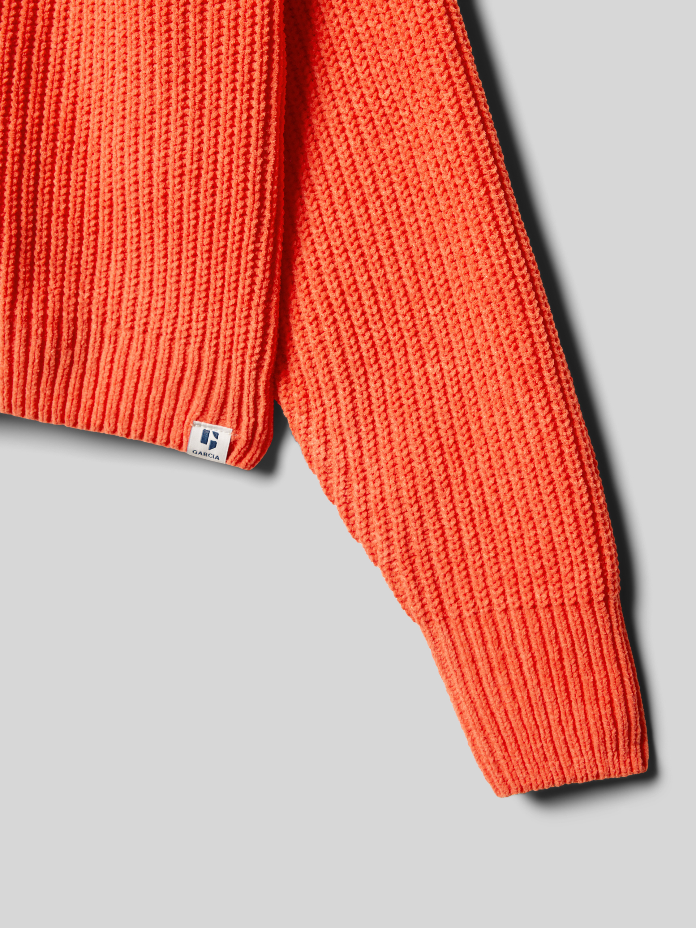 Sweter z dzianiny z okrągłym dekoltem i detalem z logo - jasnoczerwony