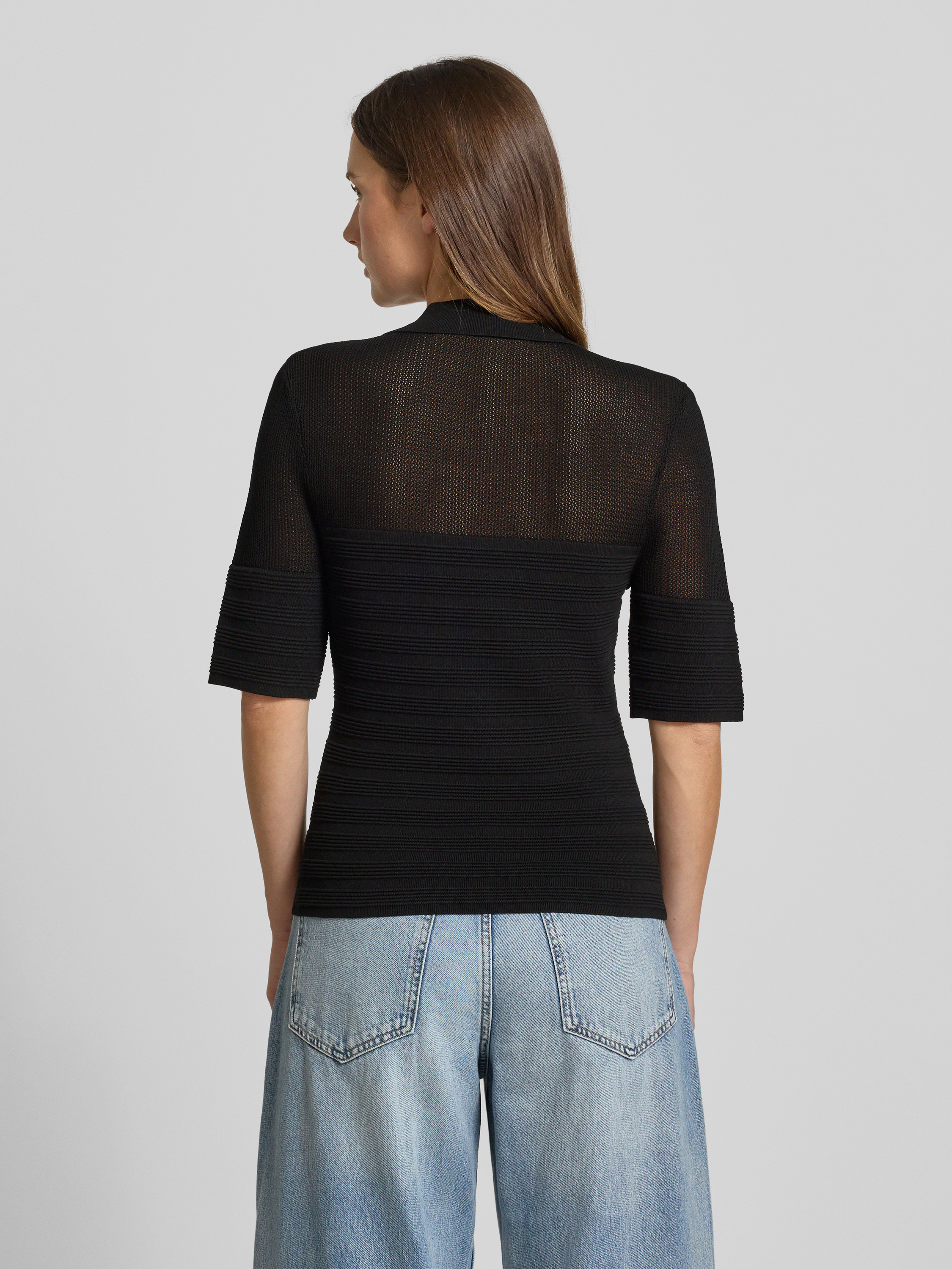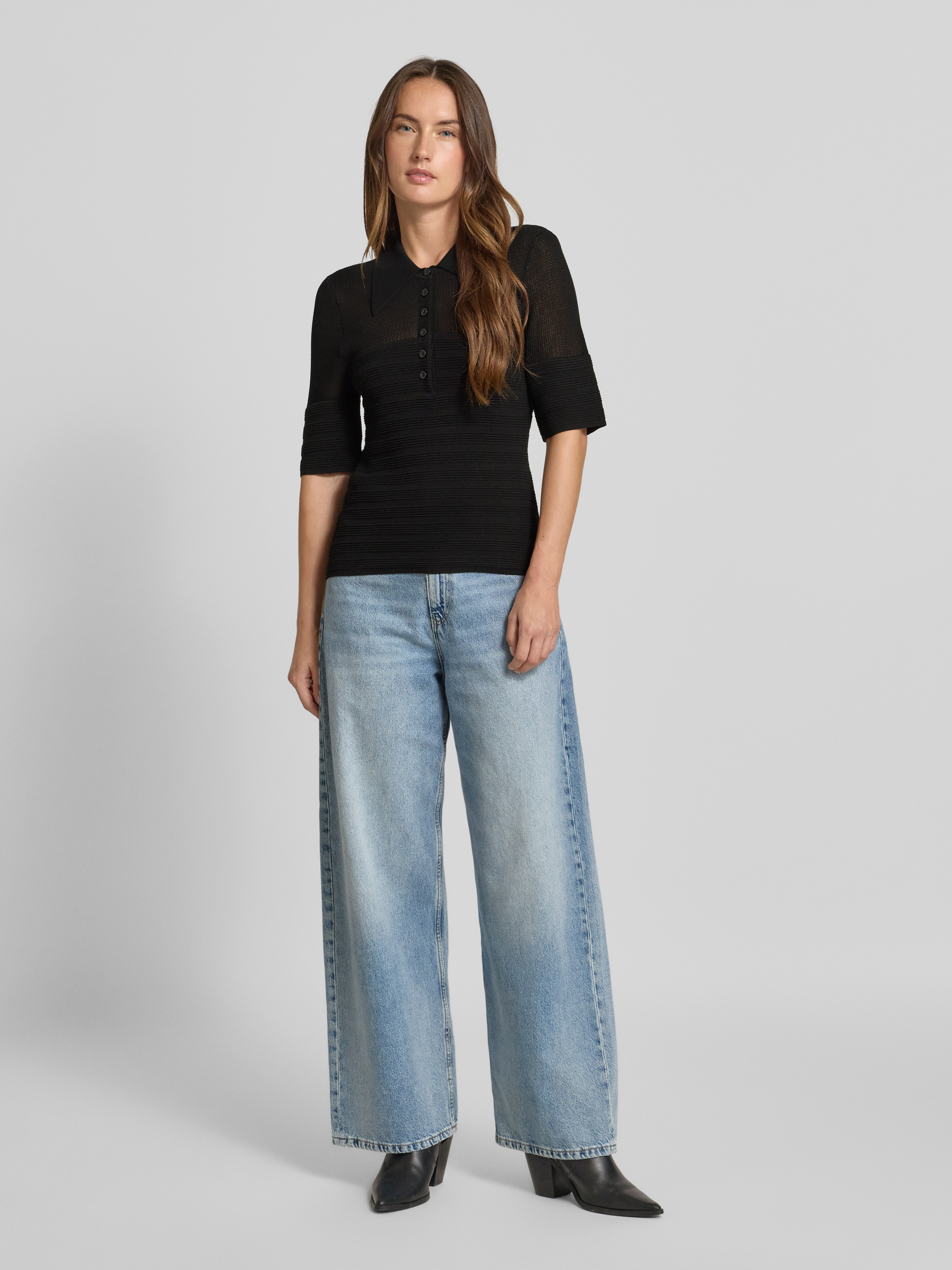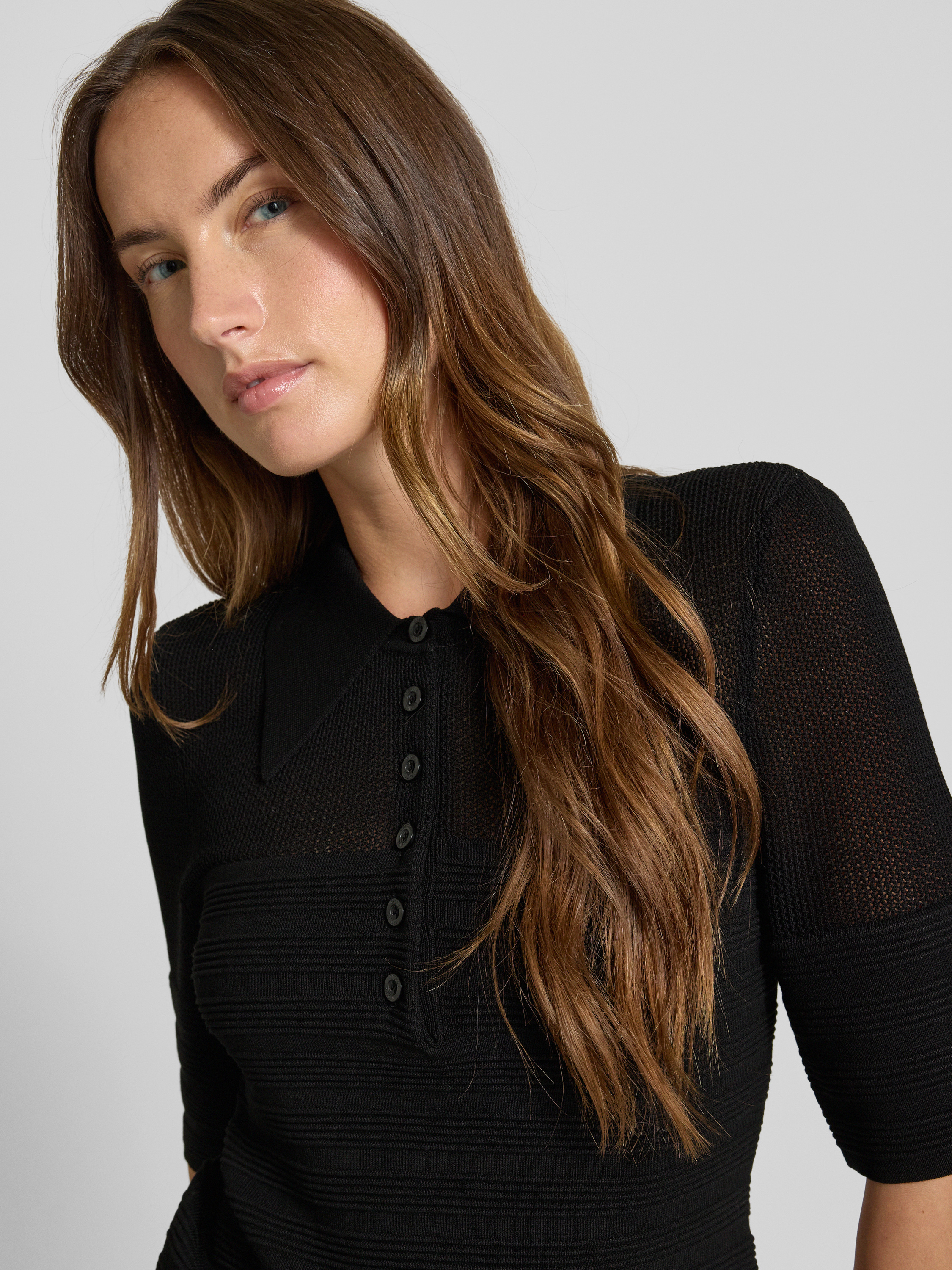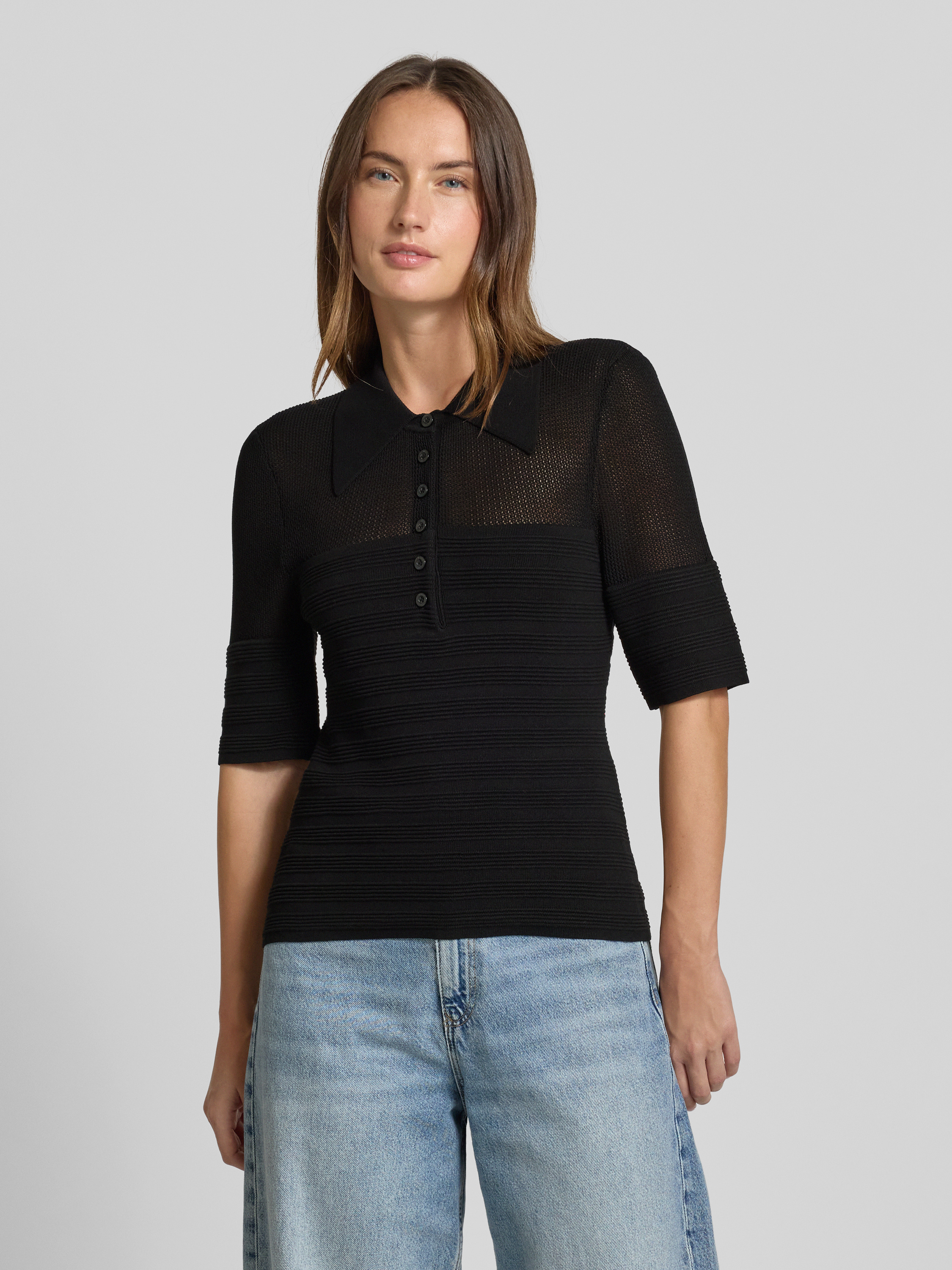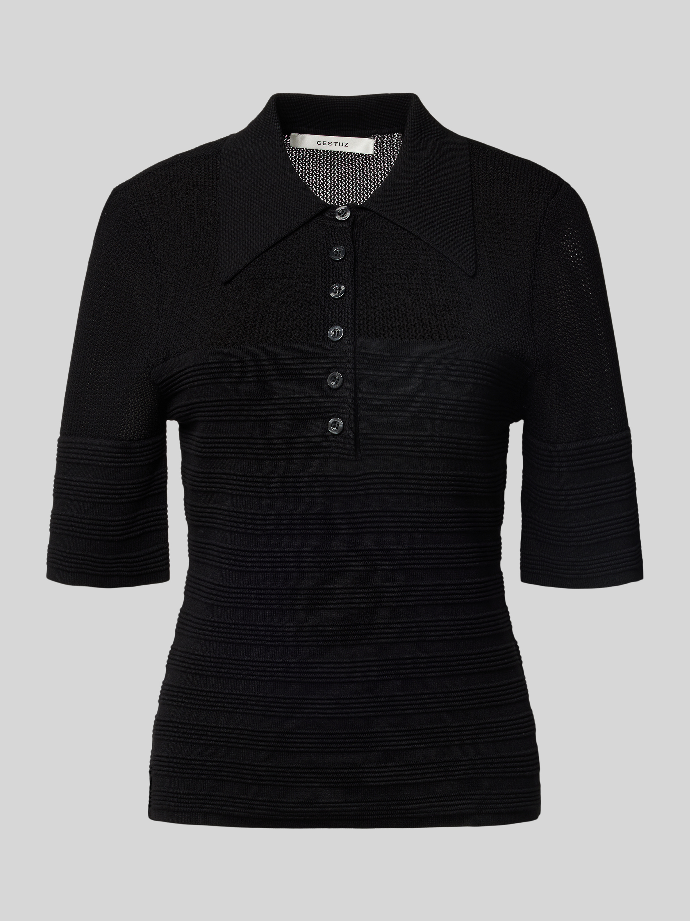 • Gestuz Koszulka polo z mieszanki wiskozy z krótką listwą guzikową Czarny
