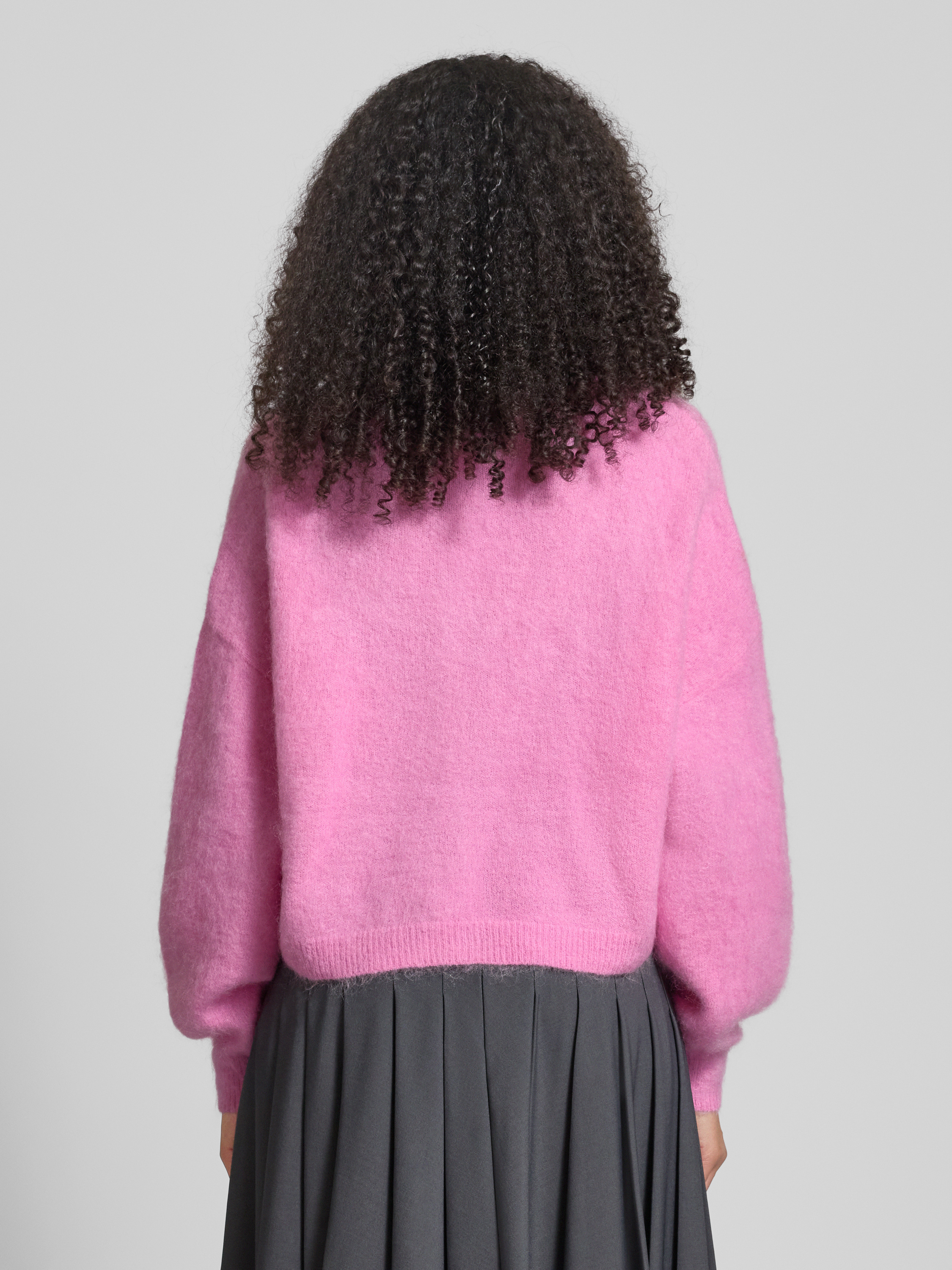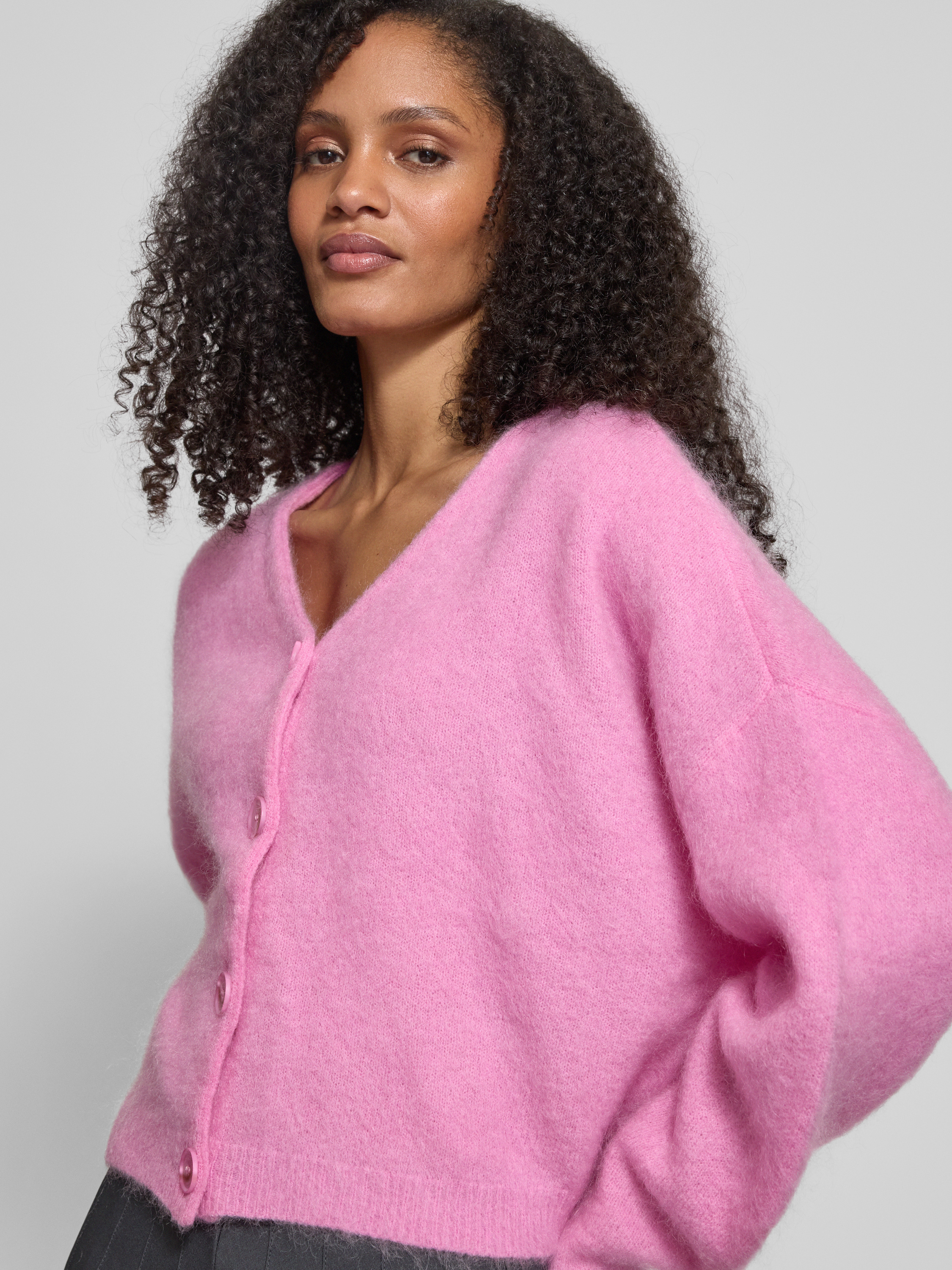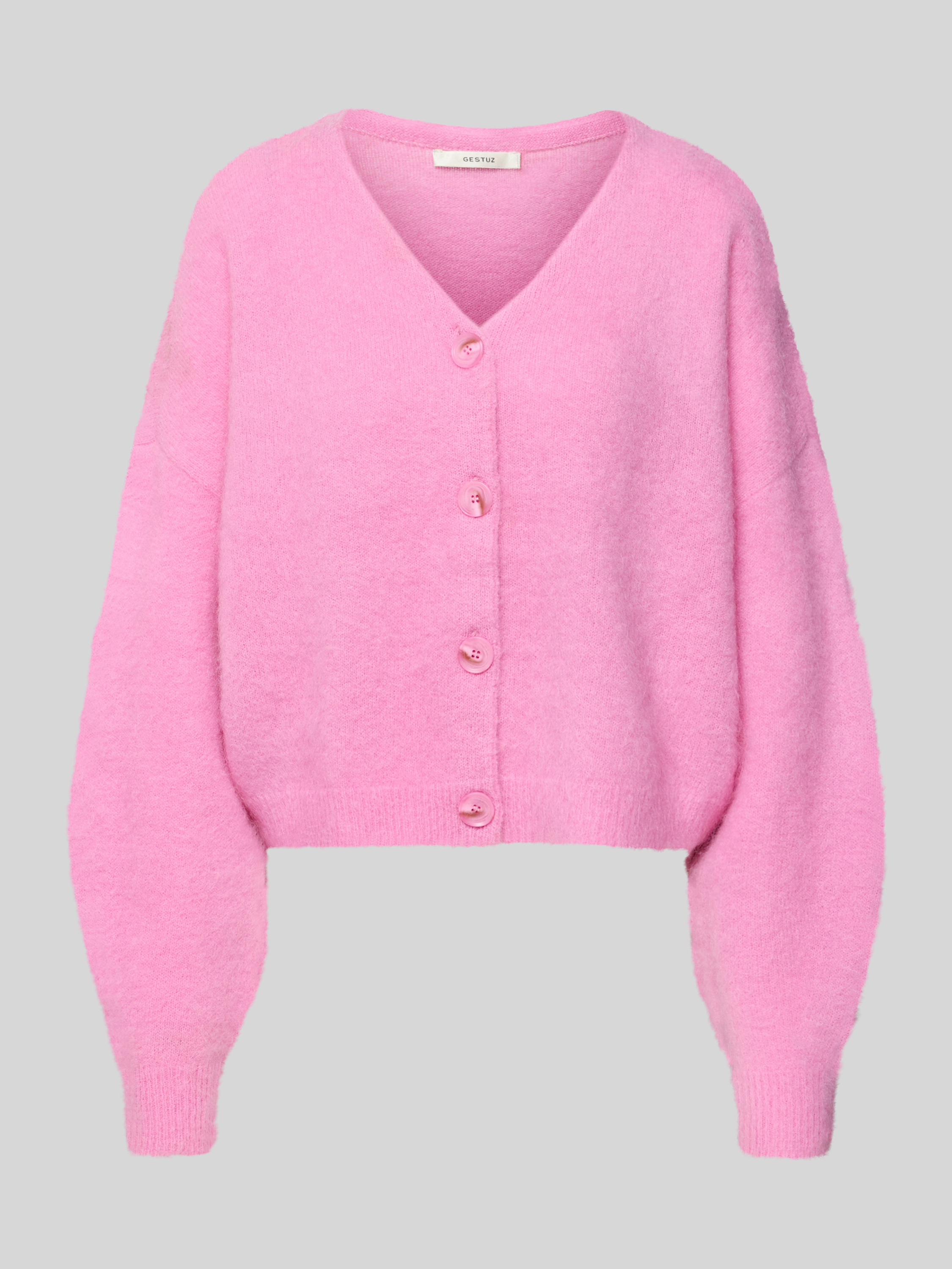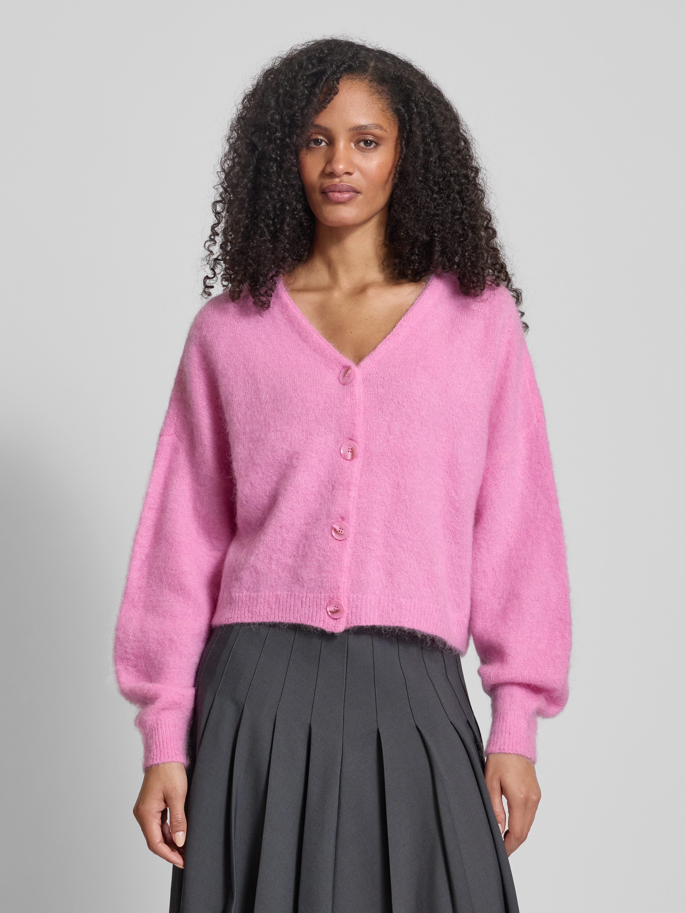 Kurtka z dzianiny z dekoltem w serek model ‘debbie’ - mocnoróżowy