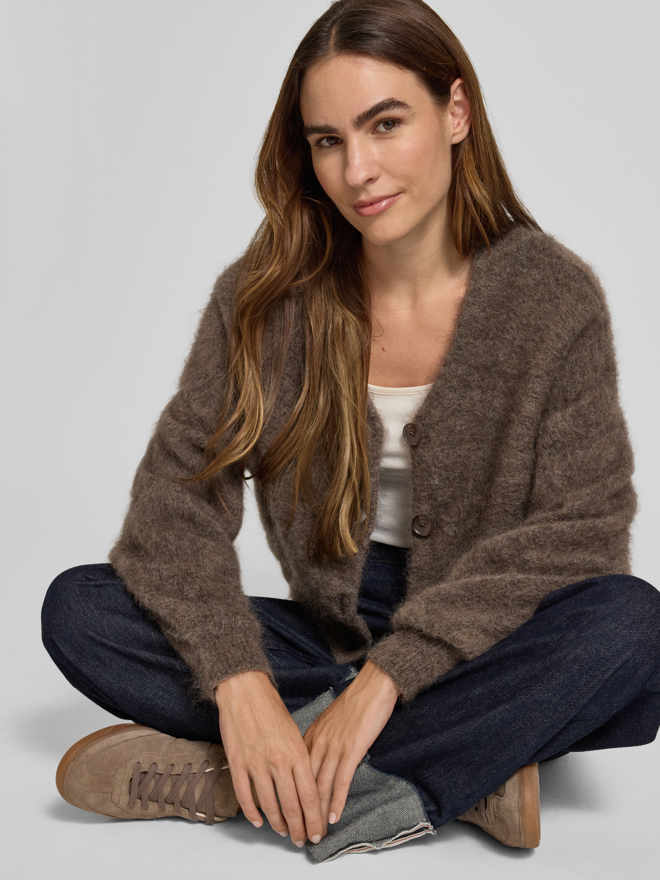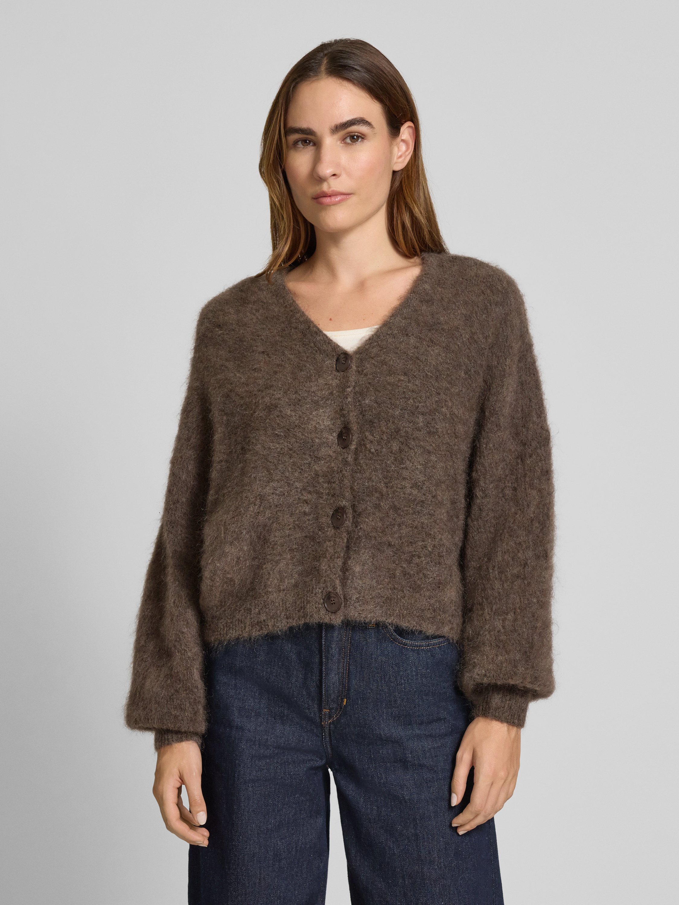 Kurtka z dzianiny z listwą guzikową model ‘debbie’ - średniobrązowy