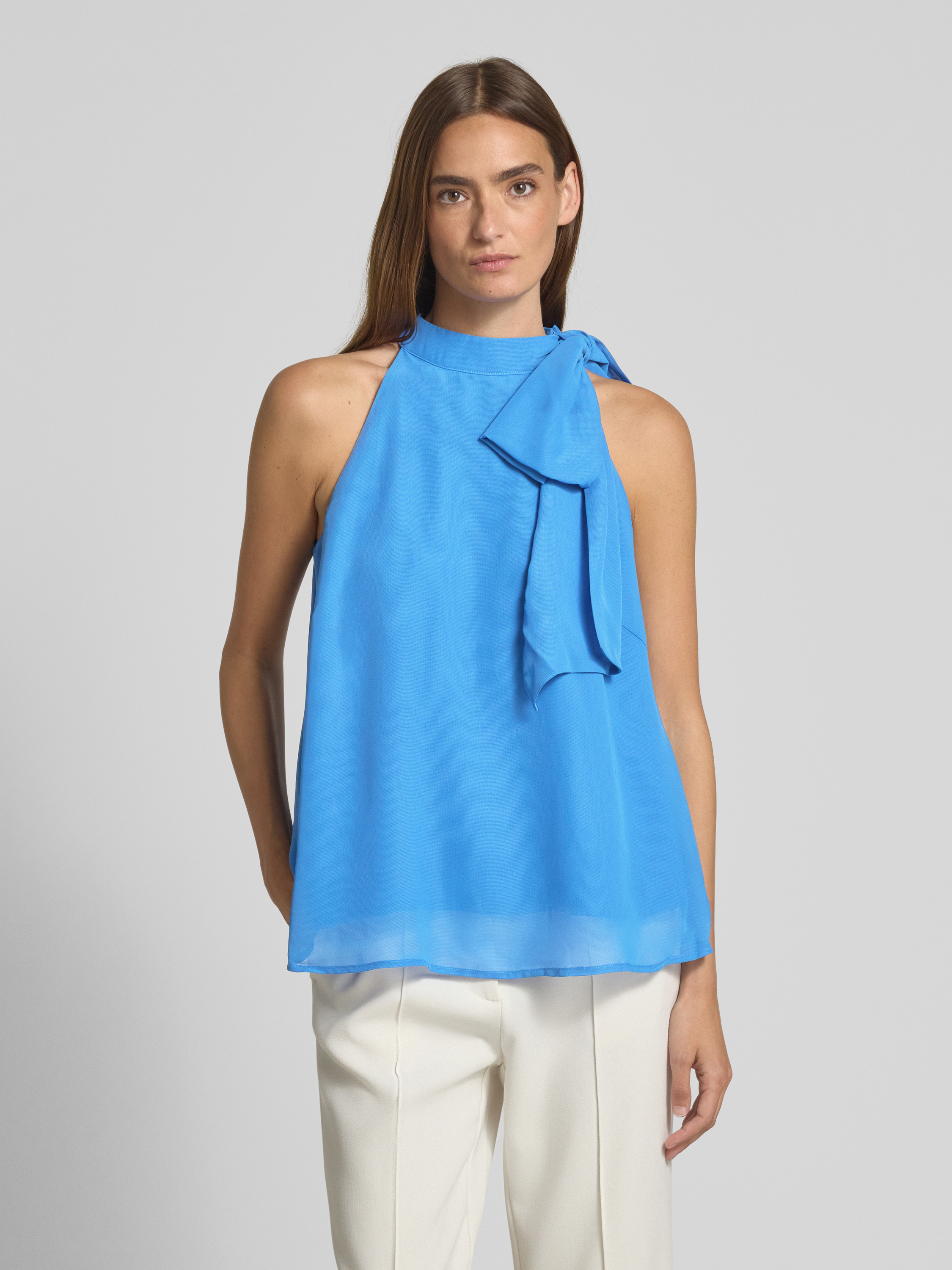Top bluzkowy o kroju regular fit z kokardą model ‘sanka’ - królewski niebieski